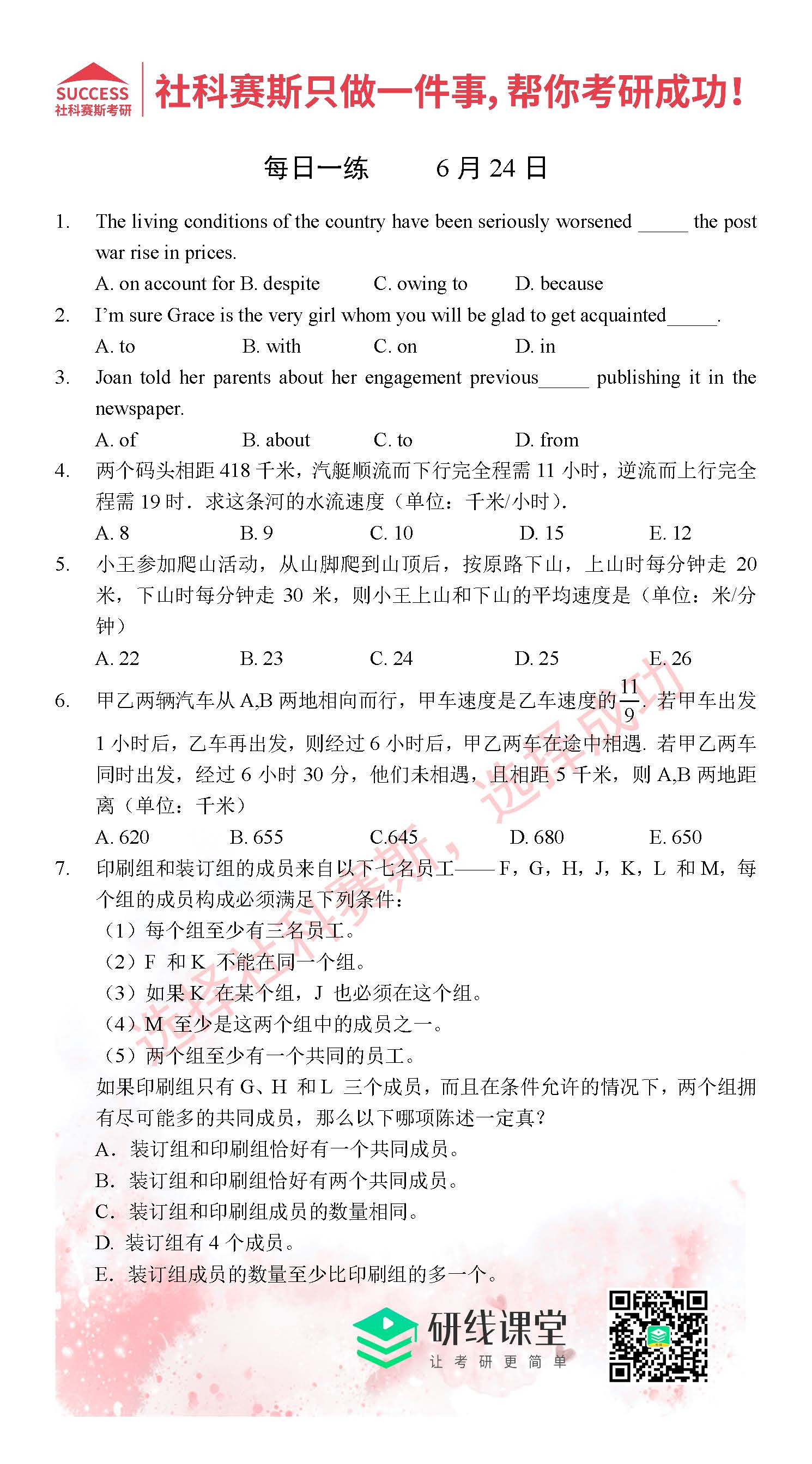 以上就是MBA備考網(wǎng)小編為大家提供的今日的每日一練“2021管理類聯(lián)考6月24日每日一練及答案”的全部?jī)?nèi)容,希望各位考生堅(jiān)持利用起來(lái),更多每日一練內(nèi)容請(qǐng)持續(xù)關(guān)注MBA備考網(wǎng)管理類聯(lián)考每日一練。