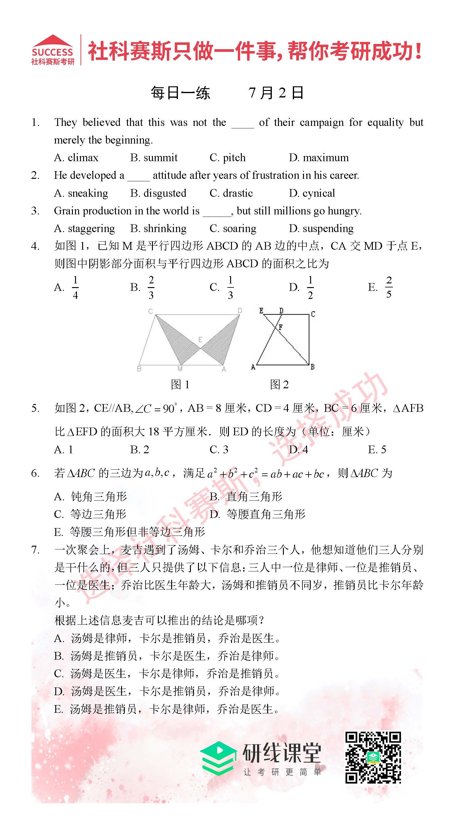 導(dǎo)讀:考研是一場(chǎng)持久戰(zhàn),保持良好的學(xué)習(xí)習(xí)慣,是能確保復(fù)習(xí)高效的關(guān)鍵。MBA備考網(wǎng)小編整理了管綜的每日一練,希望能對(duì)廣大考生有所幫助。