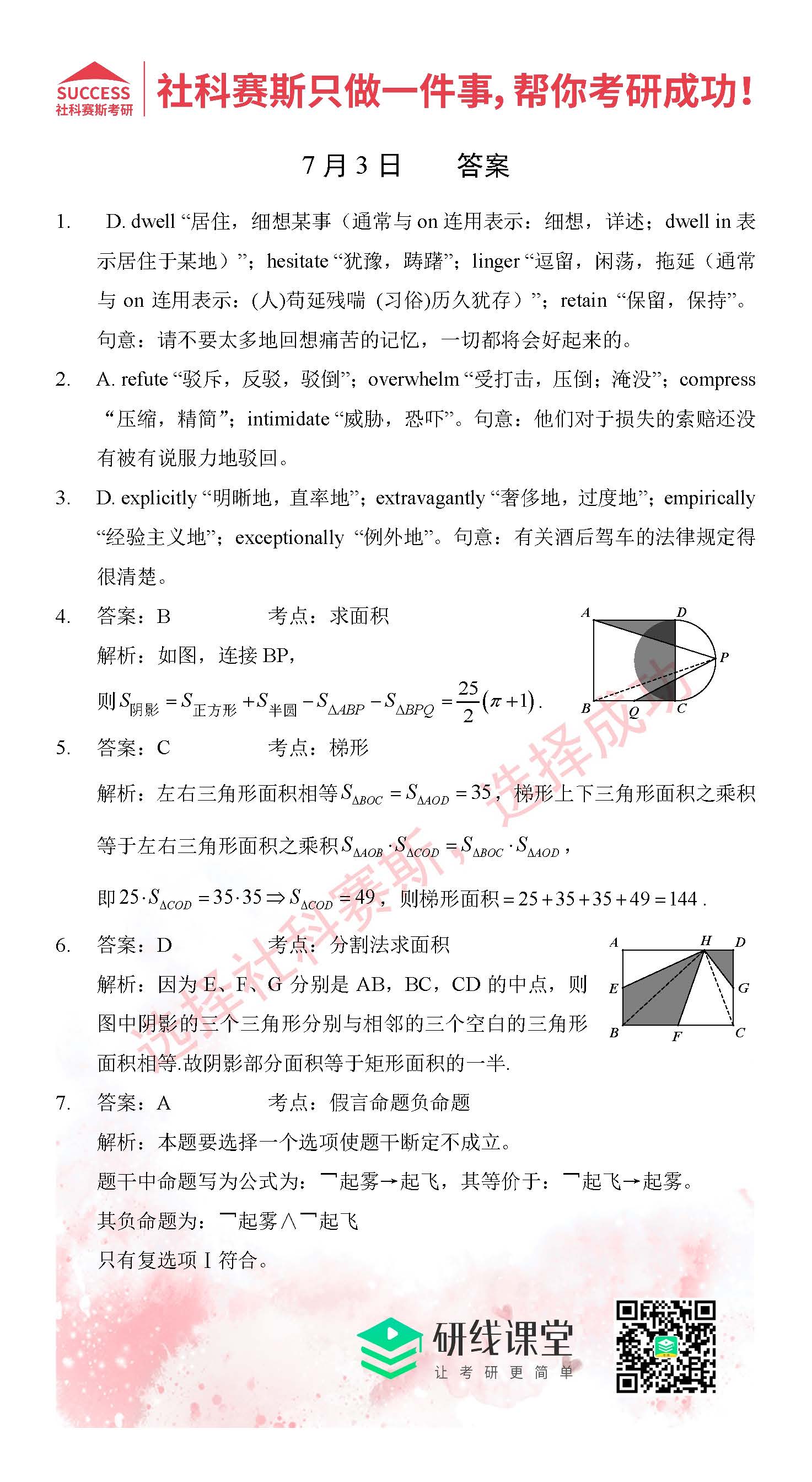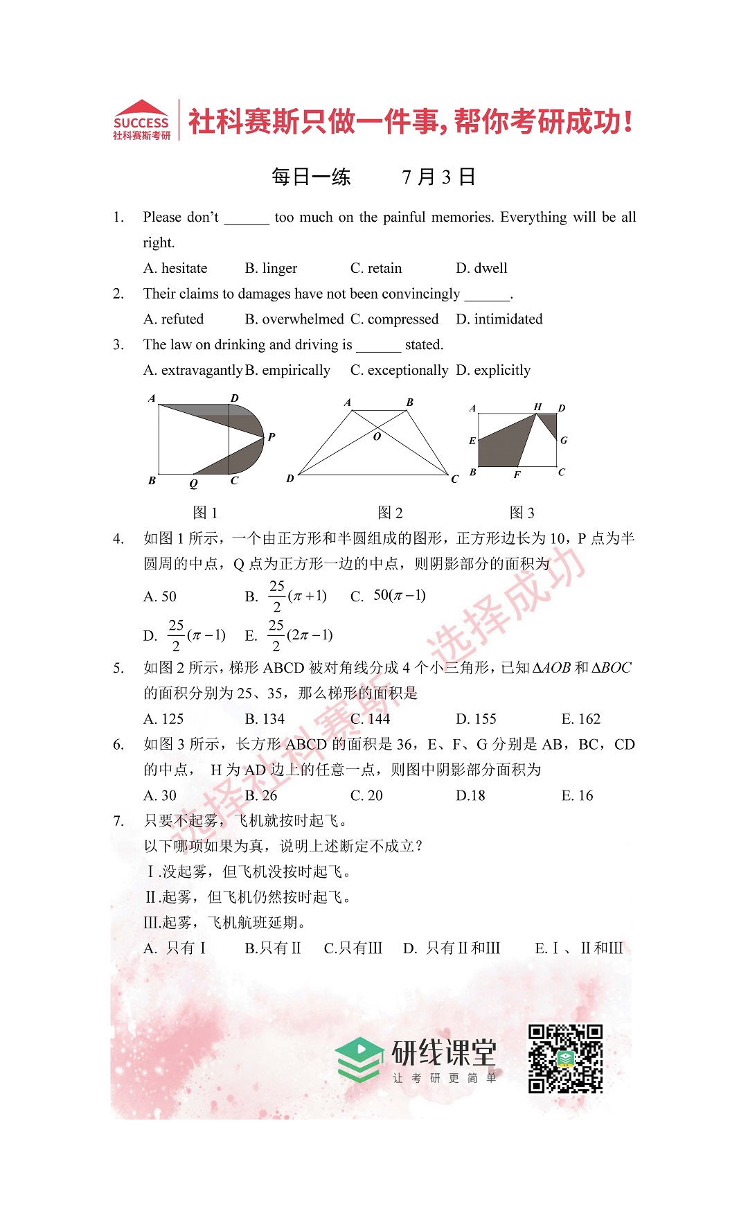 以上就是MBA備考網(wǎng)小編為大家提供的今日的每日一練“2021管理類聯(lián)考7月3日每日一練及答案”的全部內(nèi)容,希望各位考生堅持利用起來,更多每日一練內(nèi)容請持續(xù)關(guān)注MBA備考網(wǎng)管理類聯(lián)考每日一練