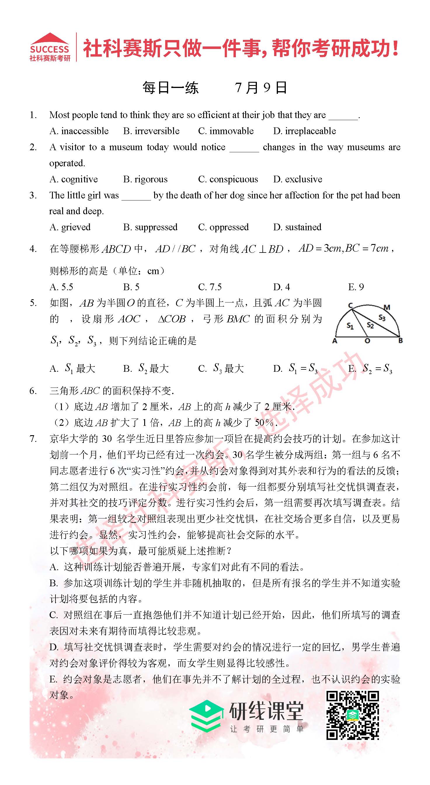 以上就是MBA備考網(wǎng)小編為大家提供的今日的每日一練“2021管理類聯(lián)考7月9日每日一練及答案”的全部?jī)?nèi)容,希望各位考生堅(jiān)持利用起來,更多每日一練內(nèi)容請(qǐng)持續(xù)關(guān)注MBA備考網(wǎng)管理類聯(lián)考每日一練