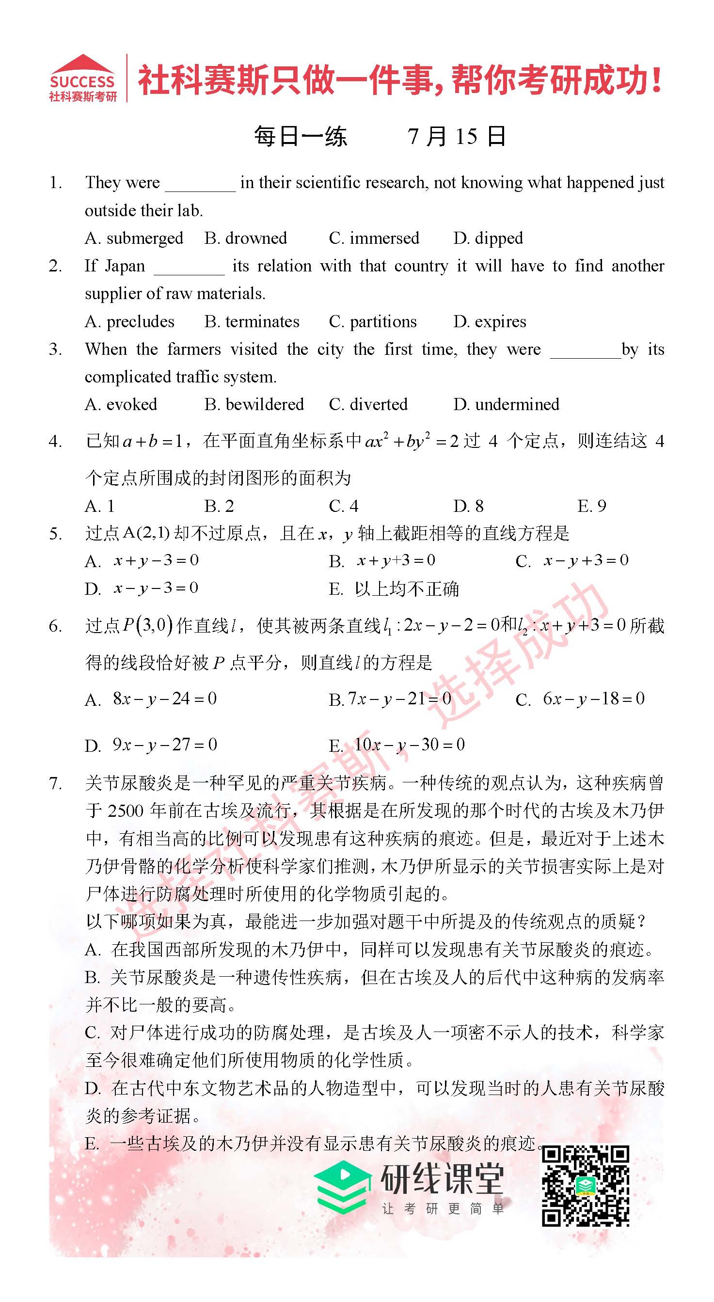 以上就是MBA備考網(wǎng)小編為大家提供的今日的每日一練“2021管理類聯(lián)考7月15日每日一練及答案”的全部?jī)?nèi)容,希望各位考生堅(jiān)持利用起來(lái),更多每日一練內(nèi)容請(qǐng)持續(xù)關(guān)注MBA備考網(wǎng)管理類聯(lián)考每日一練