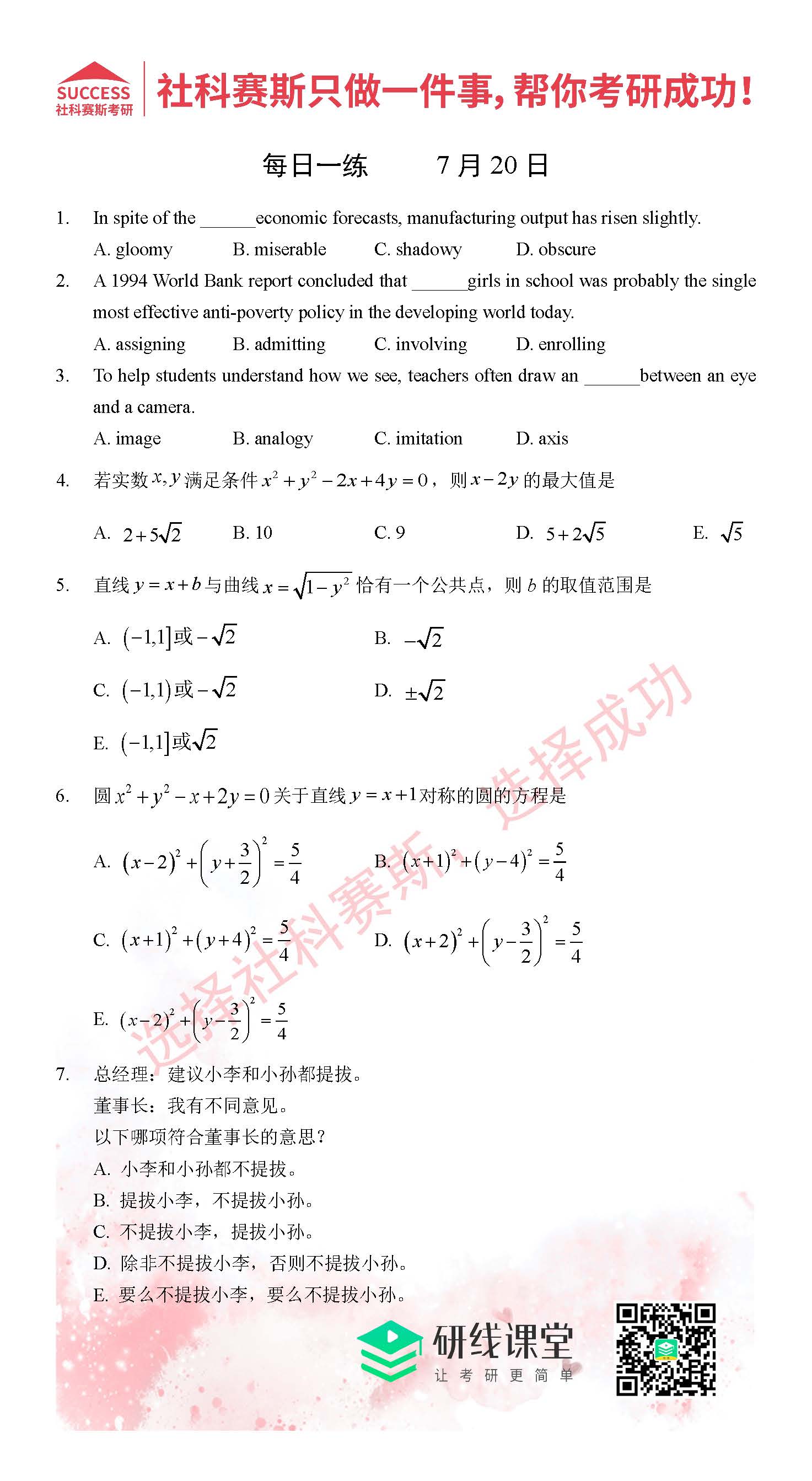 以上就是MBA備考網(wǎng)小編為大家提供的今日的每日一練“2021管理類聯(lián)考7月20日每日一練及答案”的全部?jī)?nèi)容,希望各位考生堅(jiān)持利用起來(lái),更多每日一練內(nèi)容請(qǐng)持續(xù)關(guān)注MBA備考網(wǎng)管理類聯(lián)考每日一練。