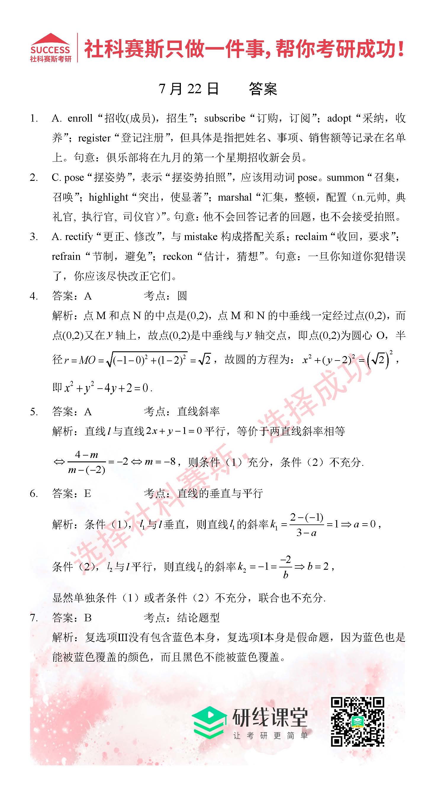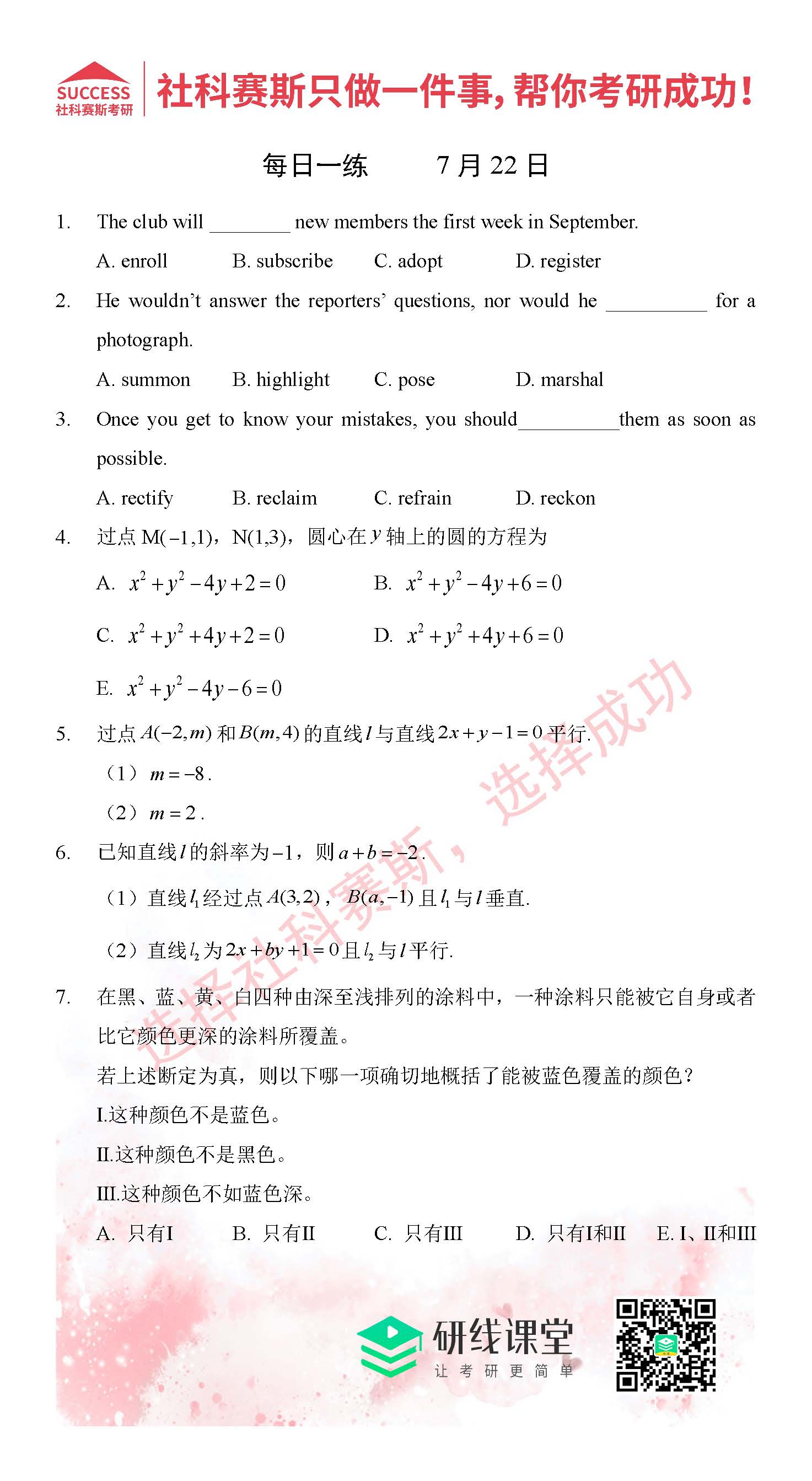 以上就是MBA備考網(wǎng)小編為大家提供的今日的每日一練“2021管理類聯(lián)考7月22日每日一練及答案”的全部?jī)?nèi)容,希望各位考生堅(jiān)持利用起來(lái),更多每日一練內(nèi)容請(qǐng)持續(xù)關(guān)注MBA備考網(wǎng)管理類聯(lián)考每日一練。