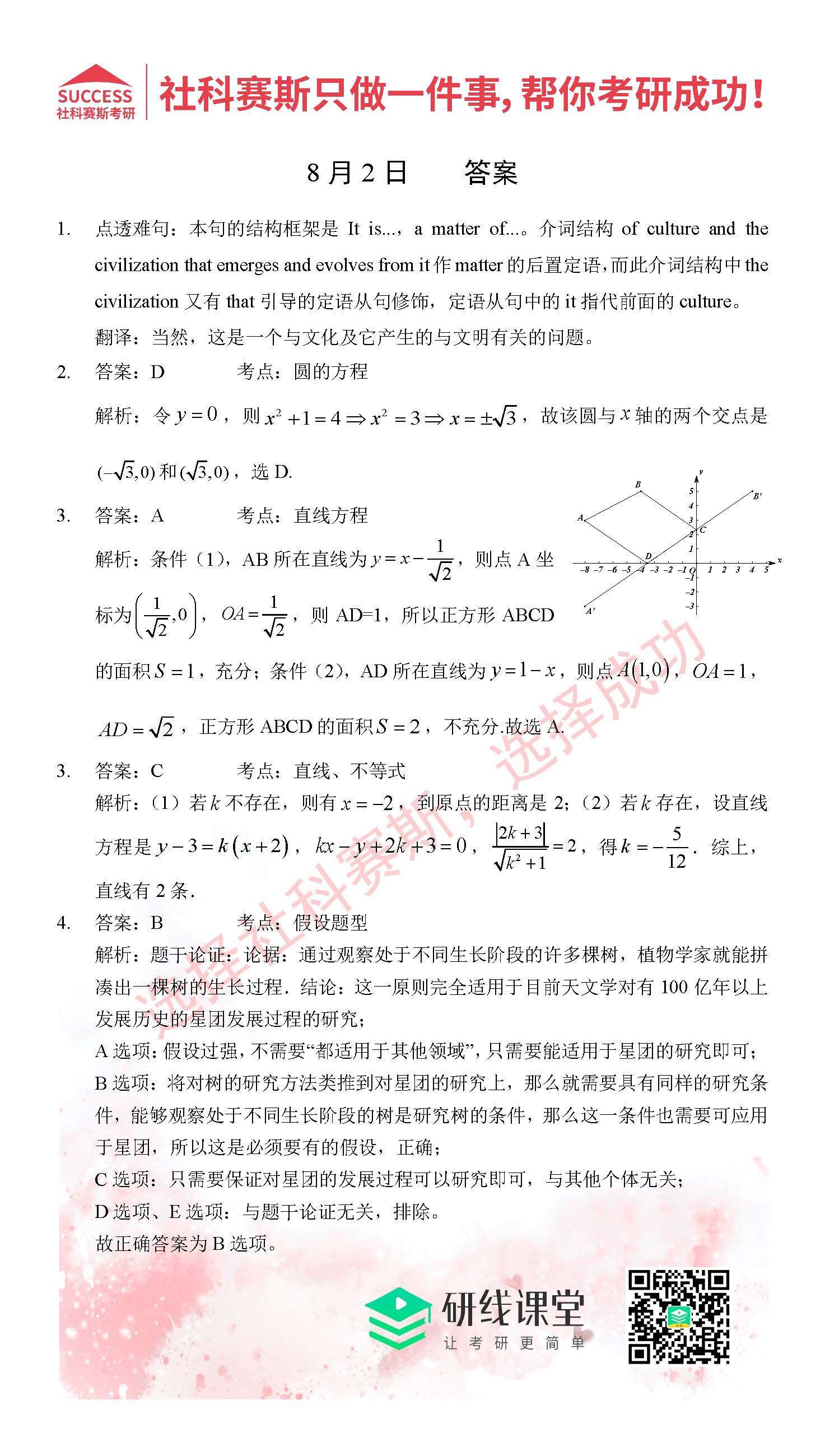 以上就是MBA備考網(wǎng)小編為大家提供的今日每日一練“2021管理類聯(lián)考8月2日每日一練及答案”的全部內(nèi)容,希望各位考生堅(jiān)持利用起來,更多每日一練內(nèi)容請(qǐng)持續(xù)關(guān)注MBA備考網(wǎng)管理類聯(lián)考每日一練。