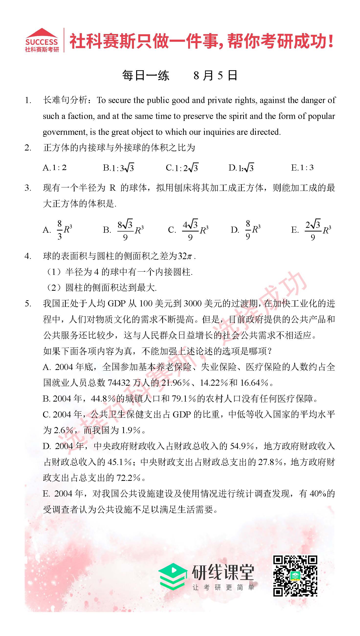 導(dǎo)讀:考研是一場持久戰(zhàn),保持良好的學(xué)習(xí)習(xí)慣,是能確保復(fù)習(xí)高效的關(guān)鍵。MBA備考網(wǎng)小編整理了管綜的每日一練,希望能對(duì)廣大考生有所幫助。