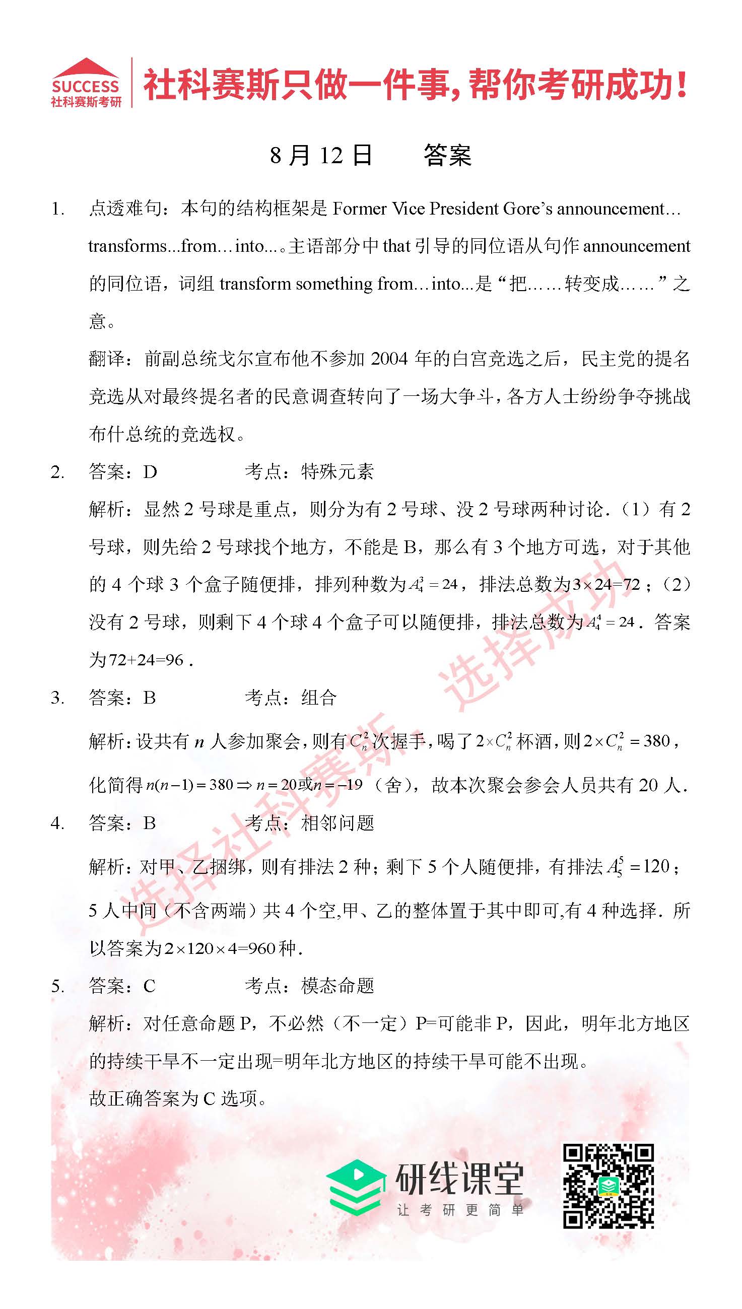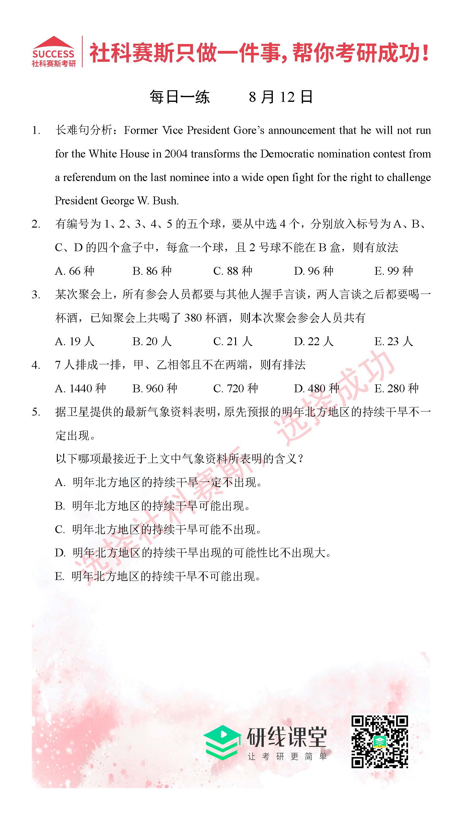 好文速遞:管理類(lèi)聯(lián)考7月份精選習(xí)題匯總