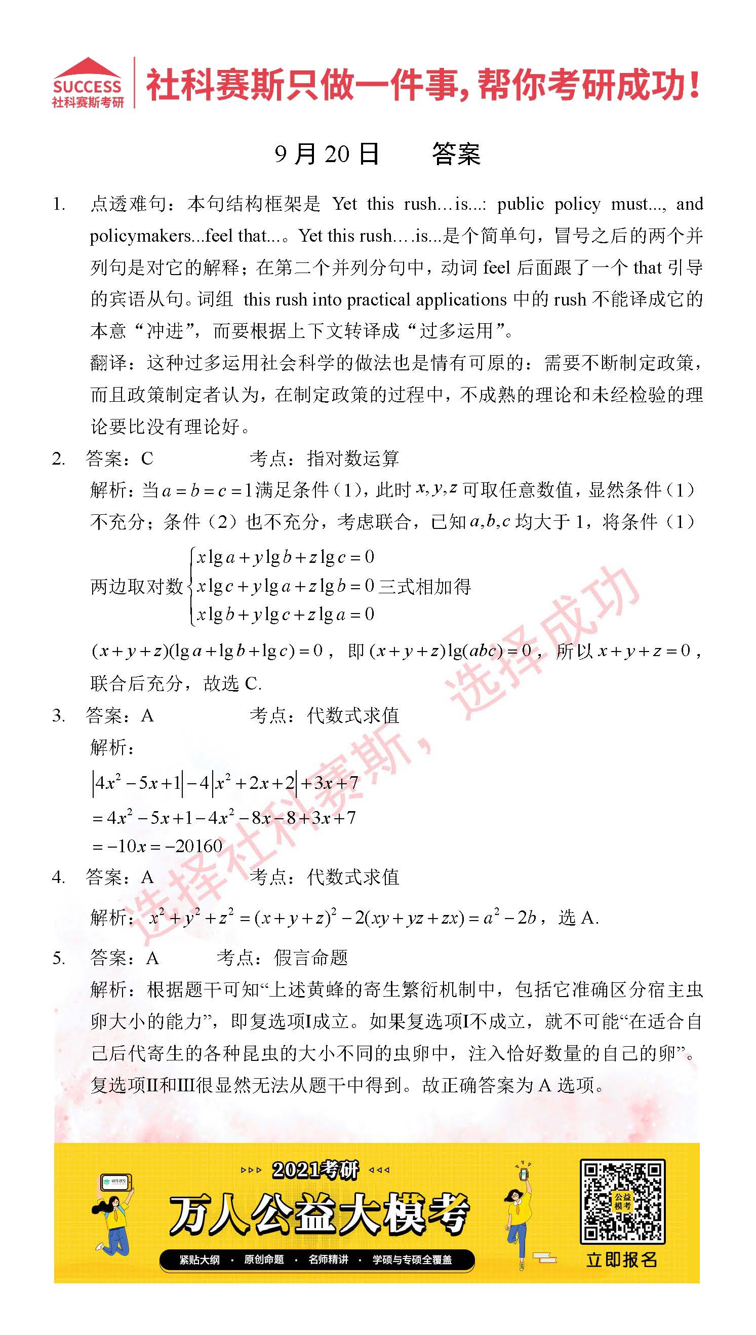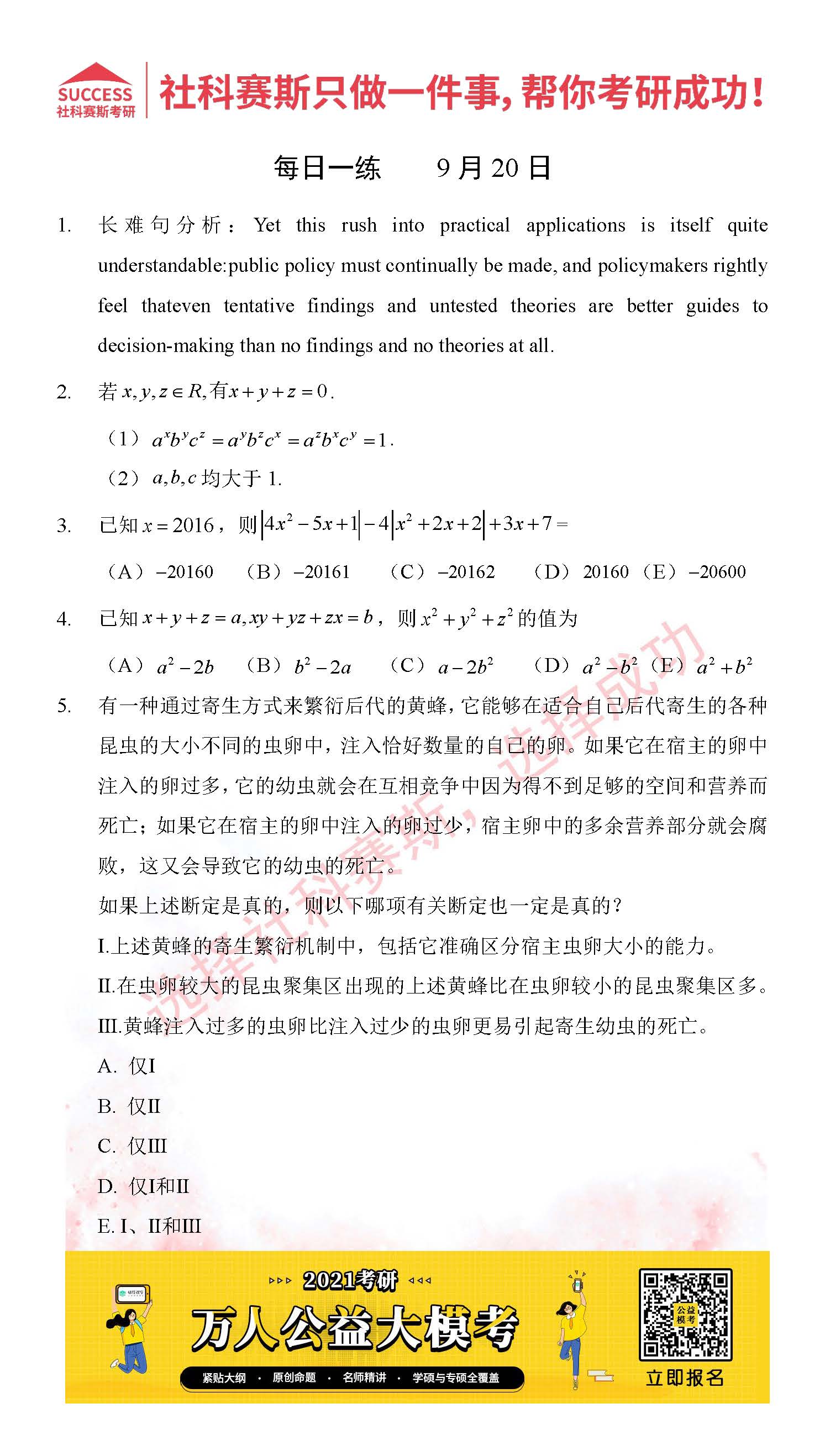 考研是一場持久戰(zhàn),保持良好的學(xué)習(xí)習(xí)慣,是能確保復(fù)習(xí)高效的關(guān)鍵。今天社科賽斯MBA備考網(wǎng)小編整理了“2021管理類聯(lián)考9月20日每日一練及答案”的內(nèi)容,希望能對廣大考生有所幫助。