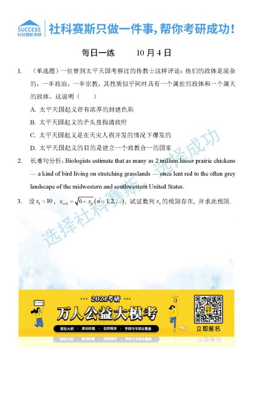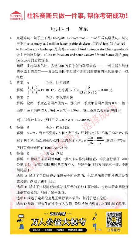 考研是一場持久戰(zhàn),保持良好的學習習慣,是能確保復習高效的關(guān)鍵。今天社科賽斯MBA備考網(wǎng)小編整理了“2021管理類聯(lián)考10月4日每日一練及答案”的內(nèi)容,希望能對廣大考生有所幫助。