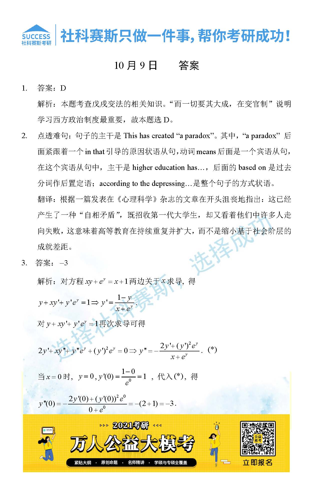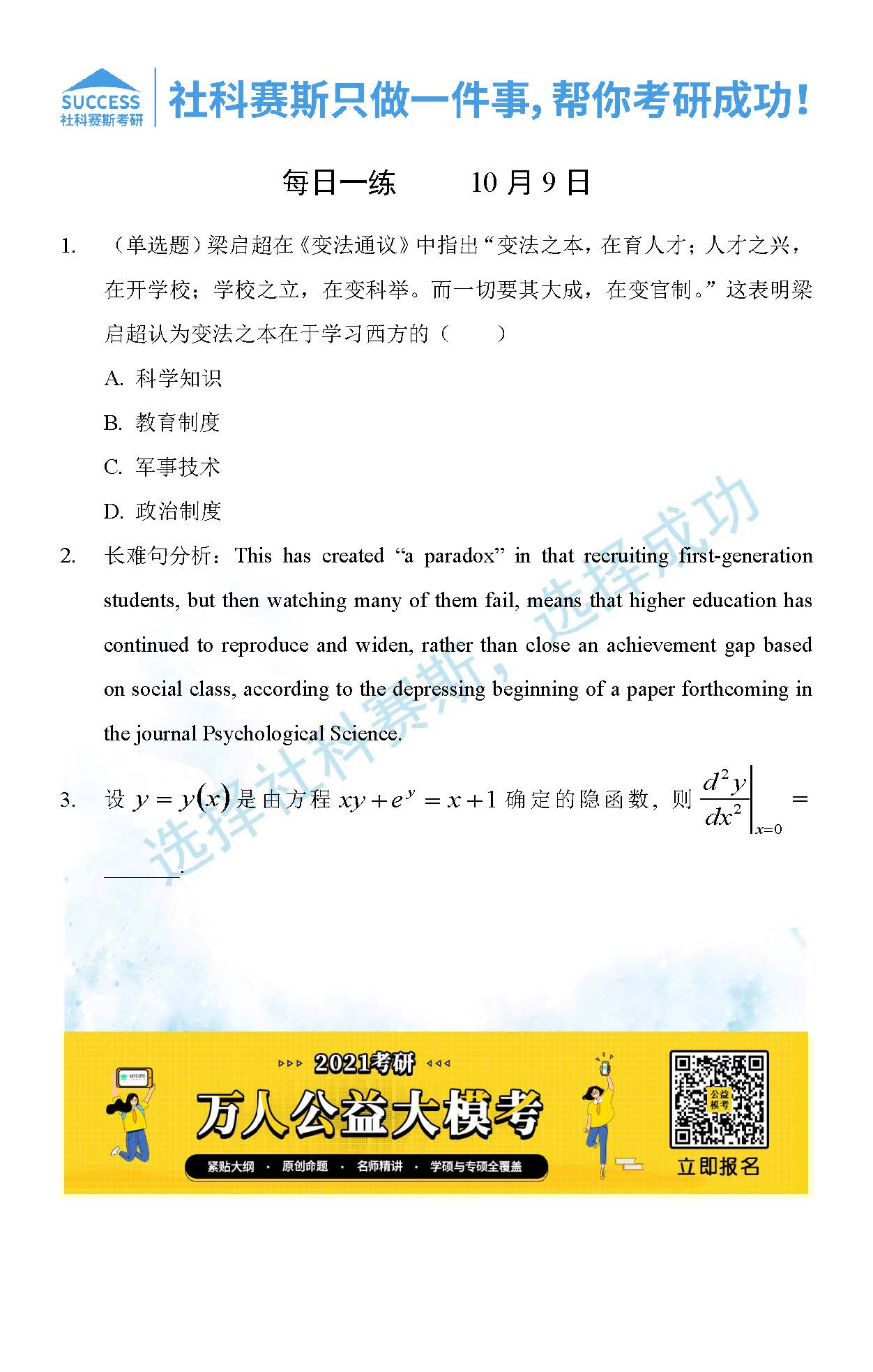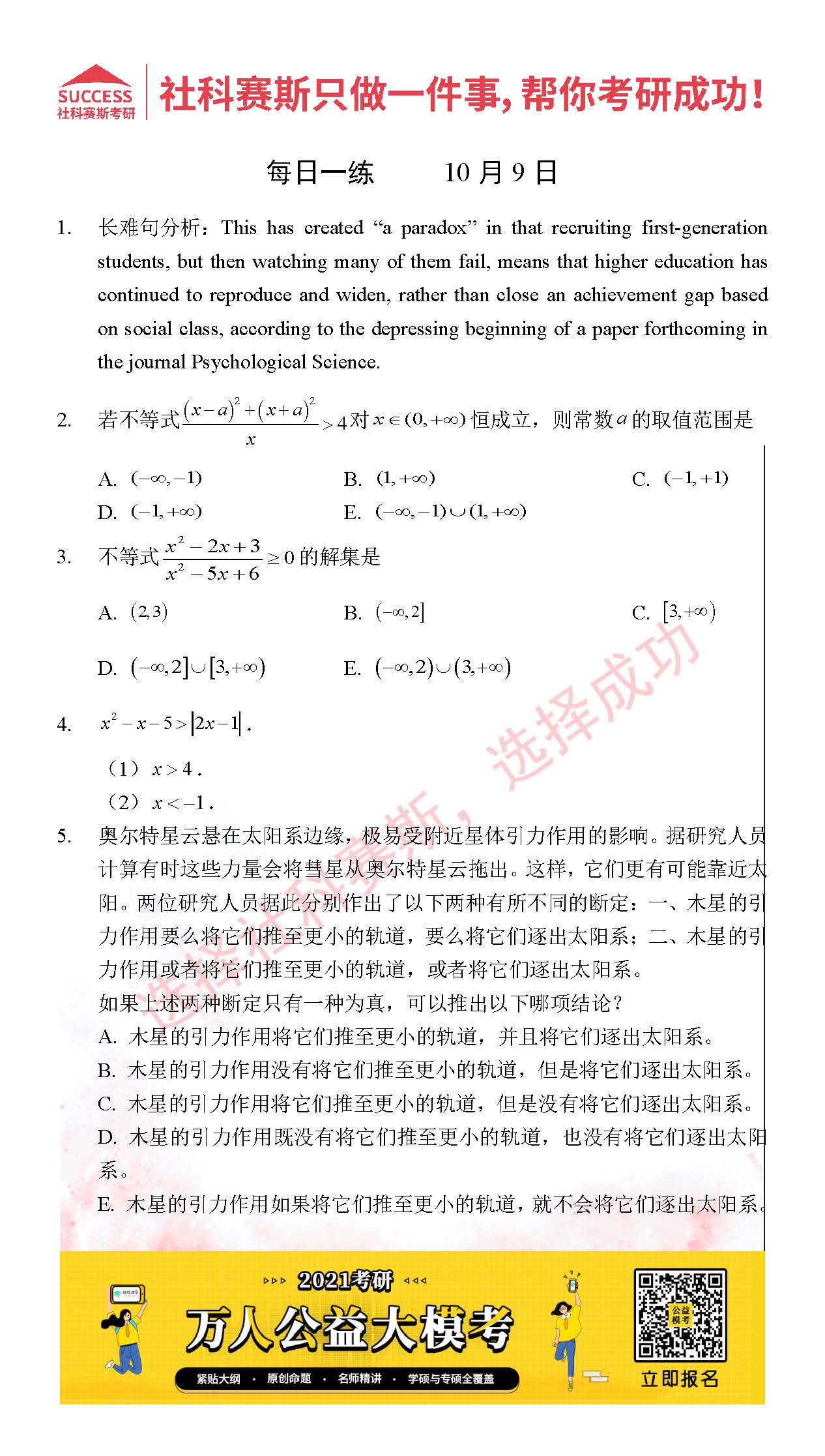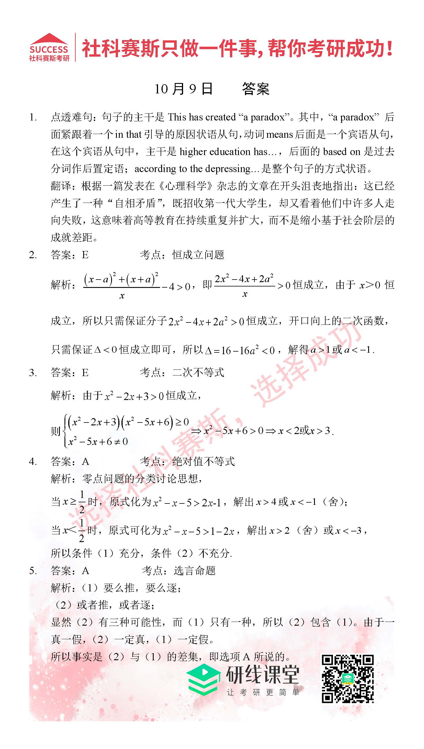 考研是一場(chǎng)持久戰(zhàn),保持良好的學(xué)習(xí)習(xí)慣,是能確保復(fù)習(xí)高效的關(guān)鍵。今天社科賽斯MBA備考網(wǎng)小編整理了“2021管理類聯(lián)考10月9日每日一練及答案”的內(nèi)容,希望能對(duì)廣大考生有所幫助。