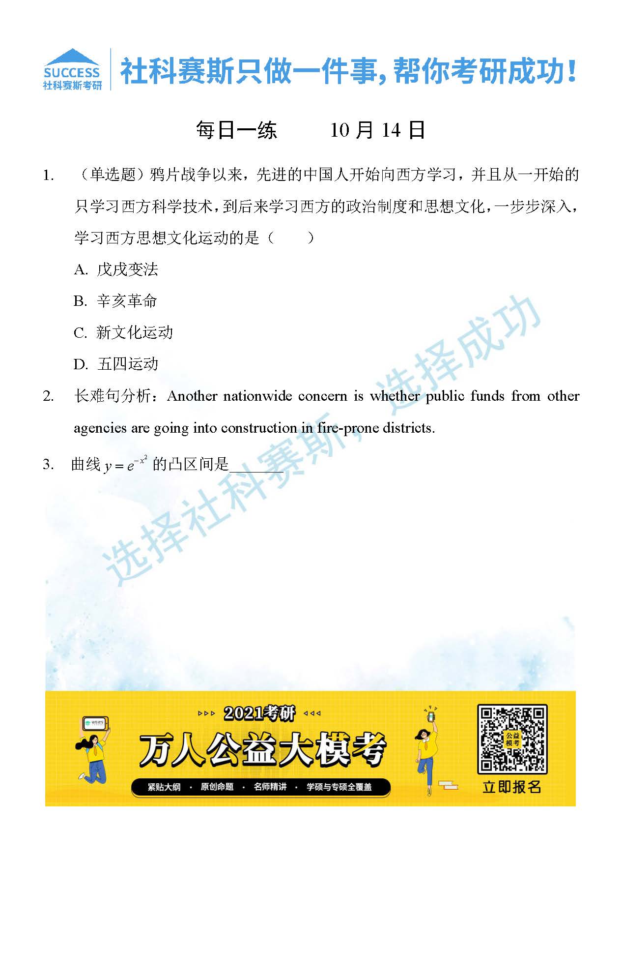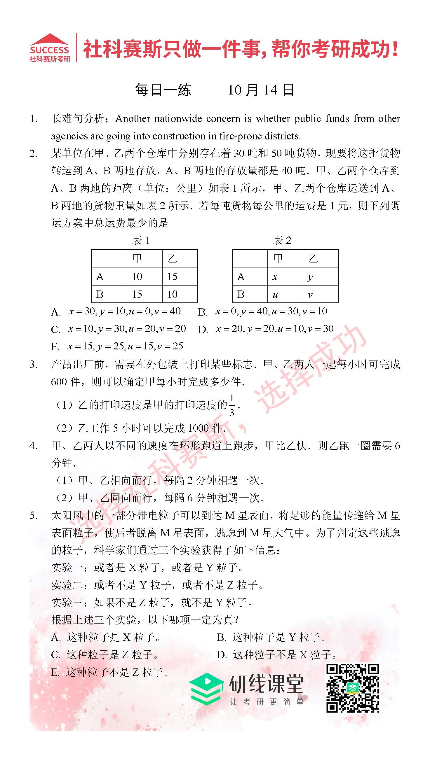 考研是一場(chǎng)持久戰(zhàn),保持良好的學(xué)習(xí)習(xí)慣,是能確保復(fù)習(xí)高效的關(guān)鍵。今天社科賽斯MBA備考網(wǎng)小編整理了“2021管理類聯(lián)考10月14日每日一練及答案”的內(nèi)容,希望能對(duì)廣大考生有所幫助。