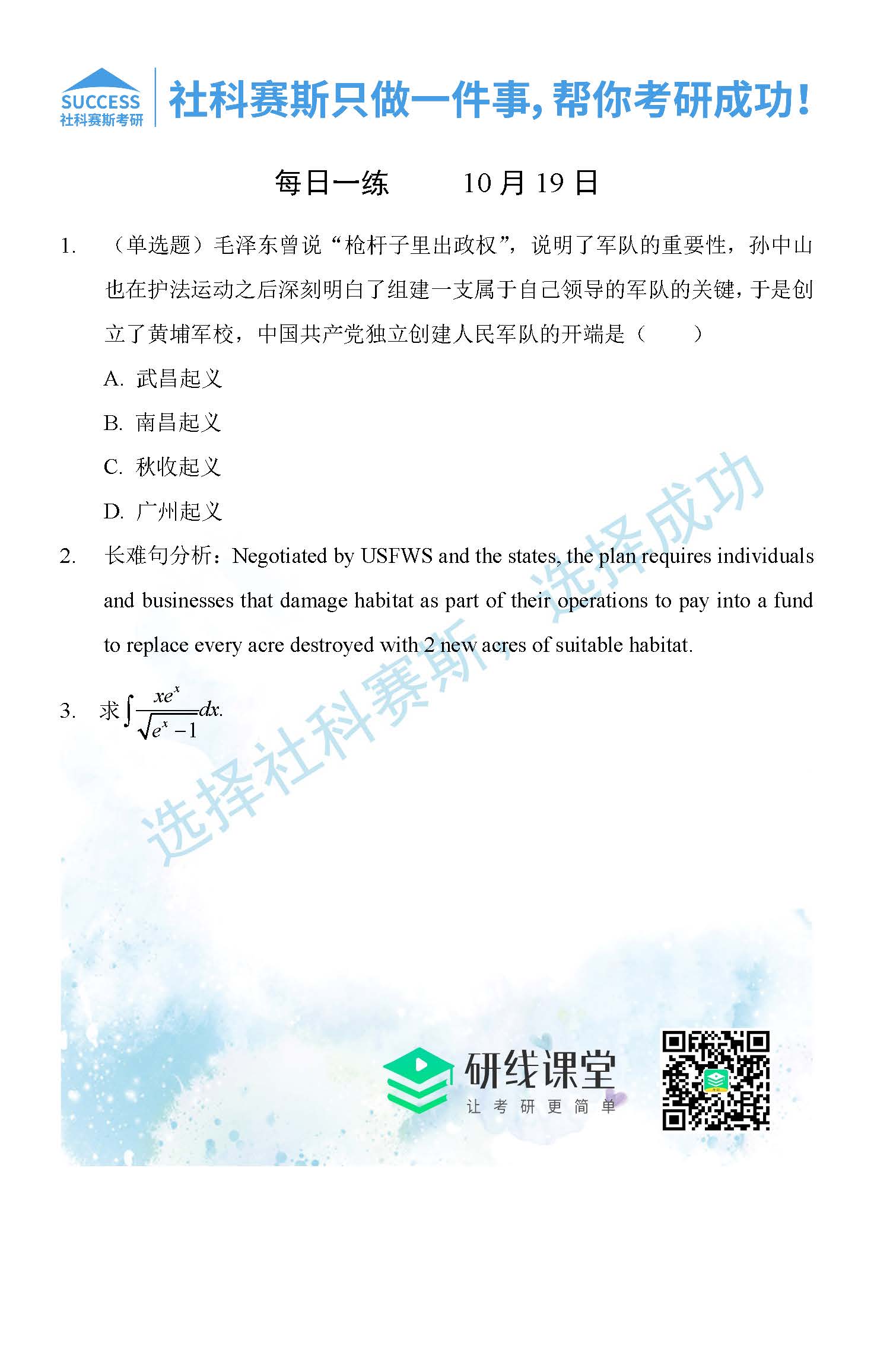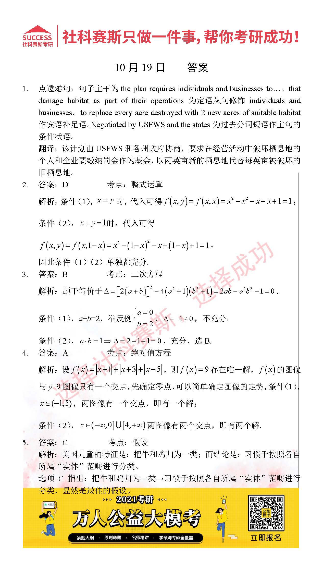 考研是一場持久戰(zhàn),保持良好的學(xué)習(xí)習(xí)慣,是能確保復(fù)習(xí)高效的關(guān)鍵。今天社科賽斯MBA備考網(wǎng)小編整理了“2021管理類聯(lián)考10月19日每日一練及答案”的內(nèi)容,希望能對廣大考生有所幫助。