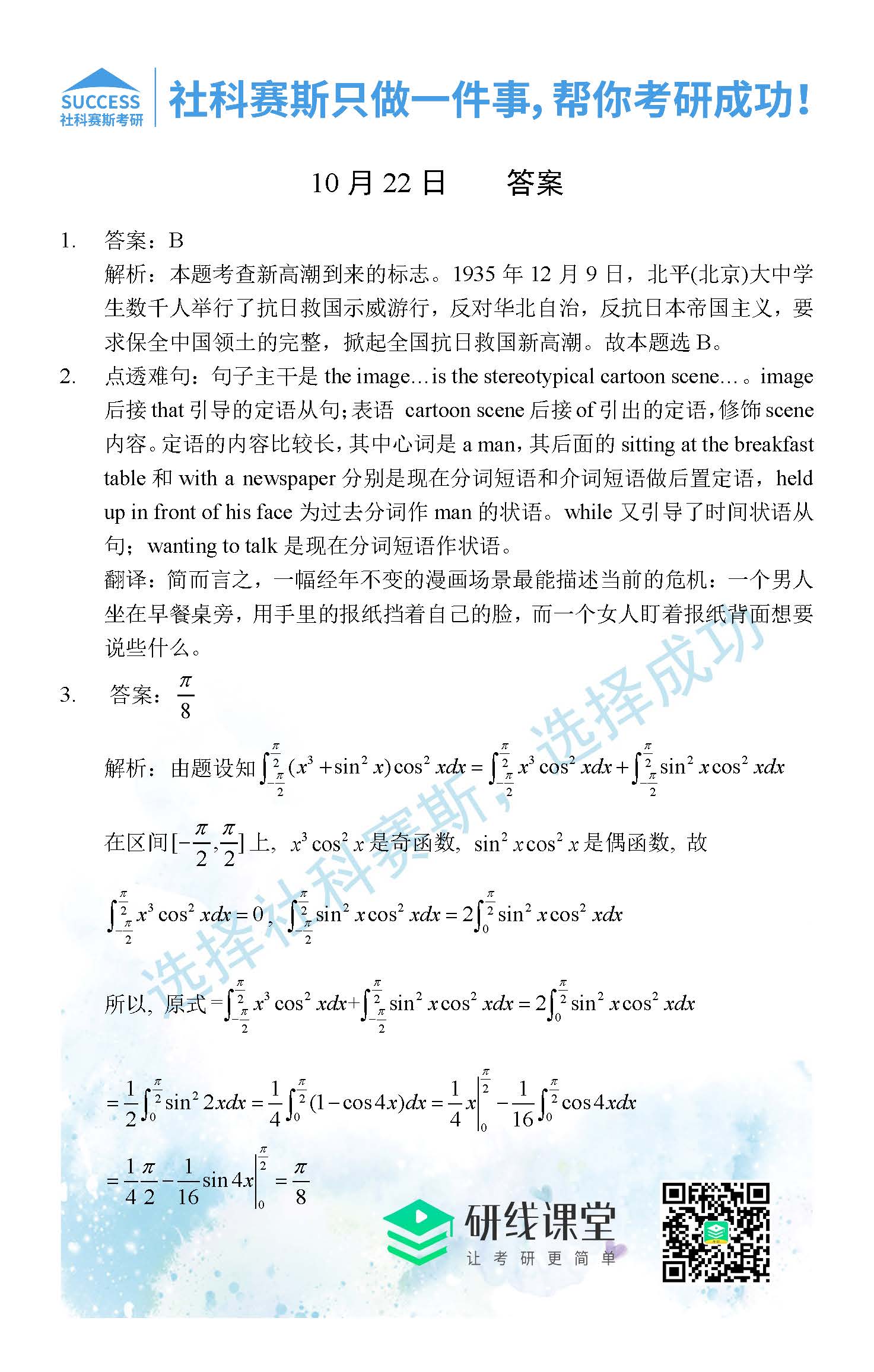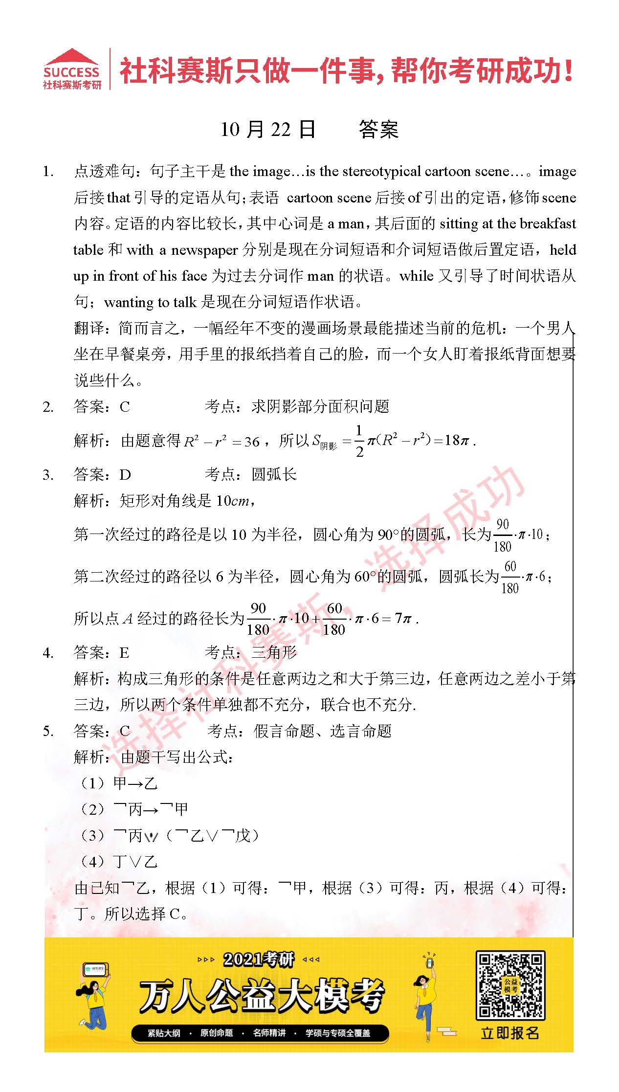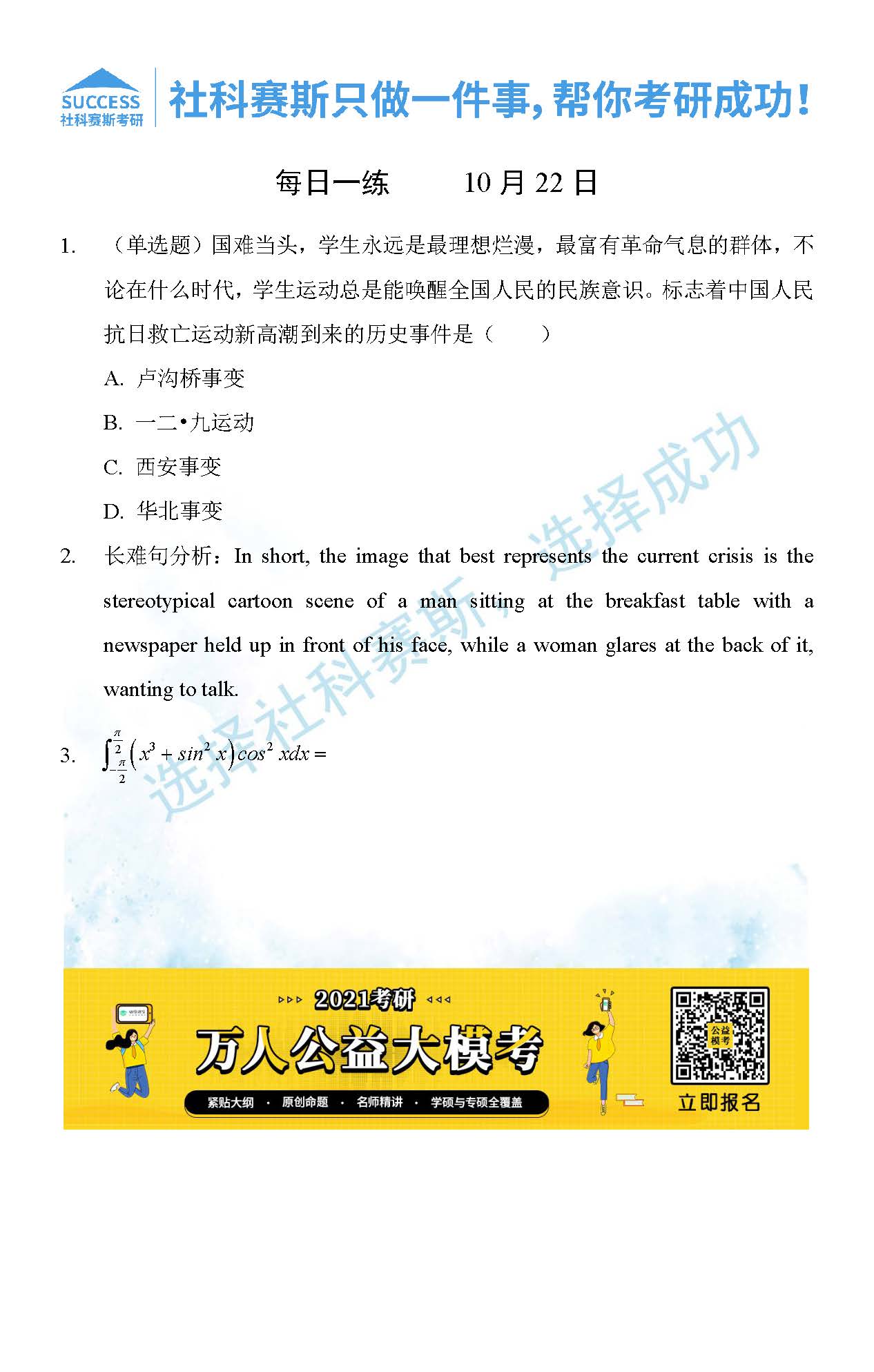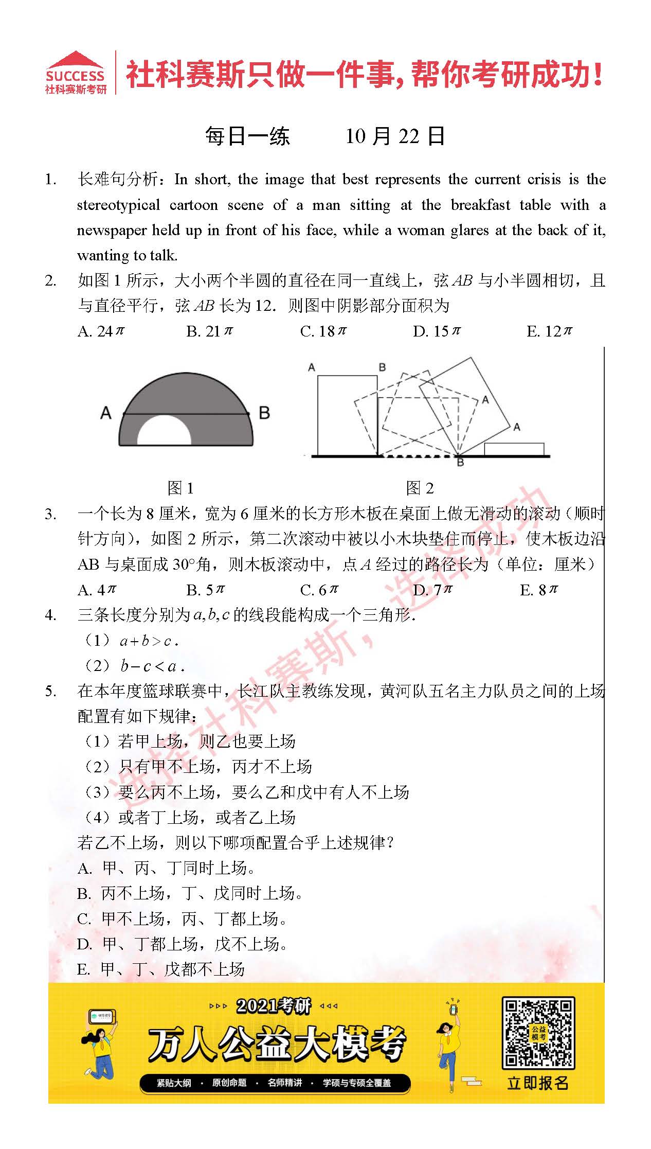 考研是一場持久戰(zhàn),保持良好的學(xué)習(xí)習(xí)慣,是能確保復(fù)習(xí)高效的關(guān)鍵。今天社科賽斯MBA備考網(wǎng)小編整理了“2021管理類聯(lián)10月22日每日一練及答案”的內(nèi)容,希望能對廣大考生有所幫助。