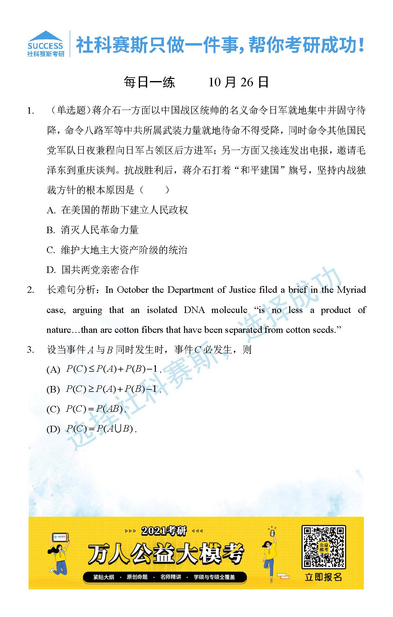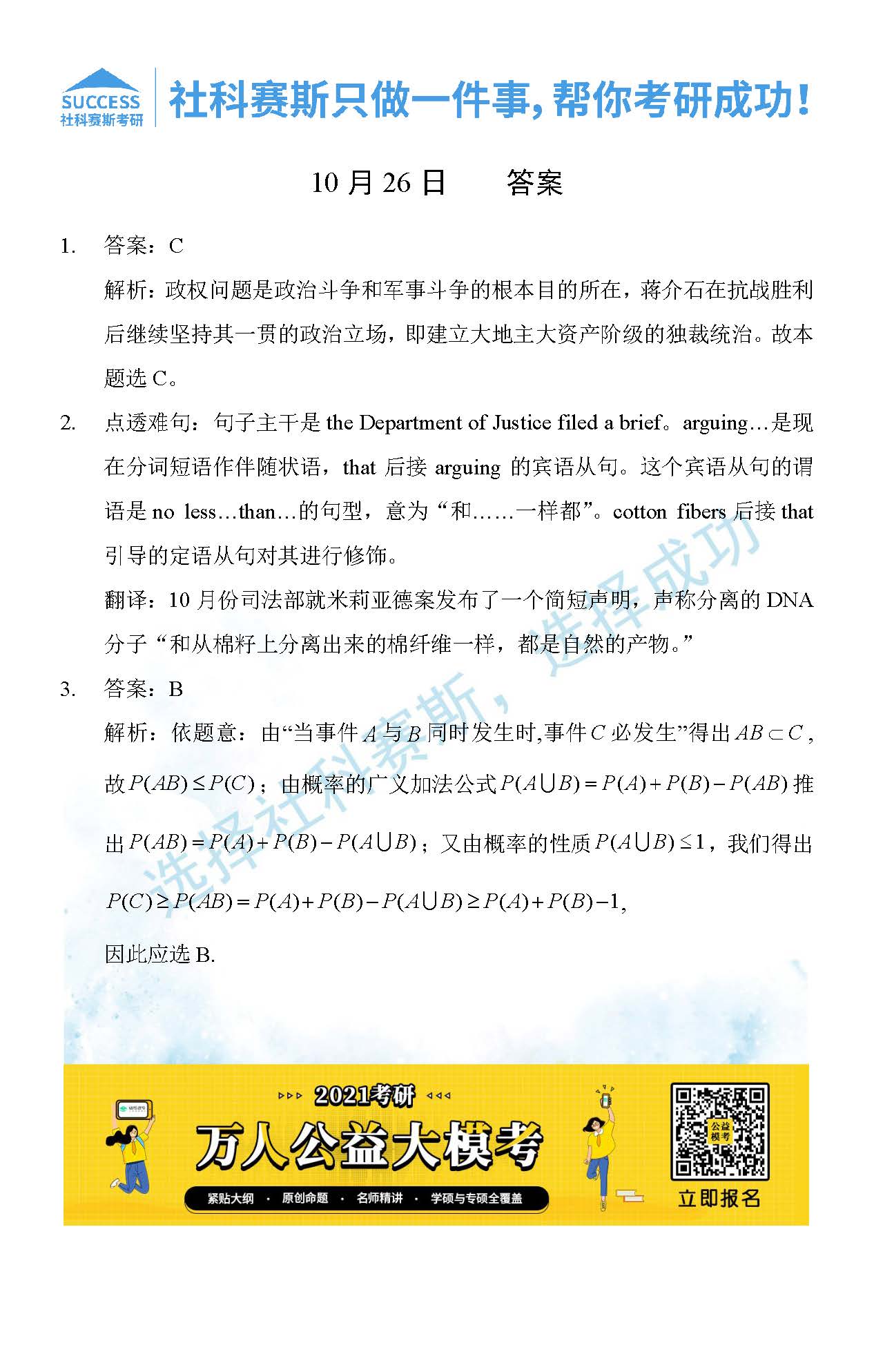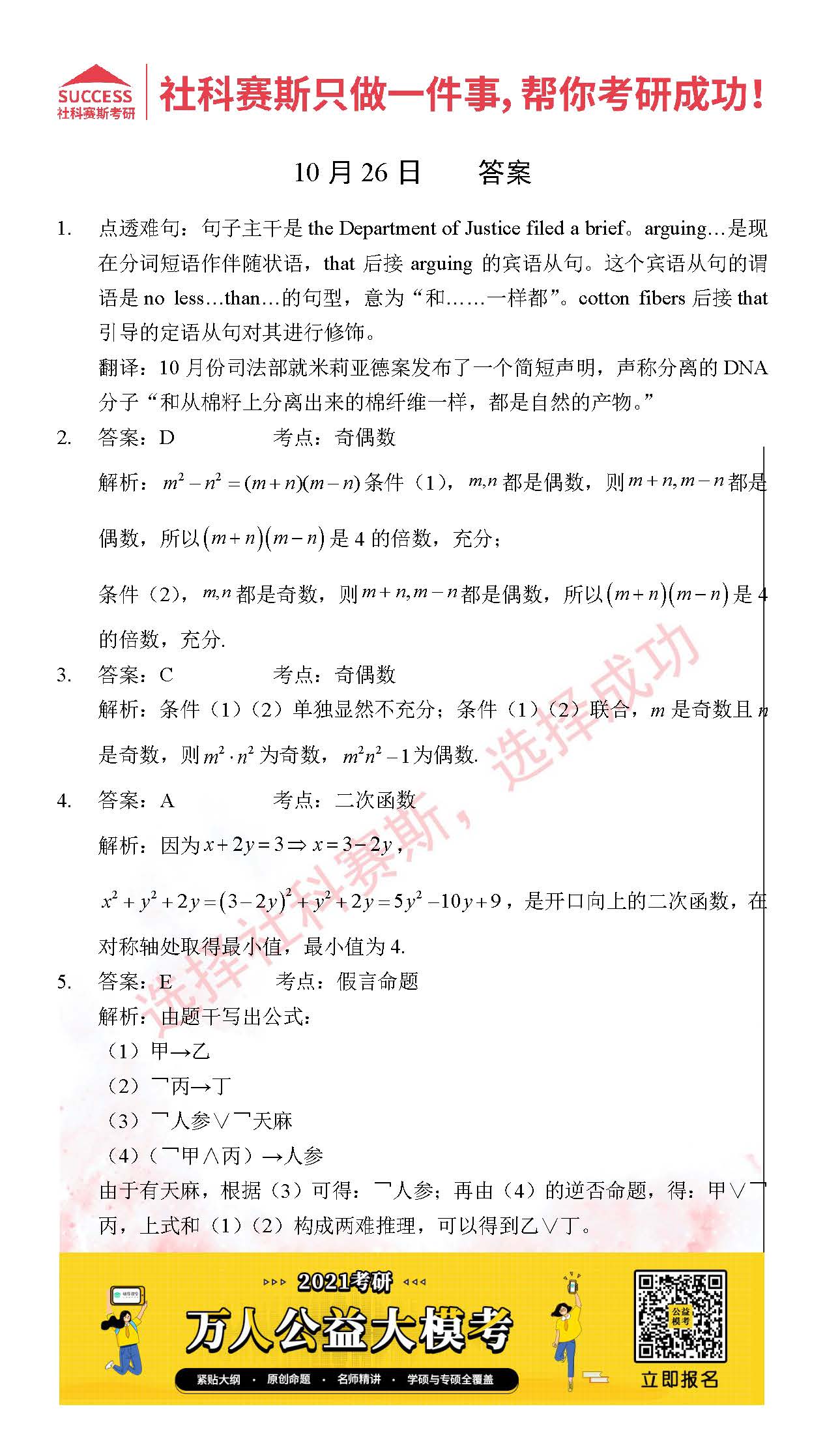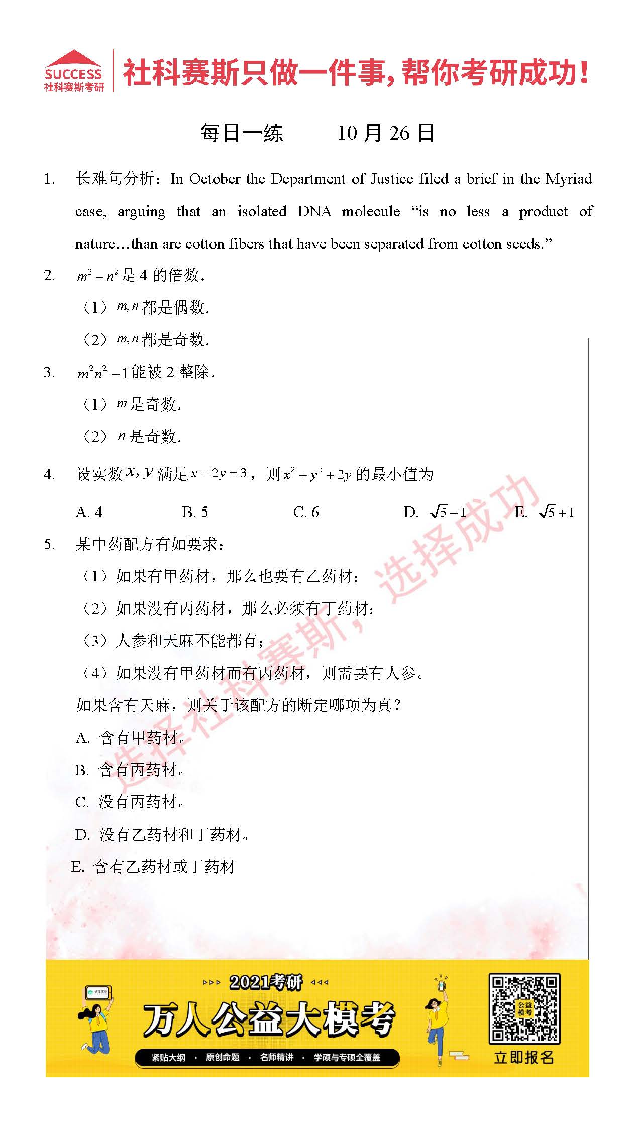 考研是一場持久戰(zhàn),保持良好的學(xué)習(xí)習(xí)慣,是能確保復(fù)習(xí)高效的關(guān)鍵。今天社科賽斯MBA備考網(wǎng)小編整理了“2021管理類聯(lián)10月26日每日一練及答案”的內(nèi)容,希望能對廣大考生有所幫助。