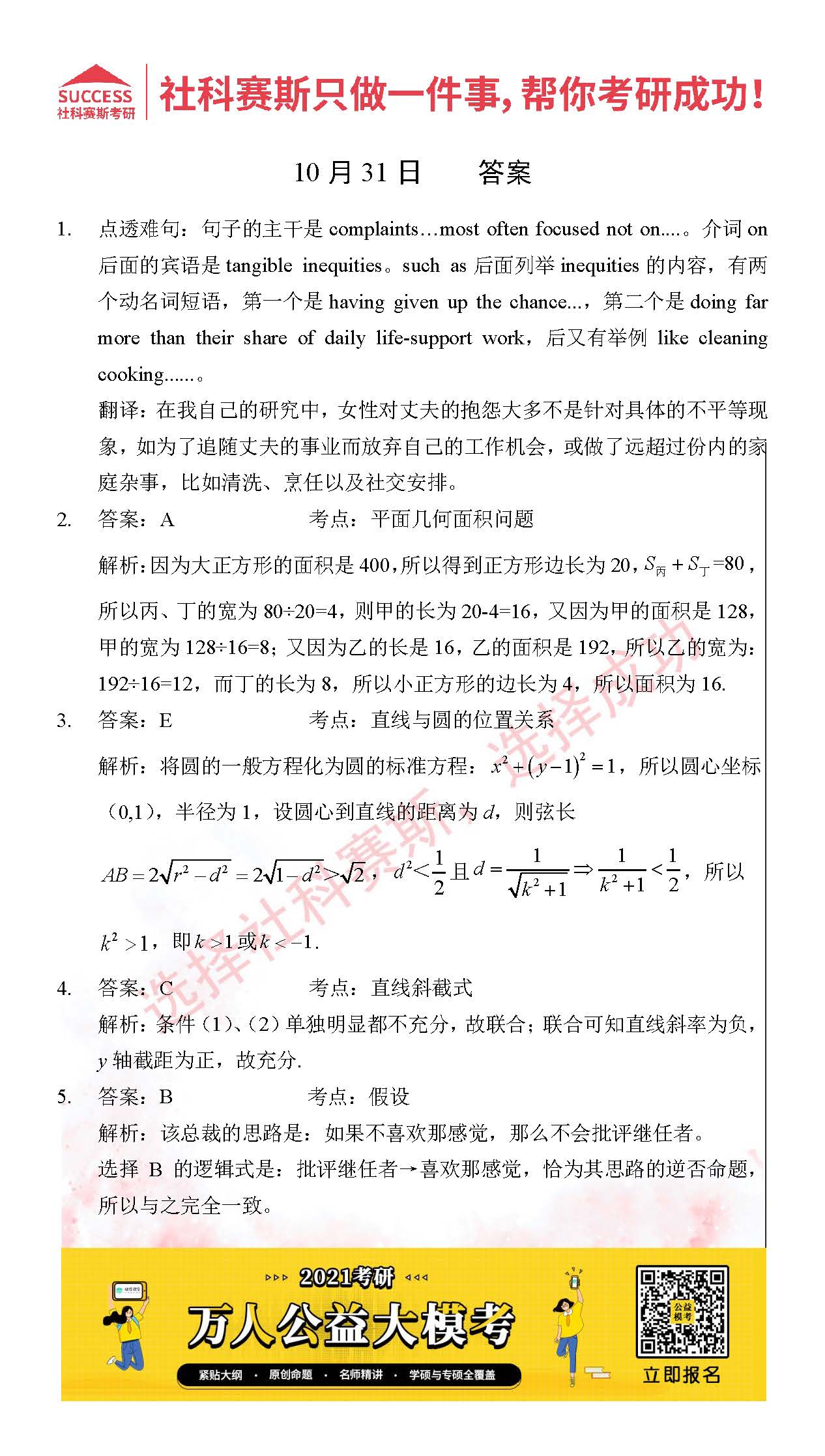 考研是一場持久戰(zhàn),保持良好的學習習慣,是能確保復習高效的關鍵。今天社科賽斯MBA備考網(wǎng)小編整理了“2021管理類聯(lián)10月30日每日一練及答案”的內(nèi)容,希望能對廣大考生有所幫助。