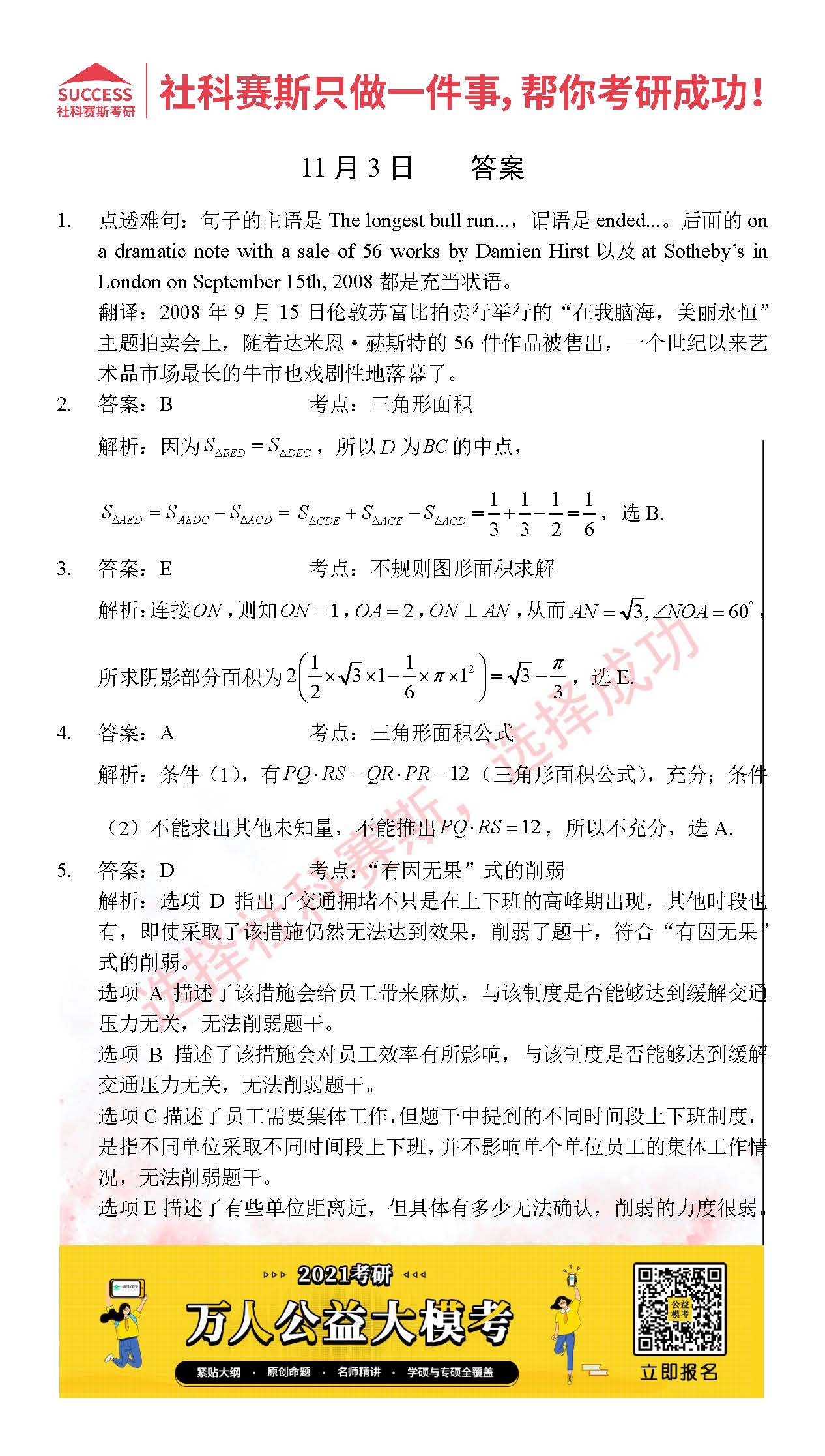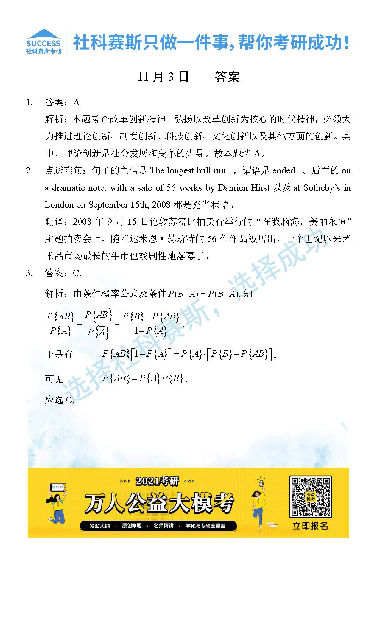 考研是一場持久戰(zhàn),保持良好的學(xué)習(xí)習(xí)慣,是能確保復(fù)習(xí)高效的關(guān)鍵。今天社科賽斯MBA備考網(wǎng)小編整理了“2021管理類聯(lián)11月3日每日一練及答案”的內(nèi)容,希望能對廣大考生有所幫助。