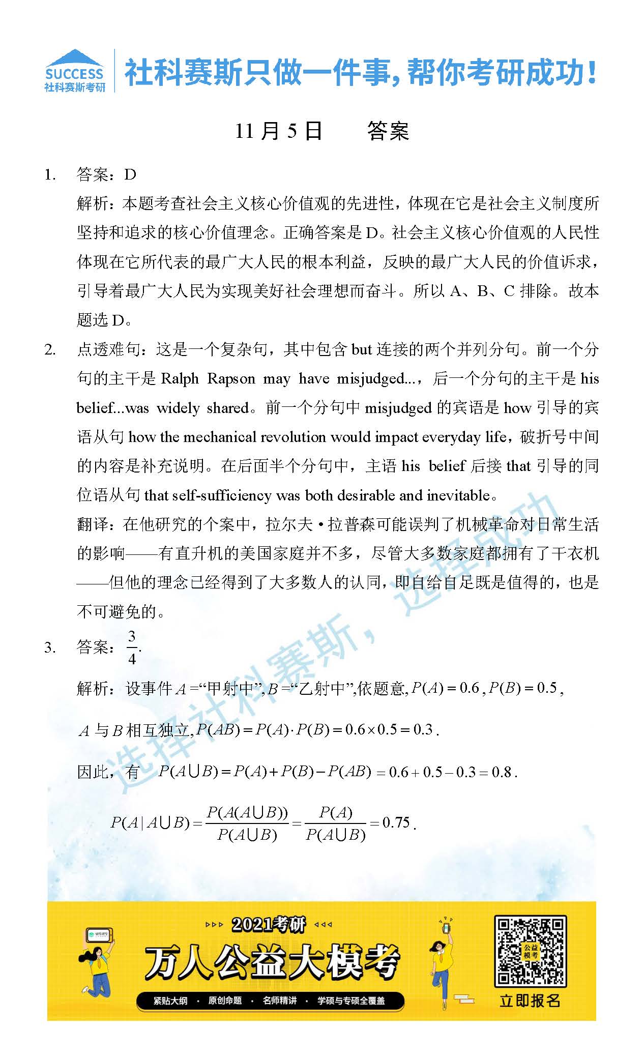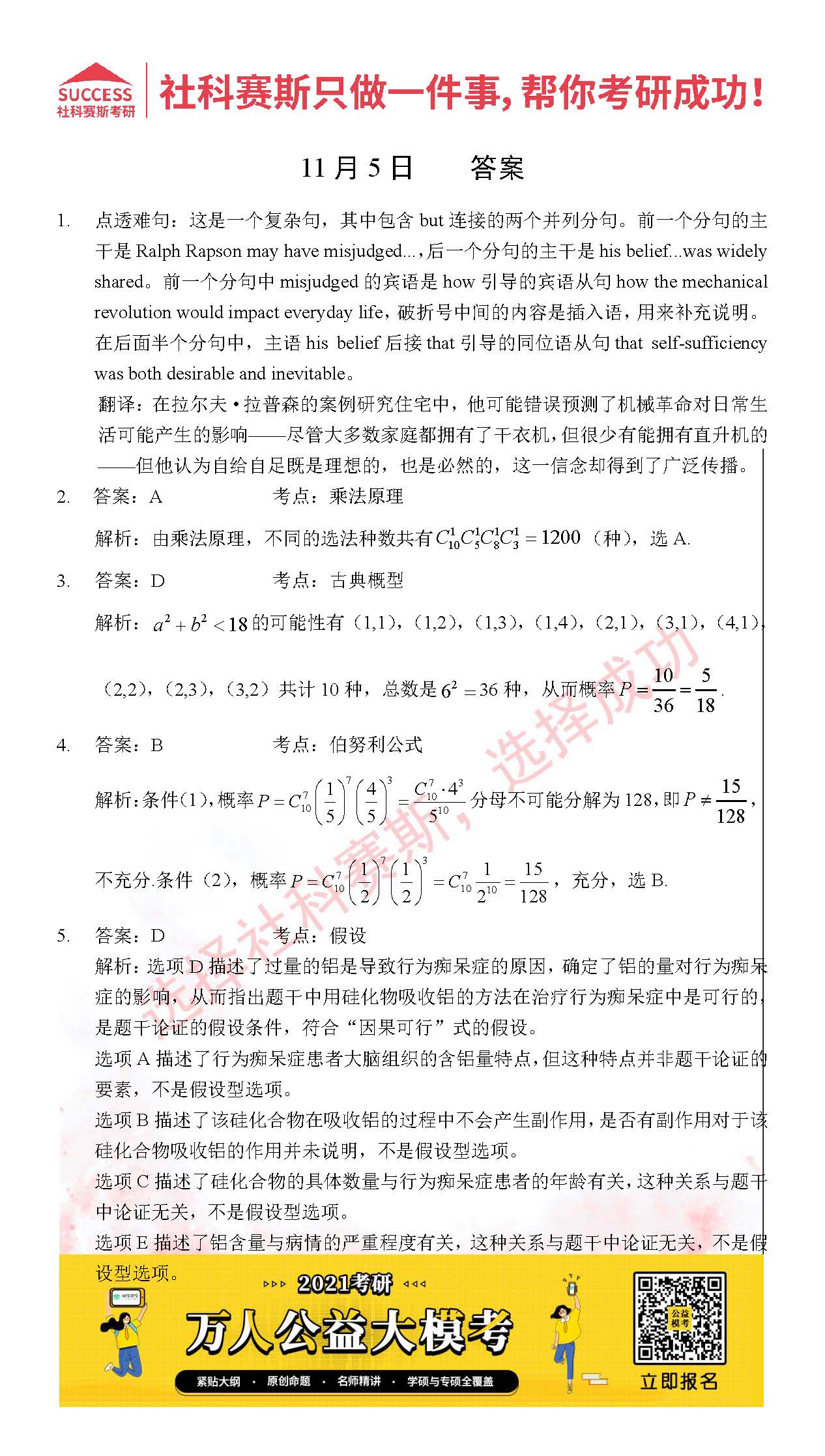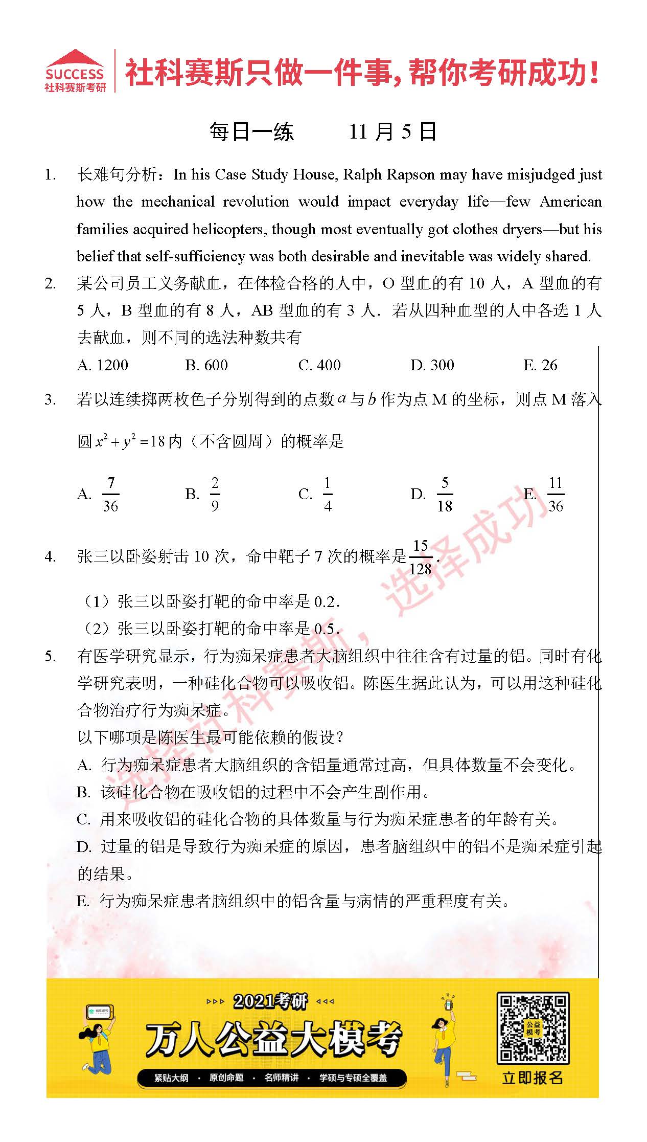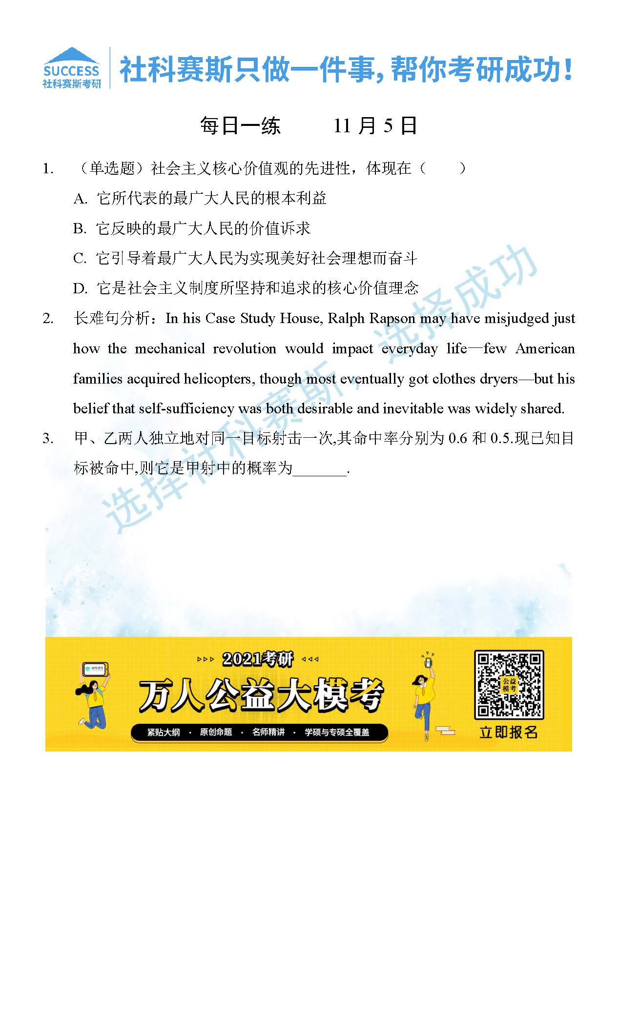 考研是一場持久戰(zhàn),保持良好的學(xué)習(xí)習(xí)慣,是能確保復(fù)習(xí)高效的關(guān)鍵。今天社科賽斯MBA備考網(wǎng)小編整理了“2021管理類聯(lián)11月5日每日一練及答案”的內(nèi)容,希望能對廣大考生有所幫助。