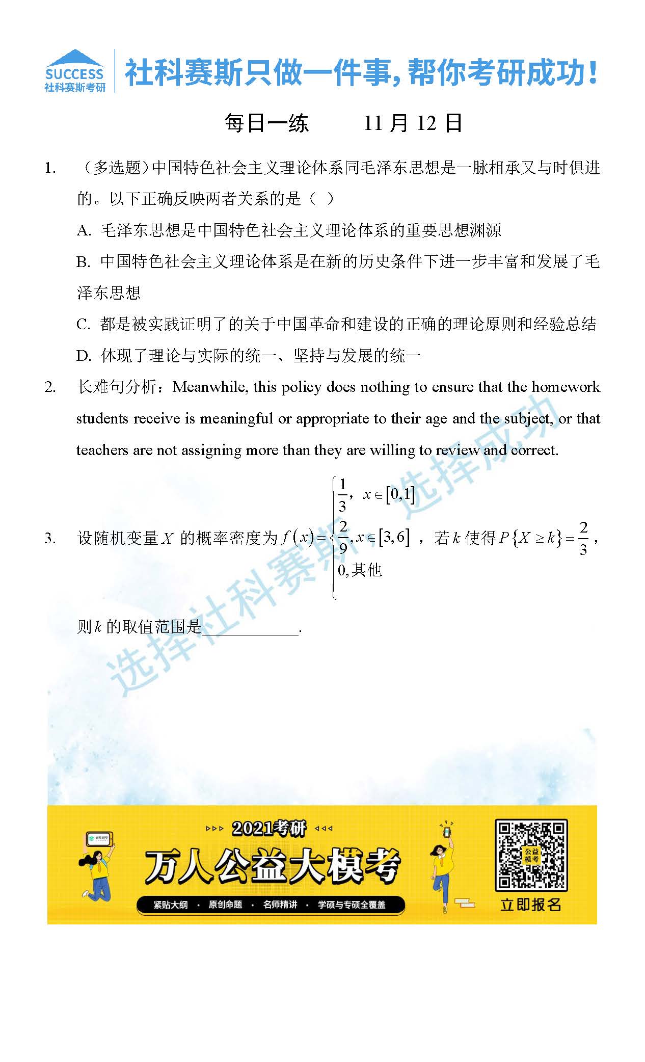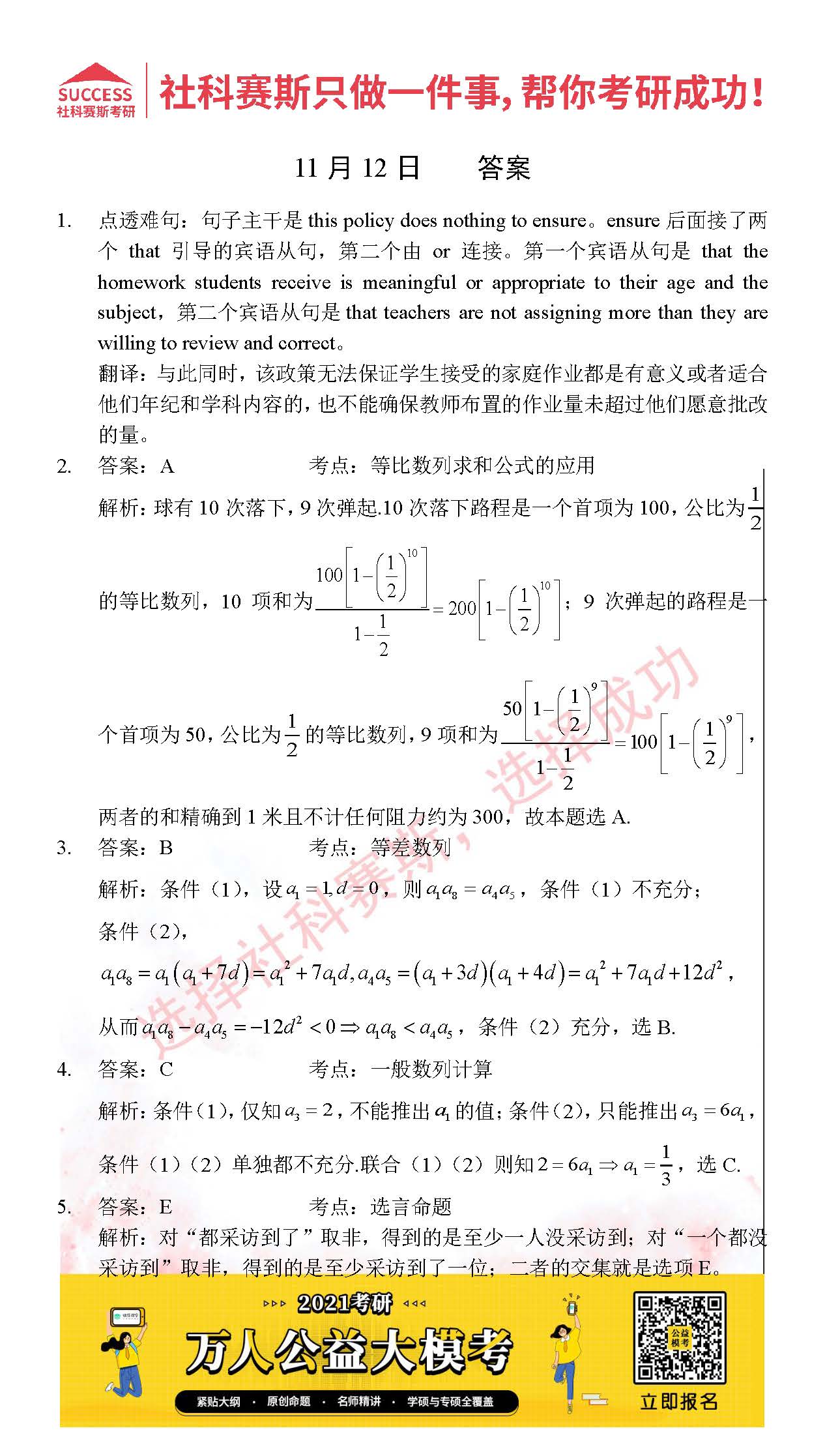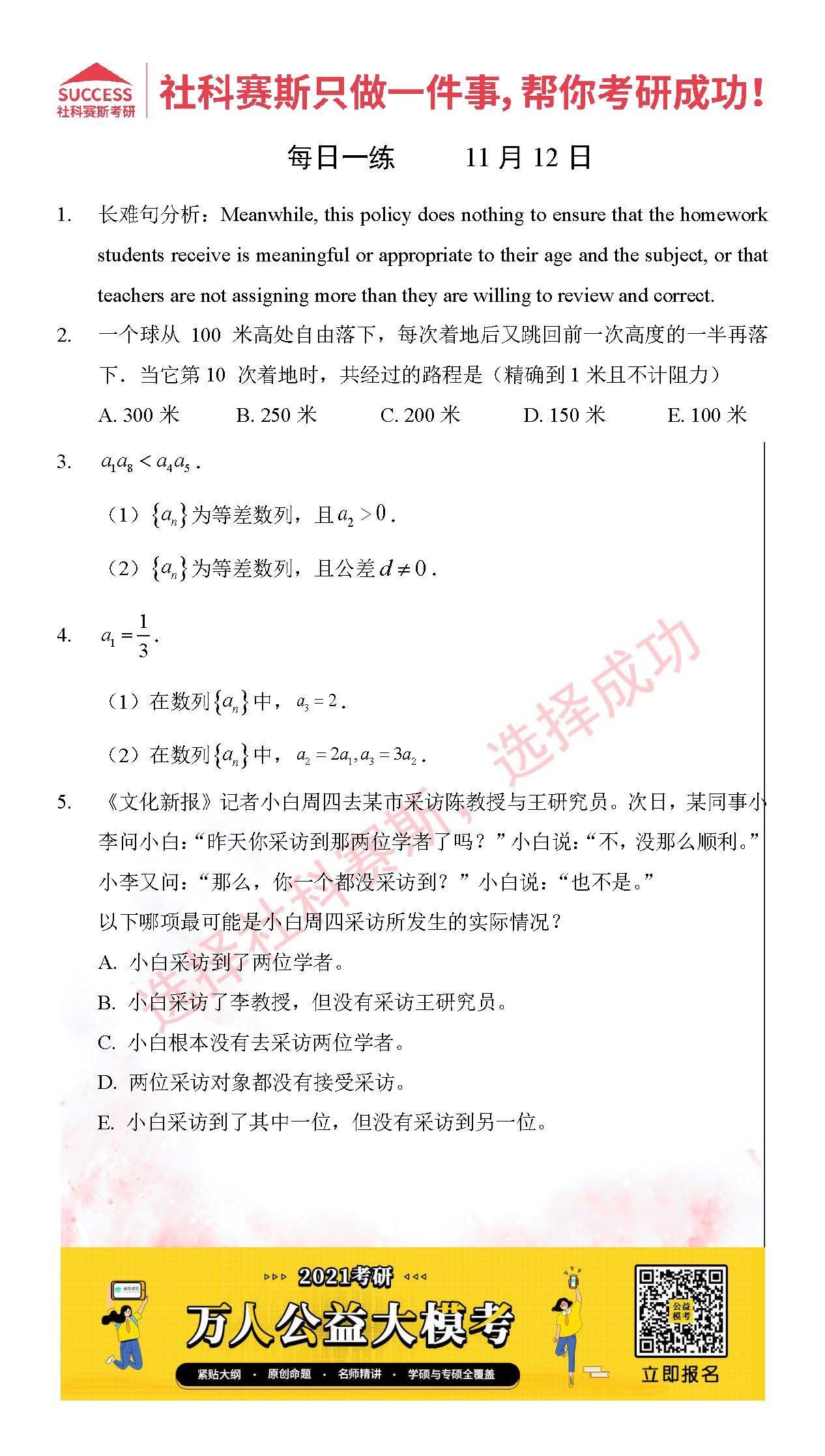 考研是一場持久戰(zhàn),保持良好的學習習慣,是能確保復習高效的關(guān)鍵。今天社科賽斯MBA備考網(wǎng)小編整理了“2021管理類聯(lián)11月12日每日一練及答案”的內(nèi)容,希望能對廣大考生有所幫助。