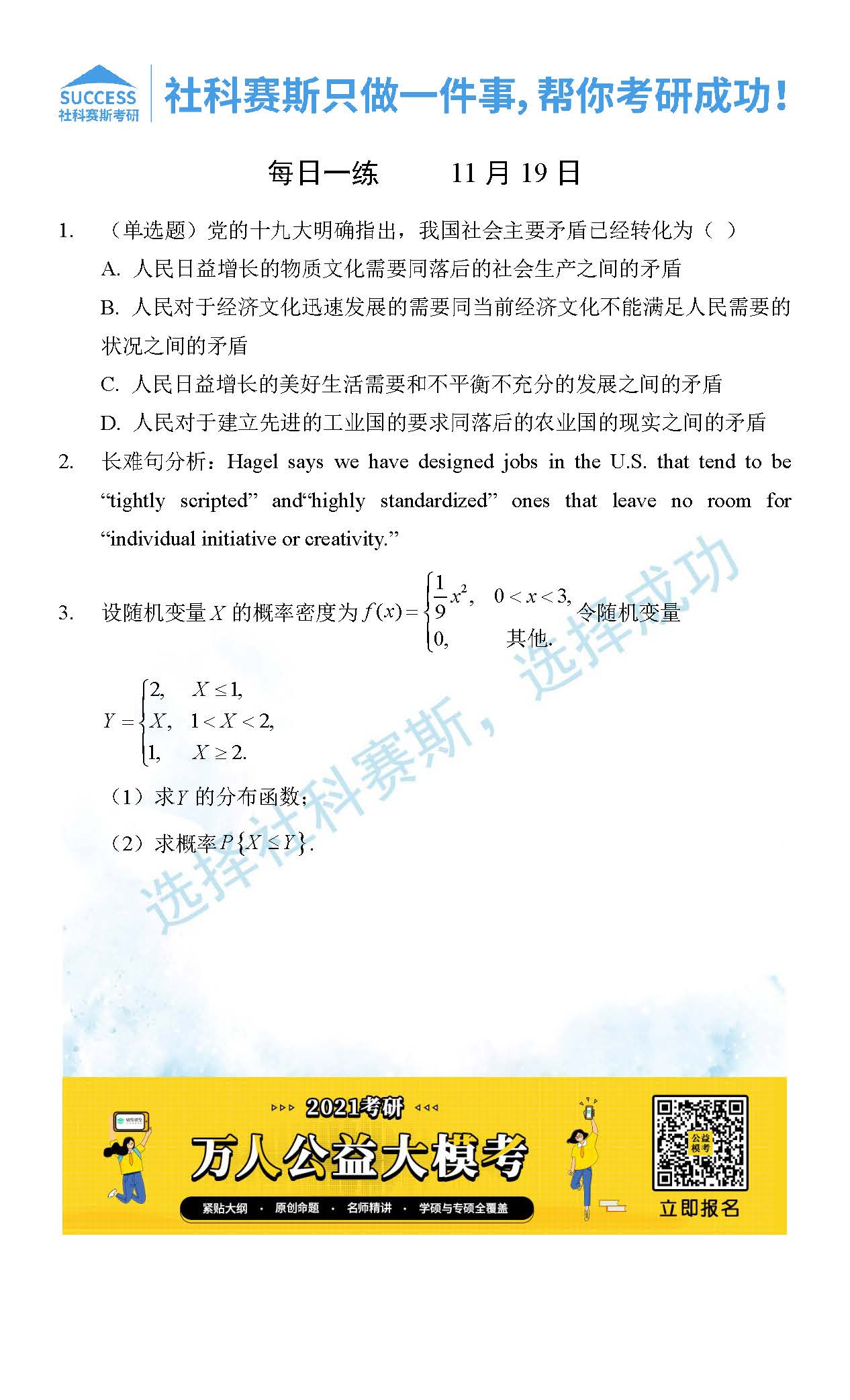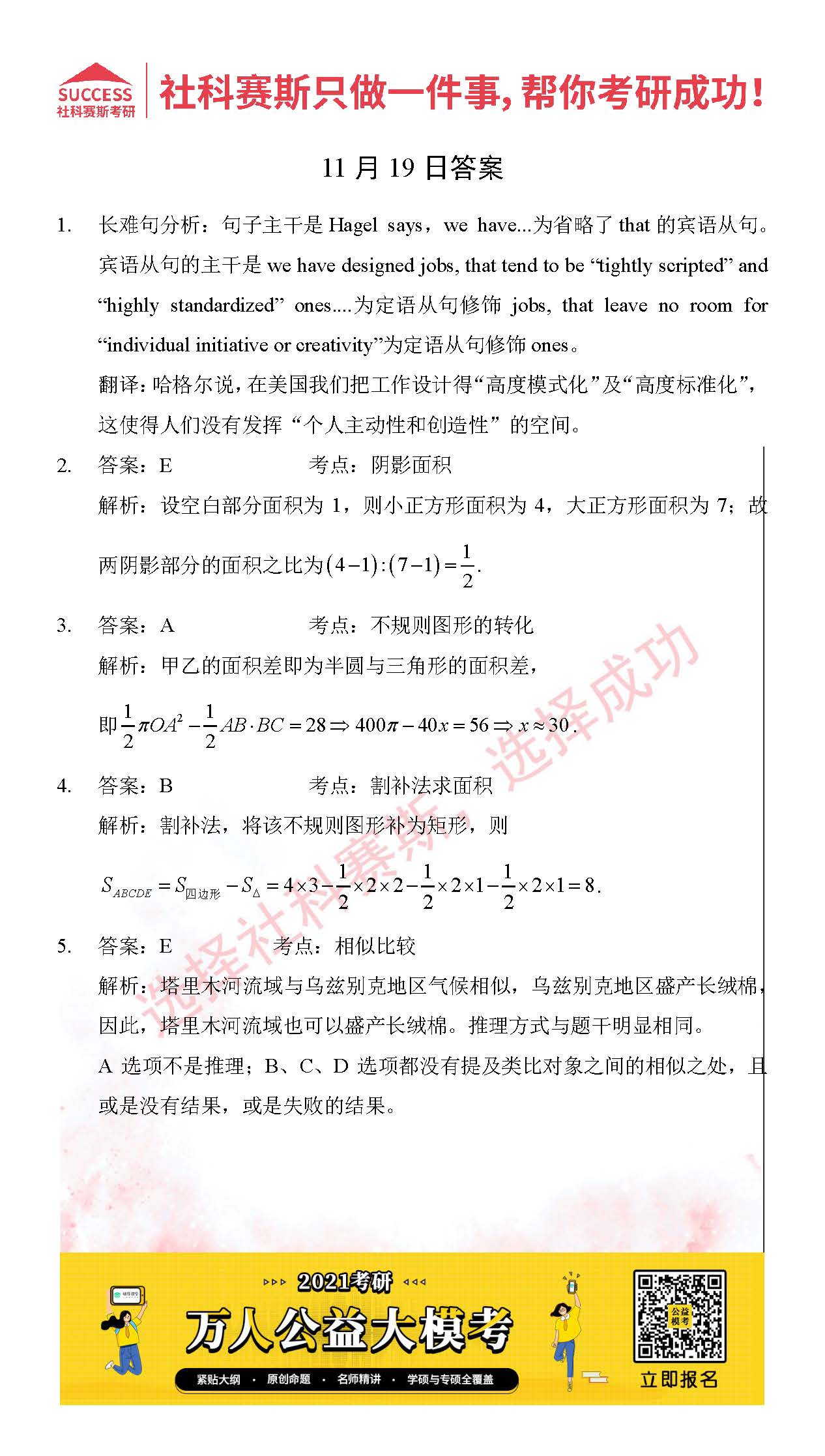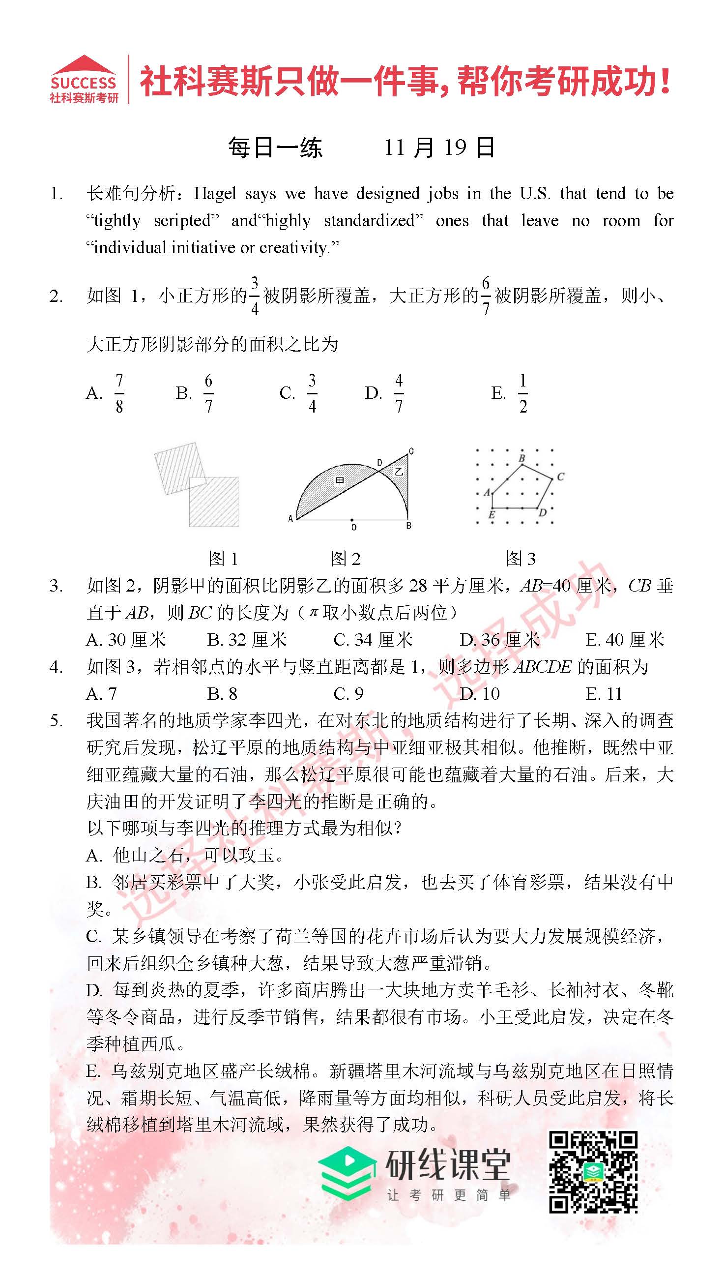 考研是一場持久戰(zhàn),保持良好的學(xué)習(xí)習(xí)慣,是能確保復(fù)習(xí)高效的關(guān)鍵。今天社科賽斯MBA備考網(wǎng)小編整理了“2021管理類聯(lián)11月19日每日一練及答案”的內(nèi)容,希望能對廣大考生有所幫助。