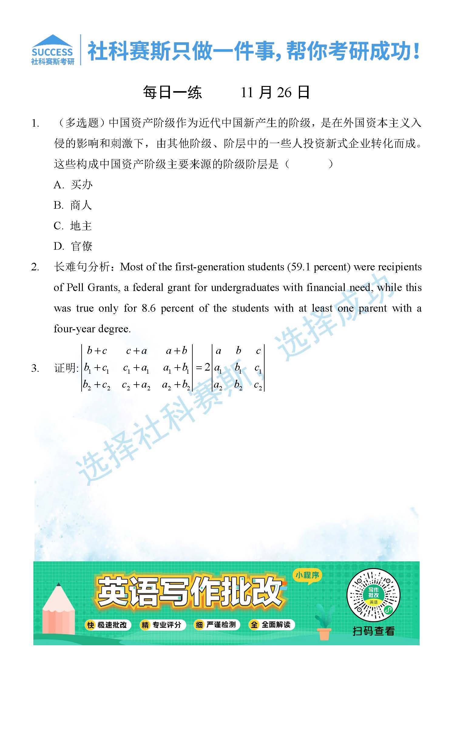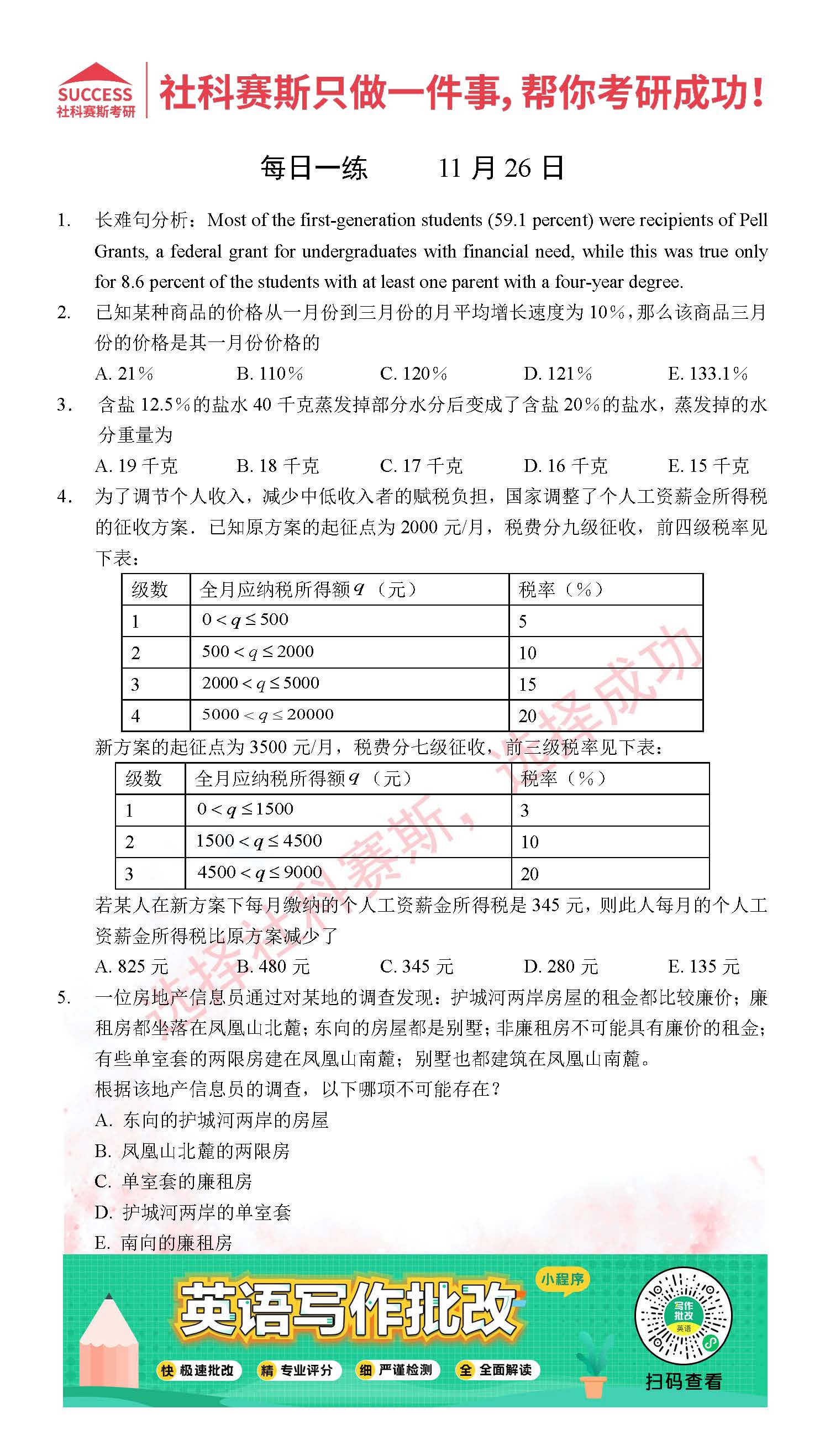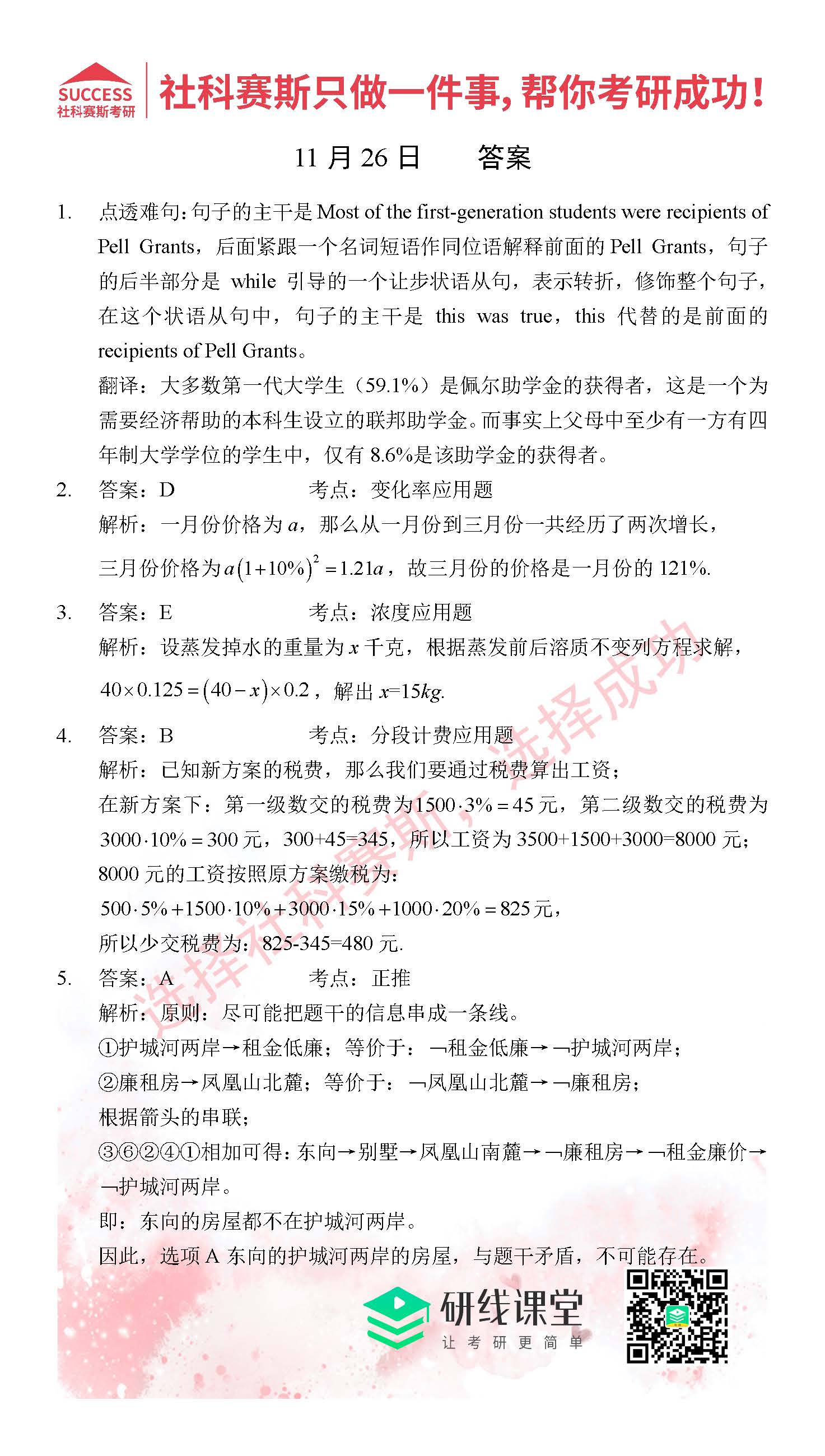 考研是一場(chǎng)持久戰(zhàn),保持良好的學(xué)習(xí)習(xí)慣,是能確保復(fù)習(xí)高效的關(guān)鍵。今天社科賽斯MBA備考網(wǎng)小編整理了“2021管理類聯(lián)11月26日每日一練及答案”的內(nèi)容,希望能對(duì)廣大考生有所幫助。