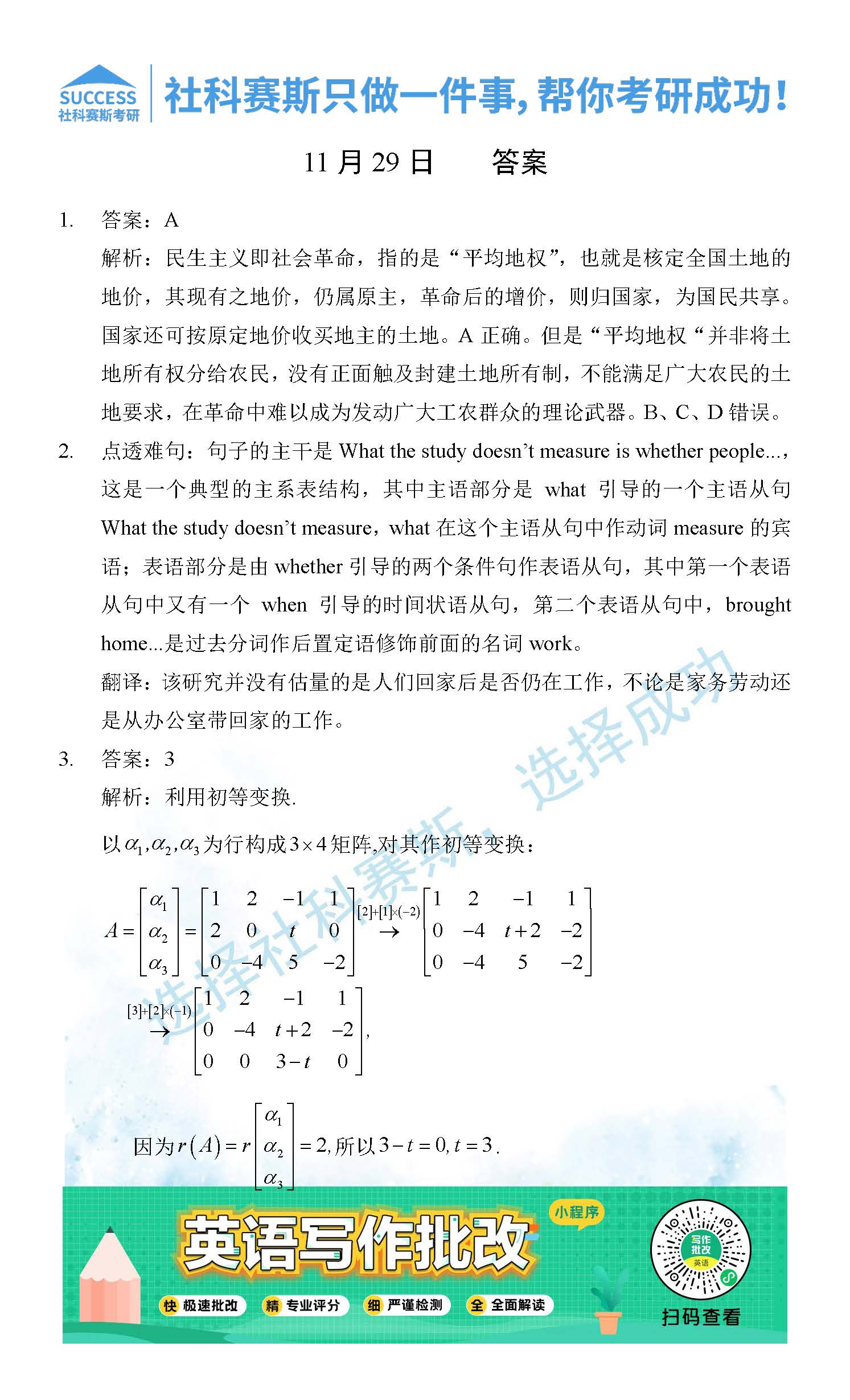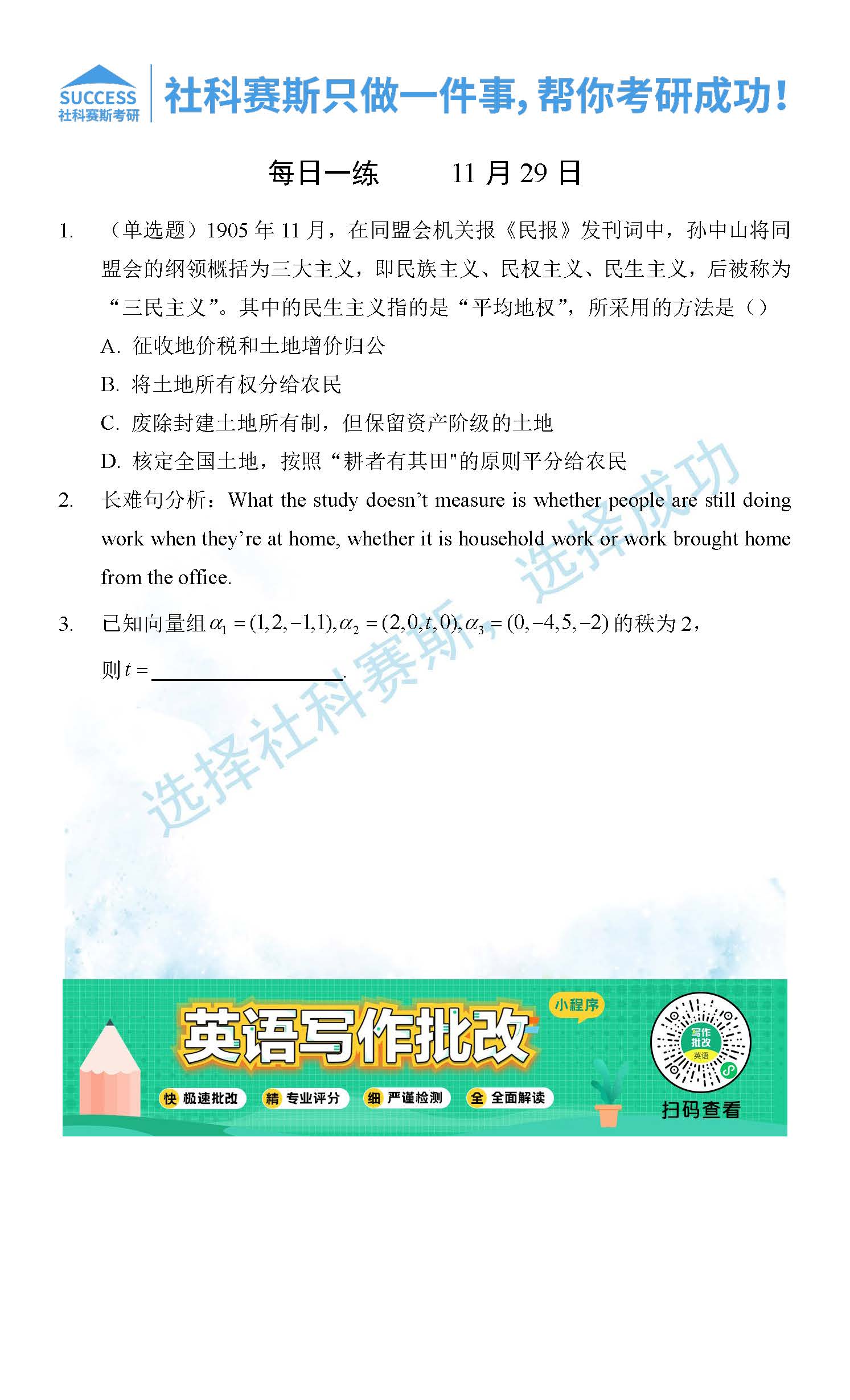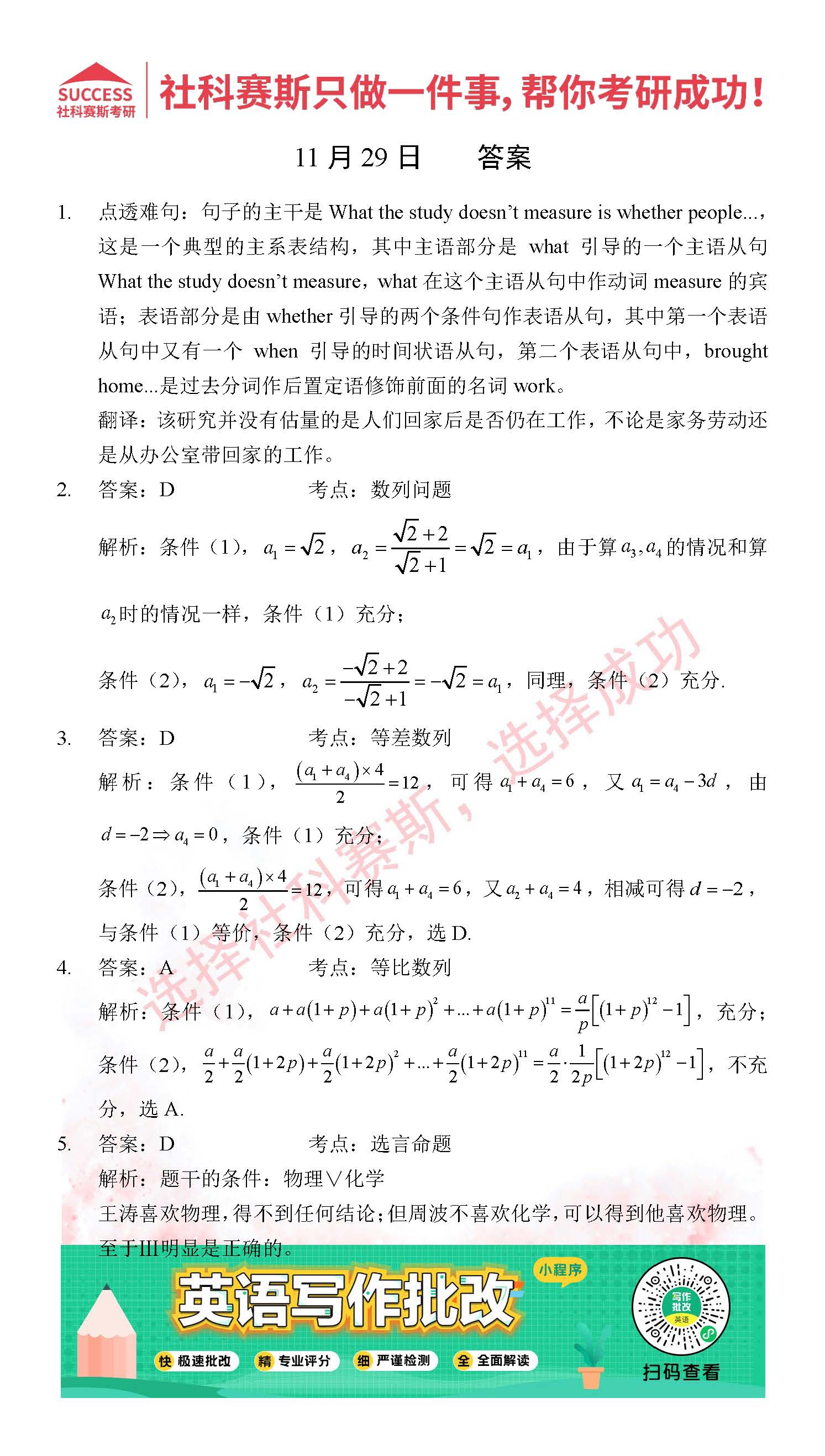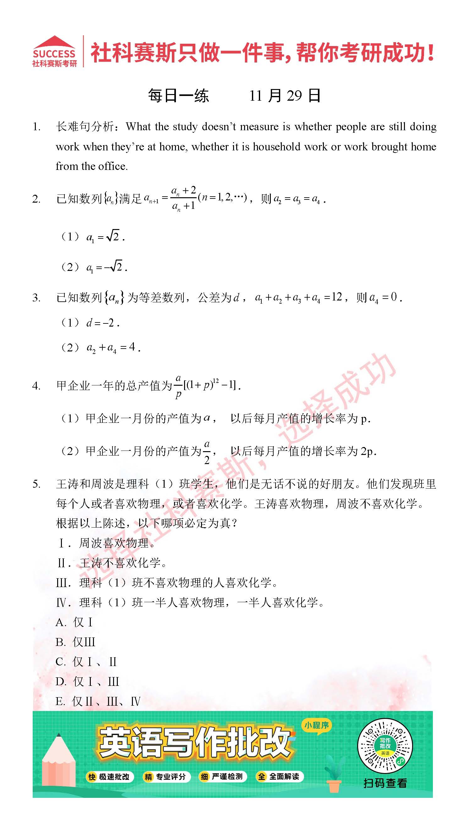 考研是一場持久戰(zhàn),保持良好的學(xué)習(xí)習(xí)慣,是能確保復(fù)習(xí)高效的關(guān)鍵。今天社科賽斯MBA備考網(wǎng)小編整理了“2021管理類聯(lián)11月29日每日一練及答案”的內(nèi)容,希望能對廣大考生有所幫助。
