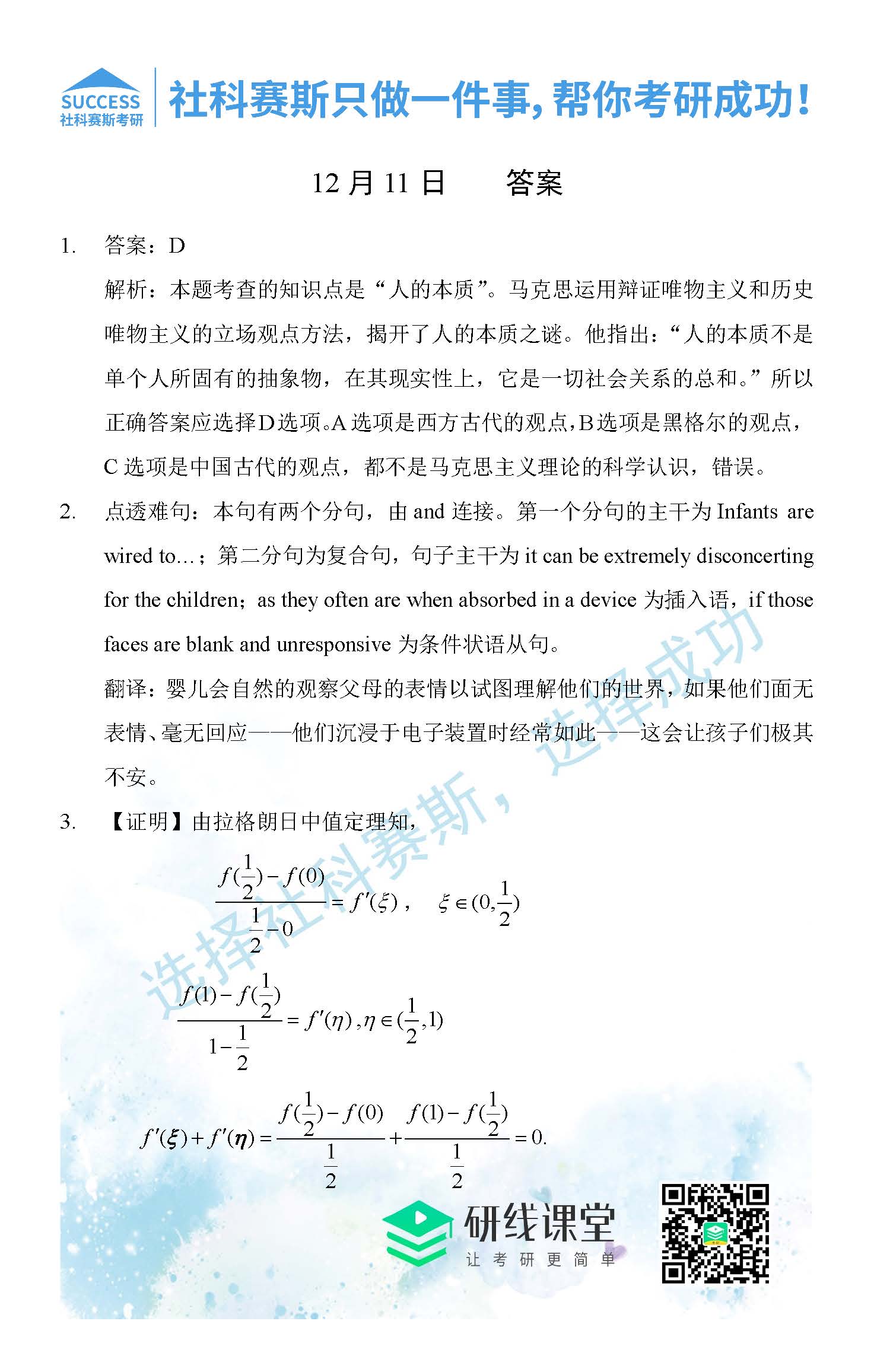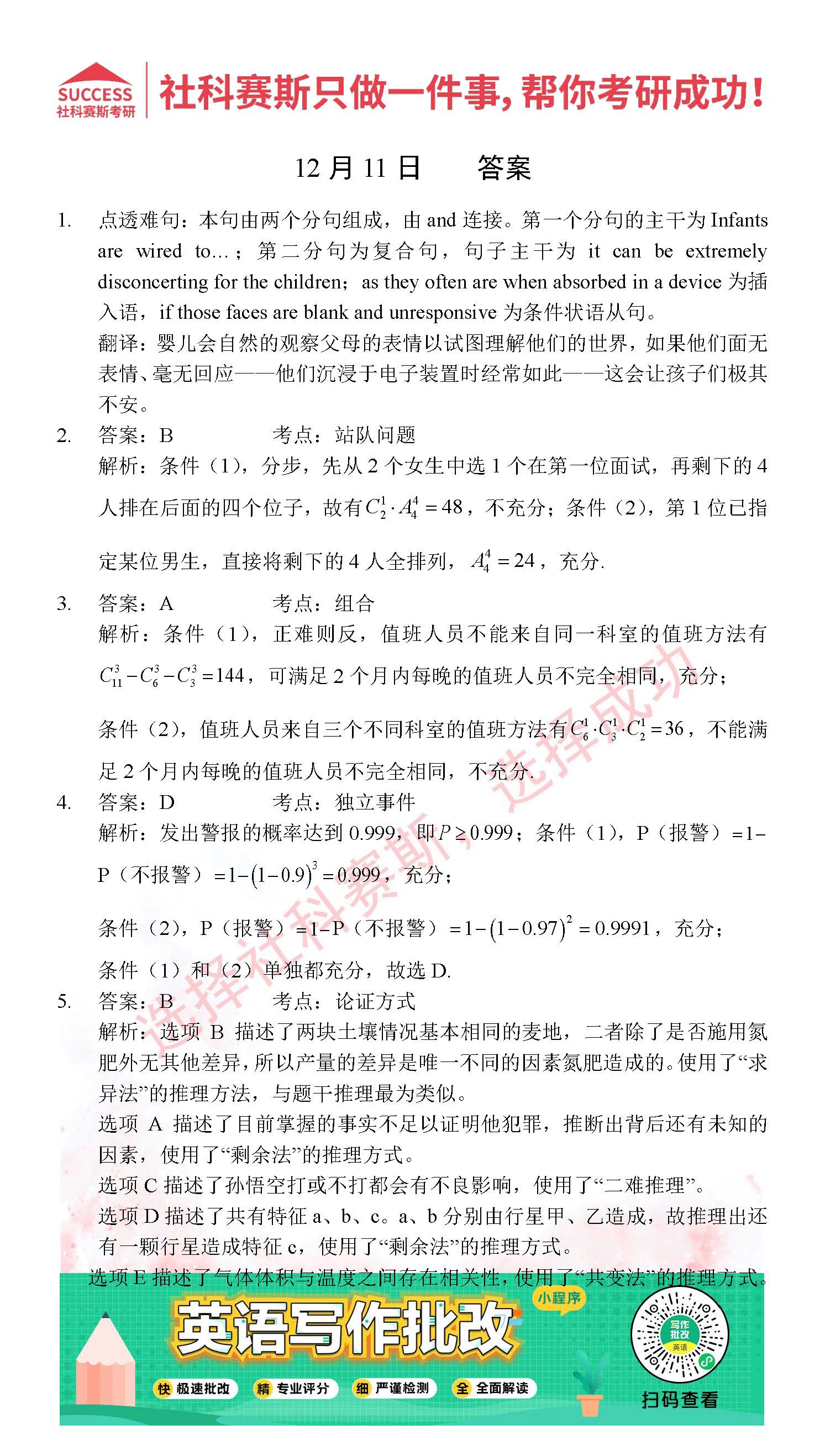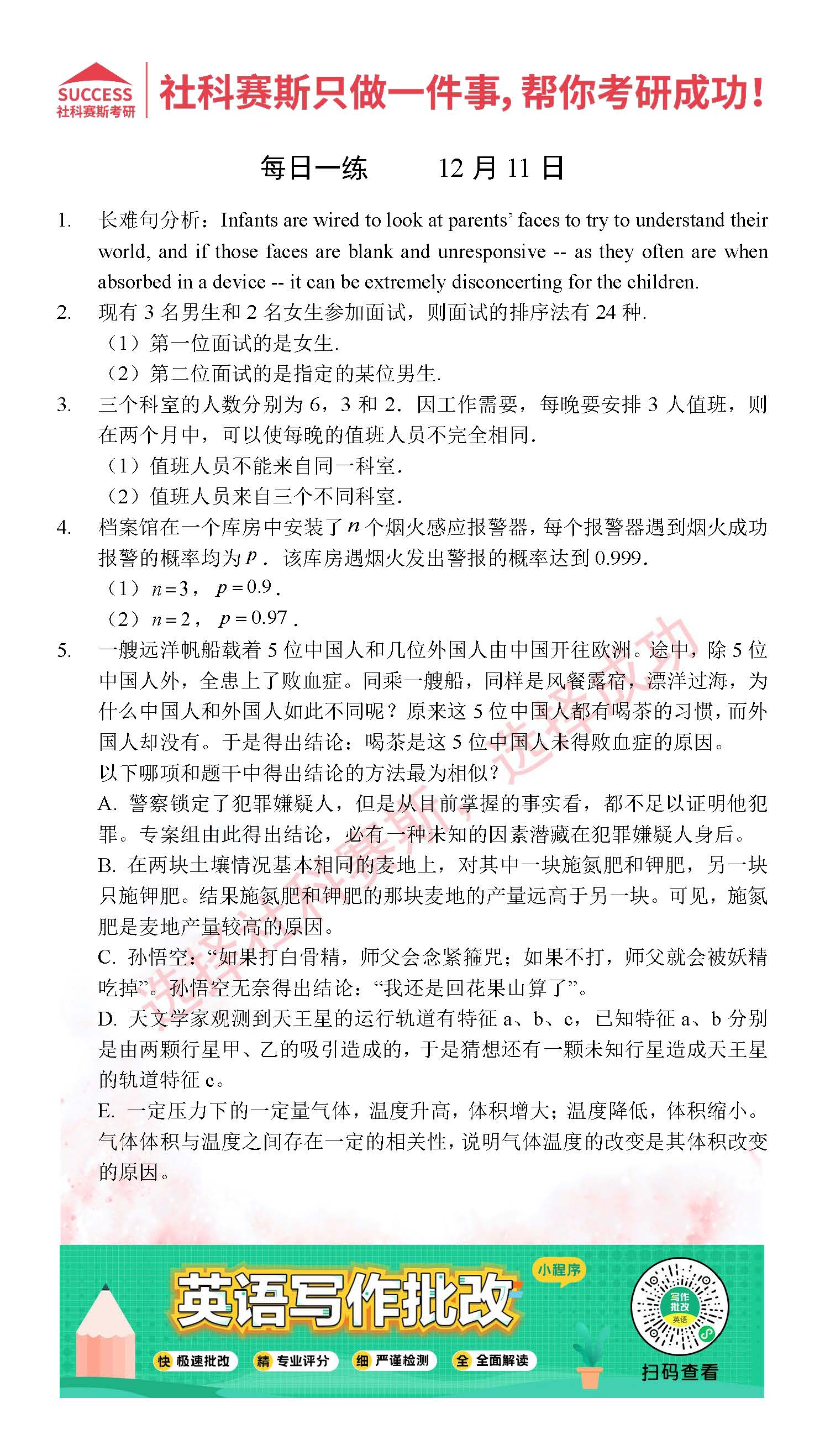 2021管理類聯(lián)考12月11日每日一練及答案”