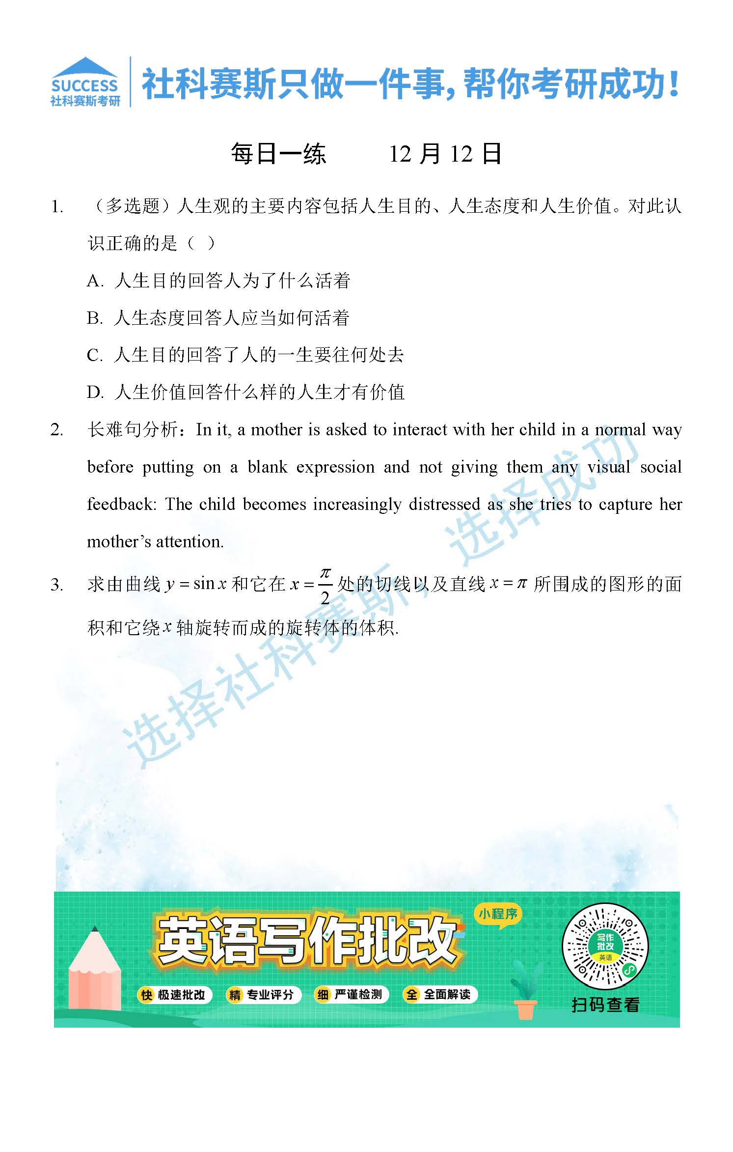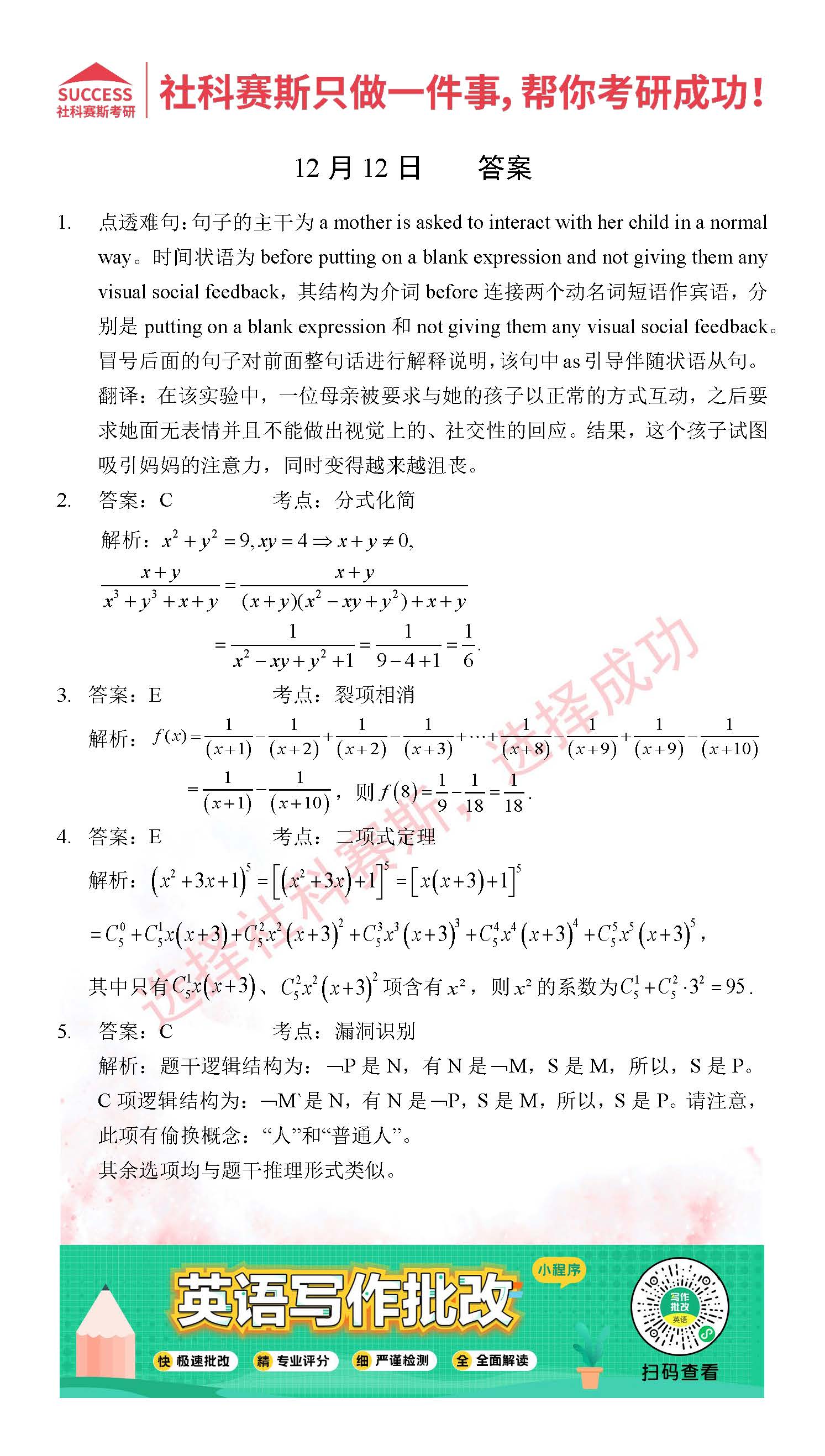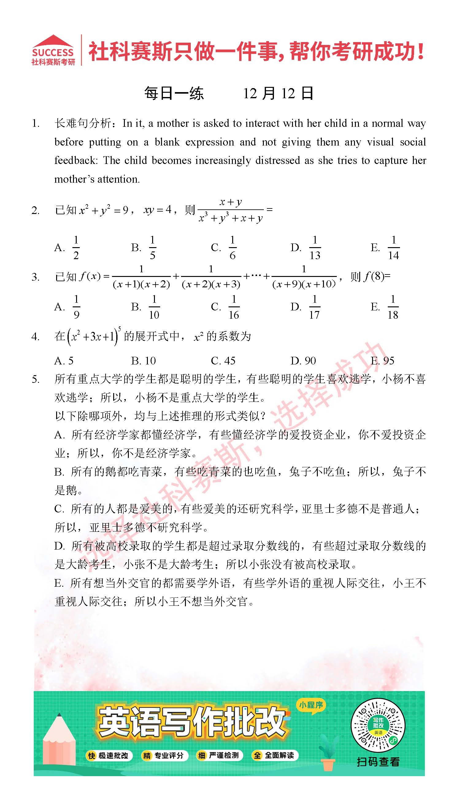 導(dǎo)讀:考研是一場(chǎng)持久戰(zhàn),保持良好的學(xué)習(xí)習(xí)慣,是能確保復(fù)習(xí)高效的關(guān)鍵。今天社科賽斯MBA備考網(wǎng)小編整理了“2021管理類聯(lián)12月12日每日一練及答案”的內(nèi)容,希望能對(duì)廣大考生有所幫助。