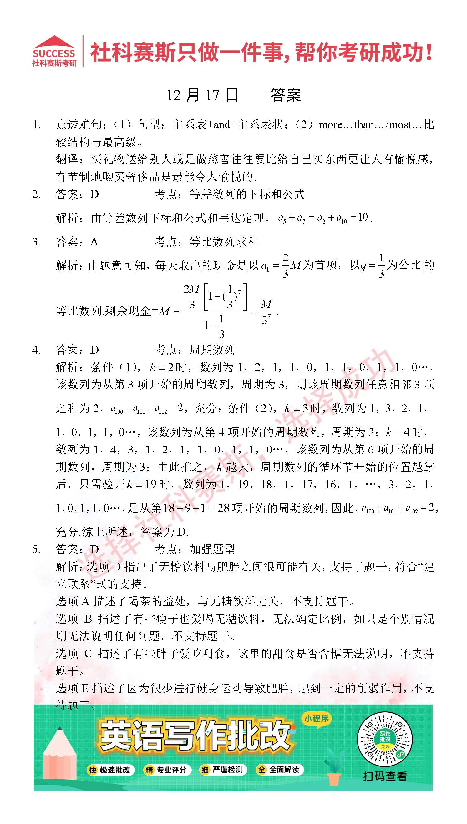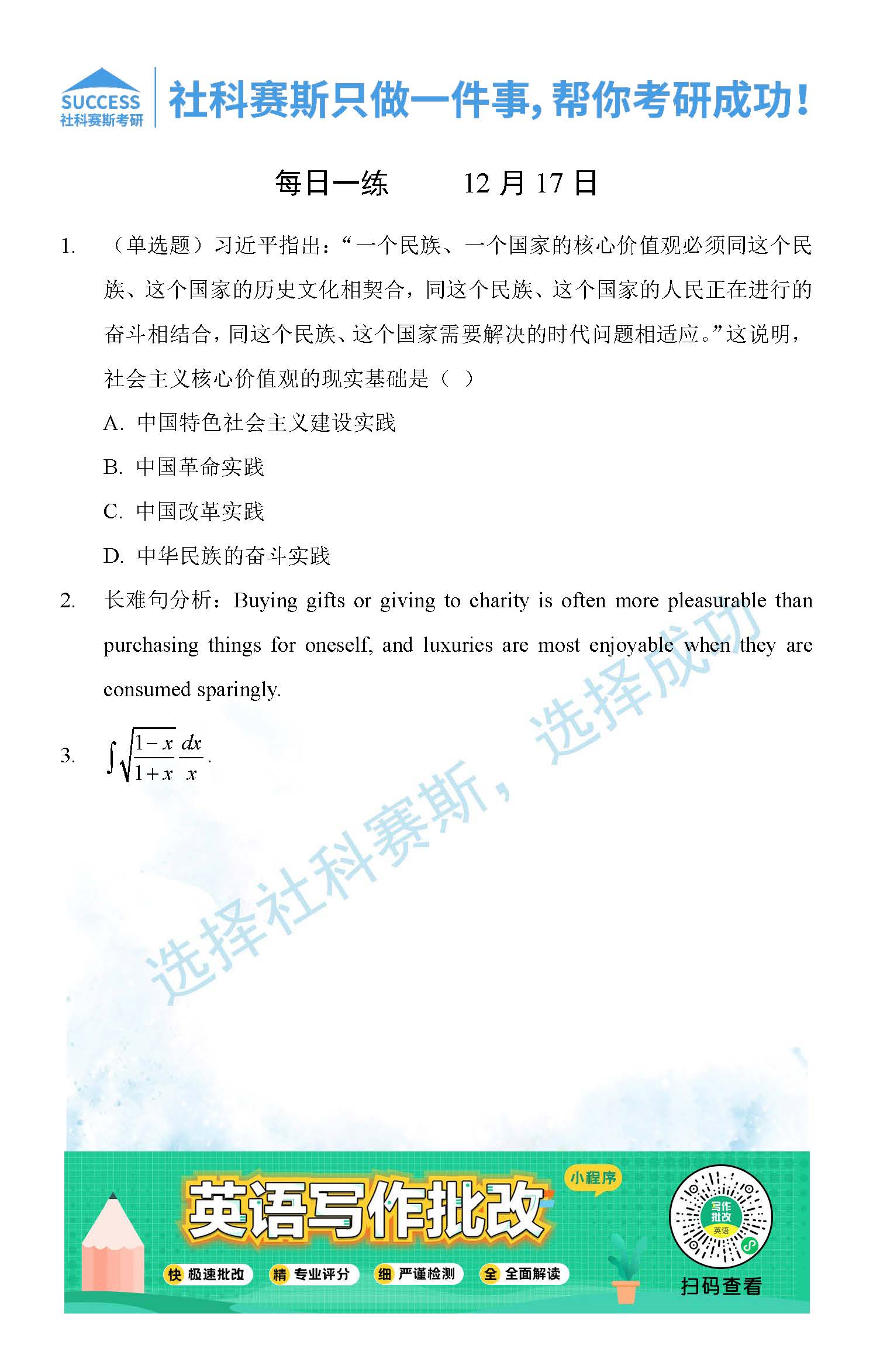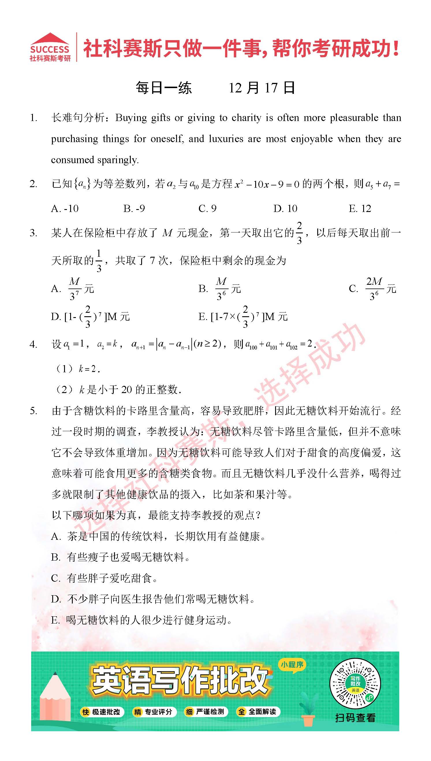 導(dǎo)讀:考研是一場(chǎng)持久戰(zhàn),保持良好的學(xué)習(xí)習(xí)慣,是能確保復(fù)習(xí)高效的關(guān)鍵。今天社科賽斯MBA備考網(wǎng)小編整理了“2021管理類聯(lián)12月17日每日一練及答案”的內(nèi)容,希望能對(duì)廣大考生有所幫助。