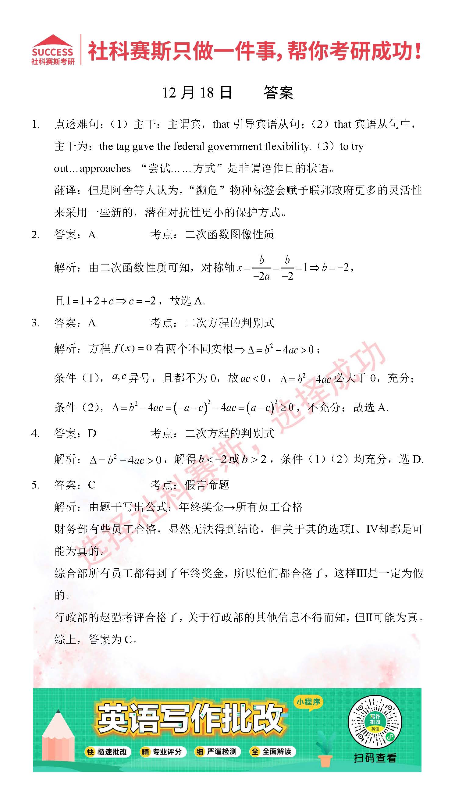 首頁> 管理類聯(lián)考每日一練 > 2021管理類聯(lián)考12月18日每日一練及答案