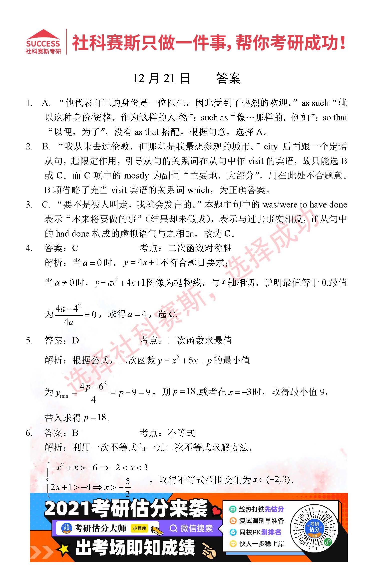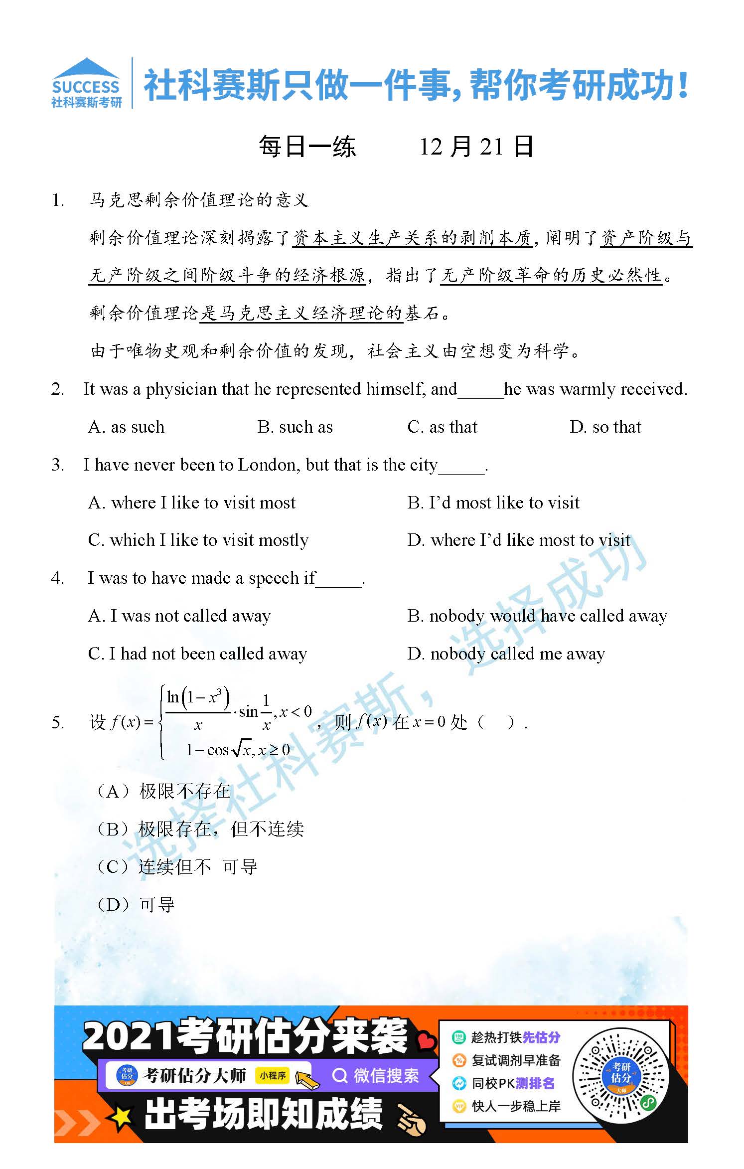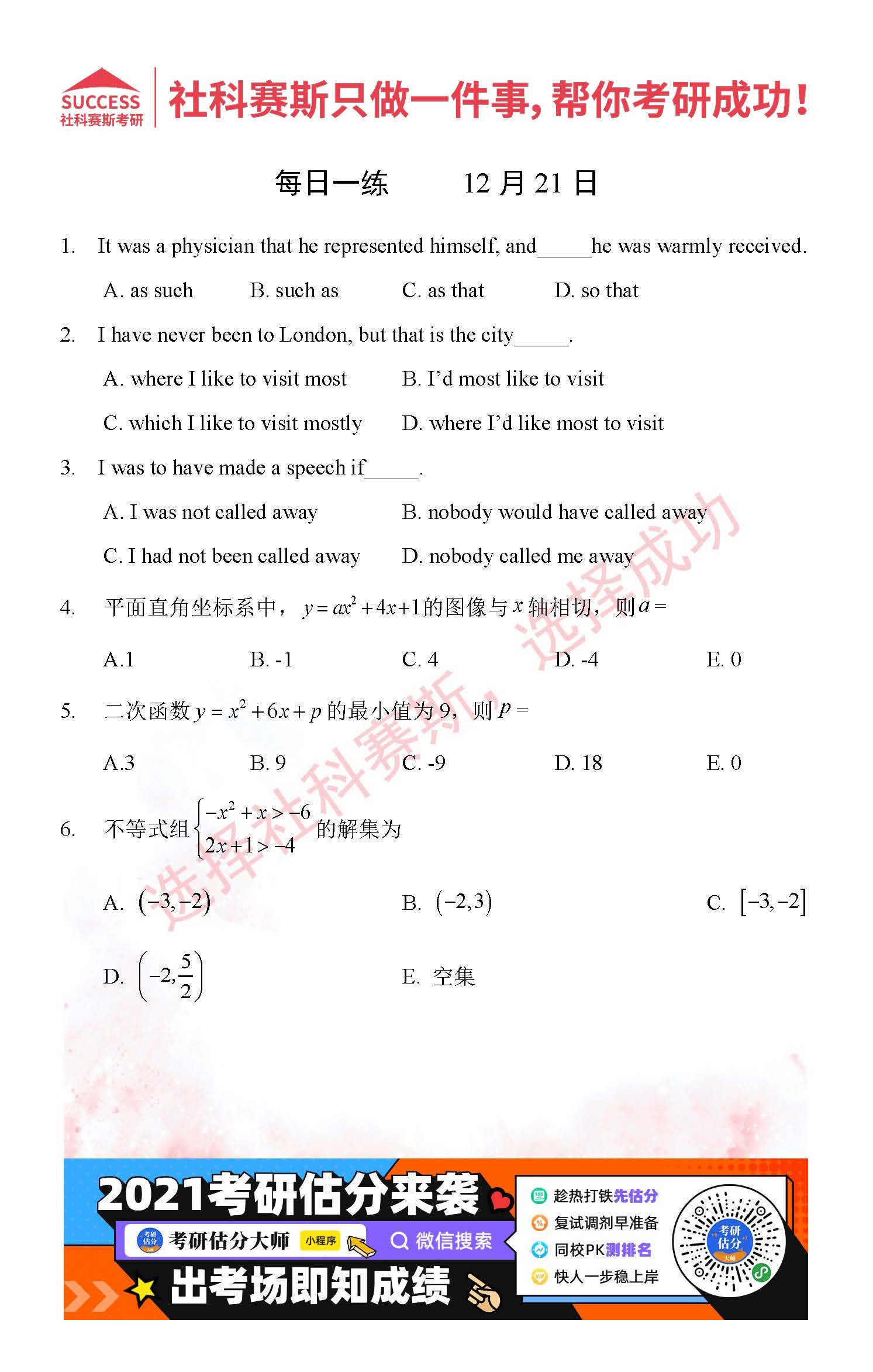 首頁> 管理類聯(lián)考每日一練 > 2021管理類聯(lián)考12月21日每日一練及答案