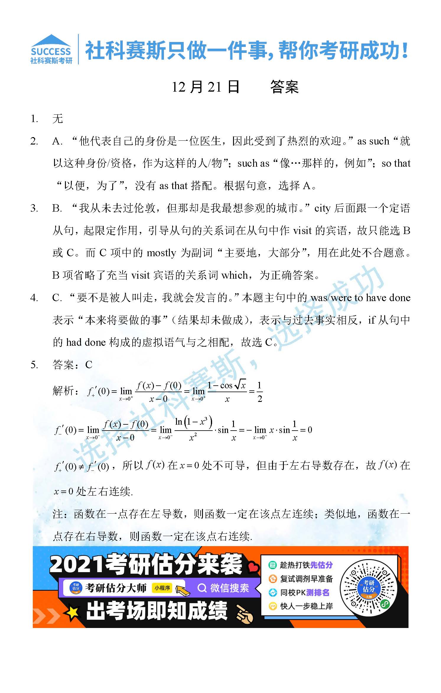 導(dǎo)讀:考研是一場持久戰(zhàn),保持良好的學(xué)習(xí)習(xí)慣,是能確保復(fù)習(xí)高效的關(guān)鍵。今天社科賽斯MBA備考網(wǎng)小編整理了“2021管理類聯(lián)12月21日每日一練及答案”的內(nèi)容,希望能對廣大考生有所幫助。