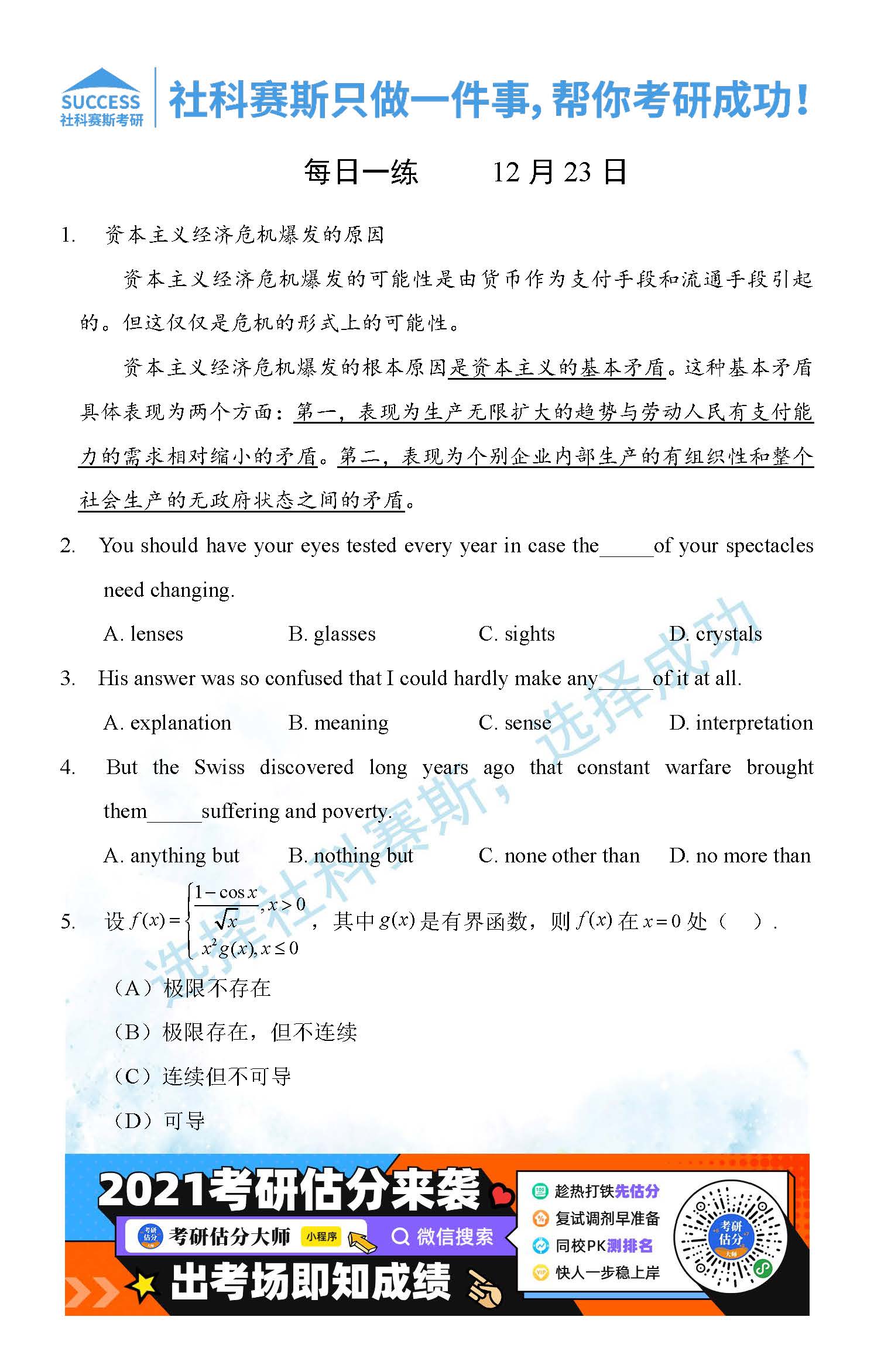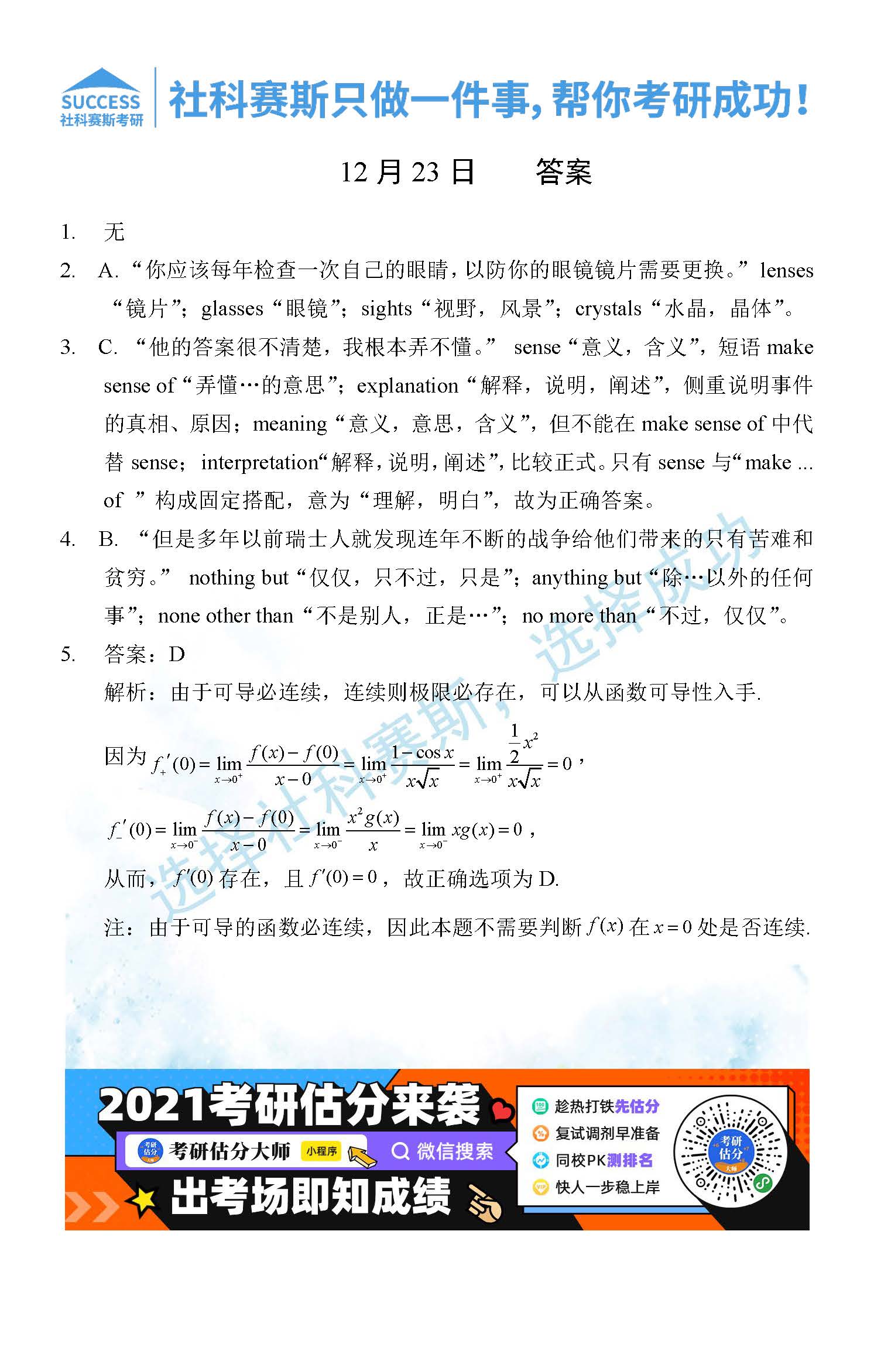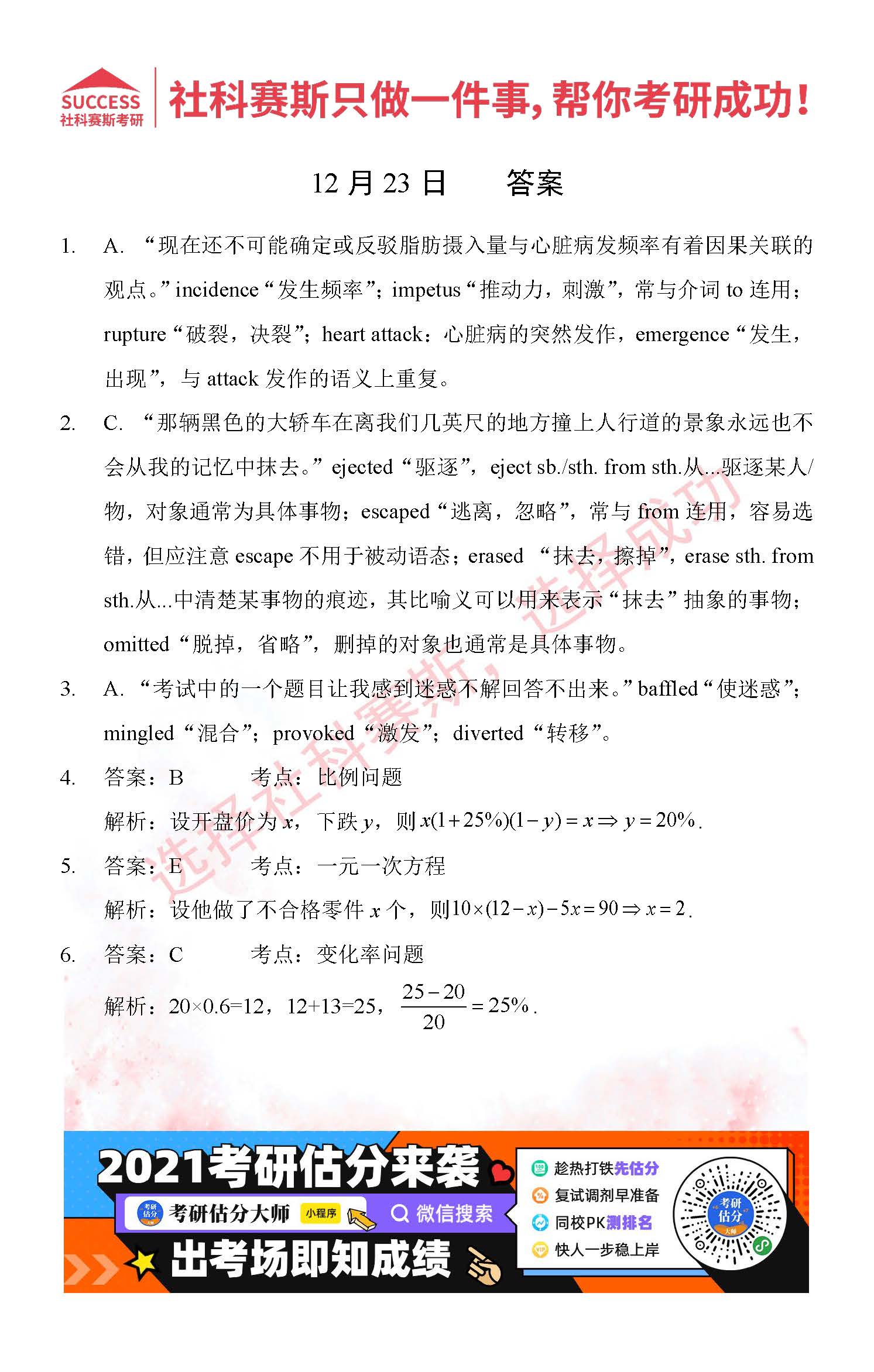 導(dǎo)讀:考研是一場(chǎng)持久戰(zhàn),保持良好的學(xué)習(xí)習(xí)慣,是能確保復(fù)習(xí)高效的關(guān)鍵。今天社科賽斯MBA備考網(wǎng)小編整理了“2021管理類聯(lián)12月23日每日一練及答案”的內(nèi)容,希望能對(duì)廣大考生有所幫助。