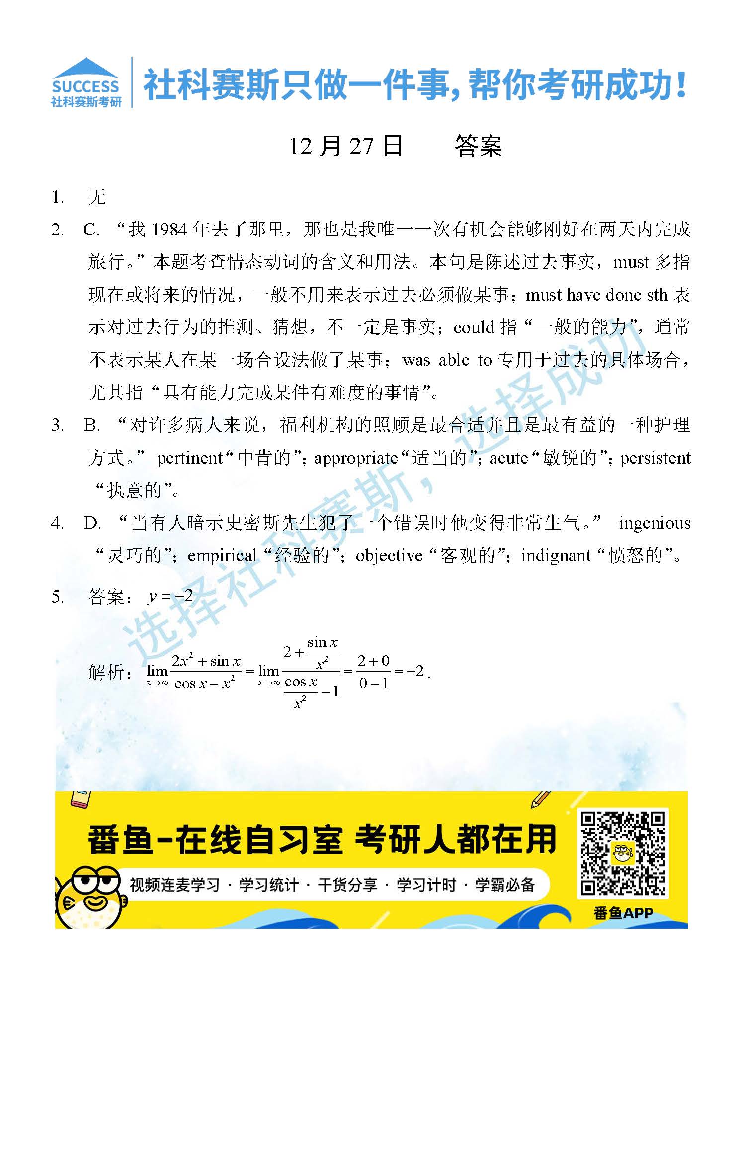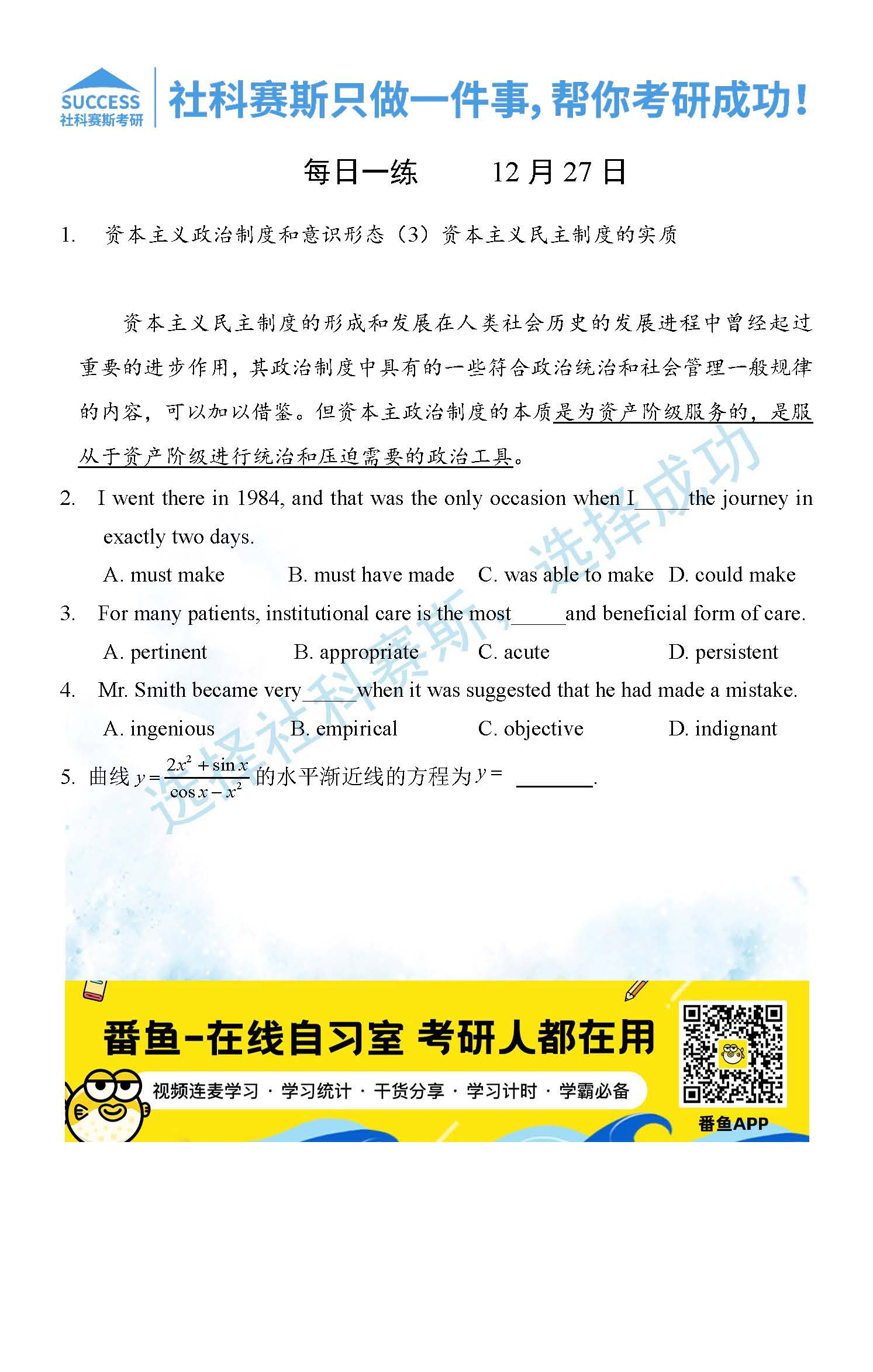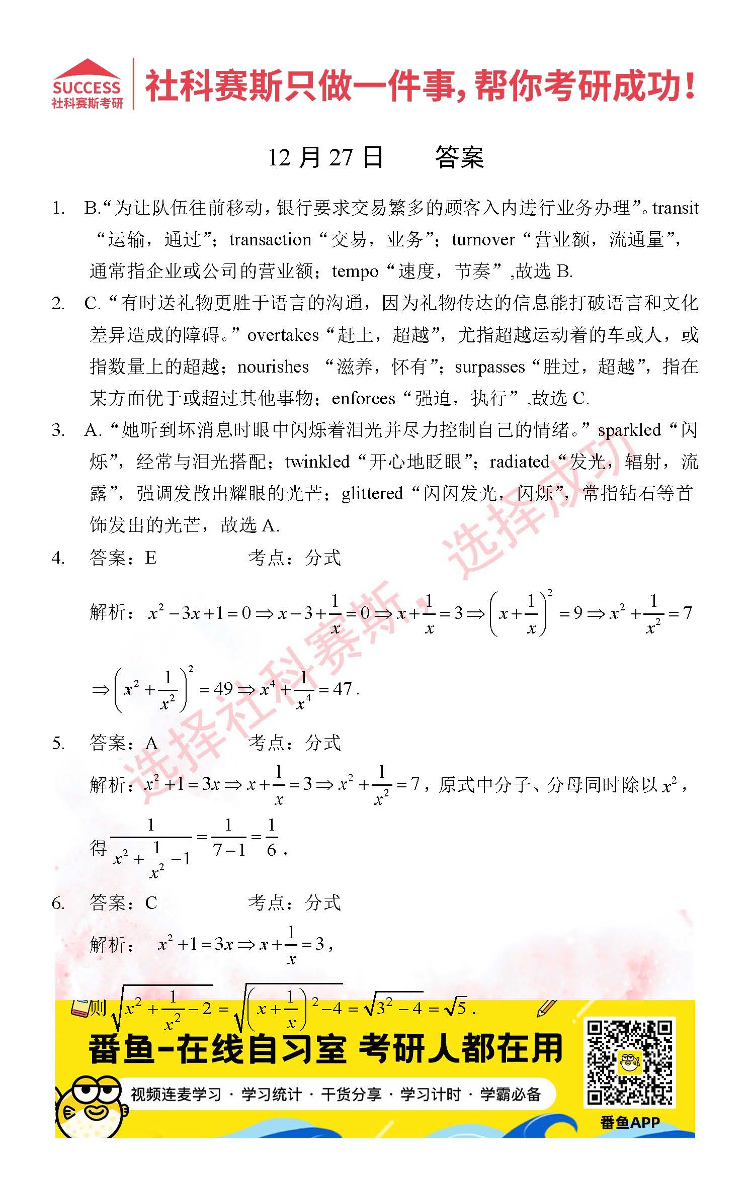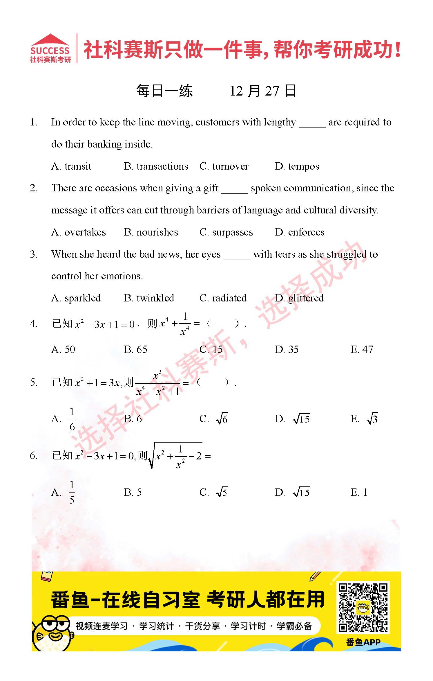 2021管理類聯(lián)考12月27日每日一練及答案”
