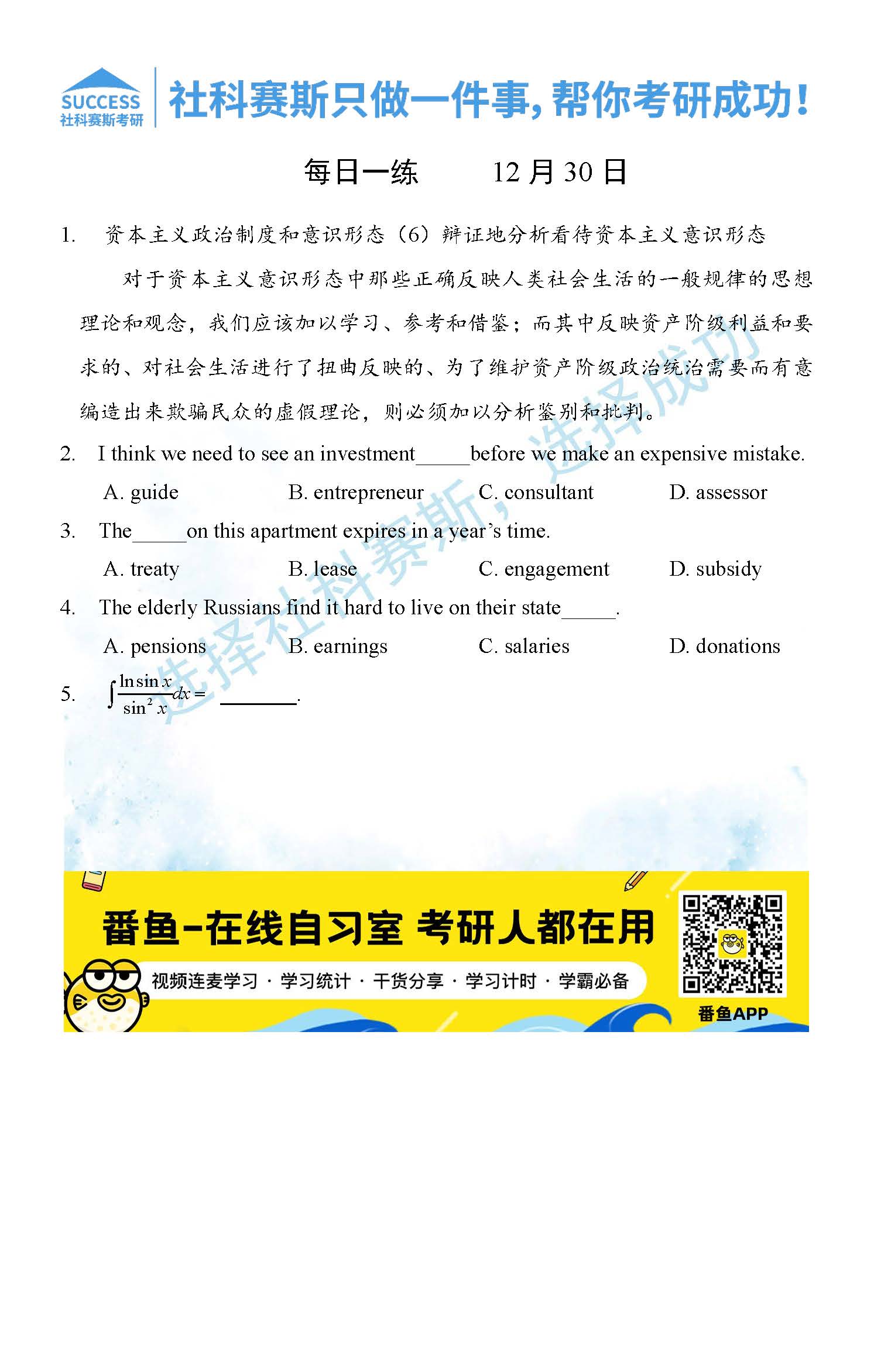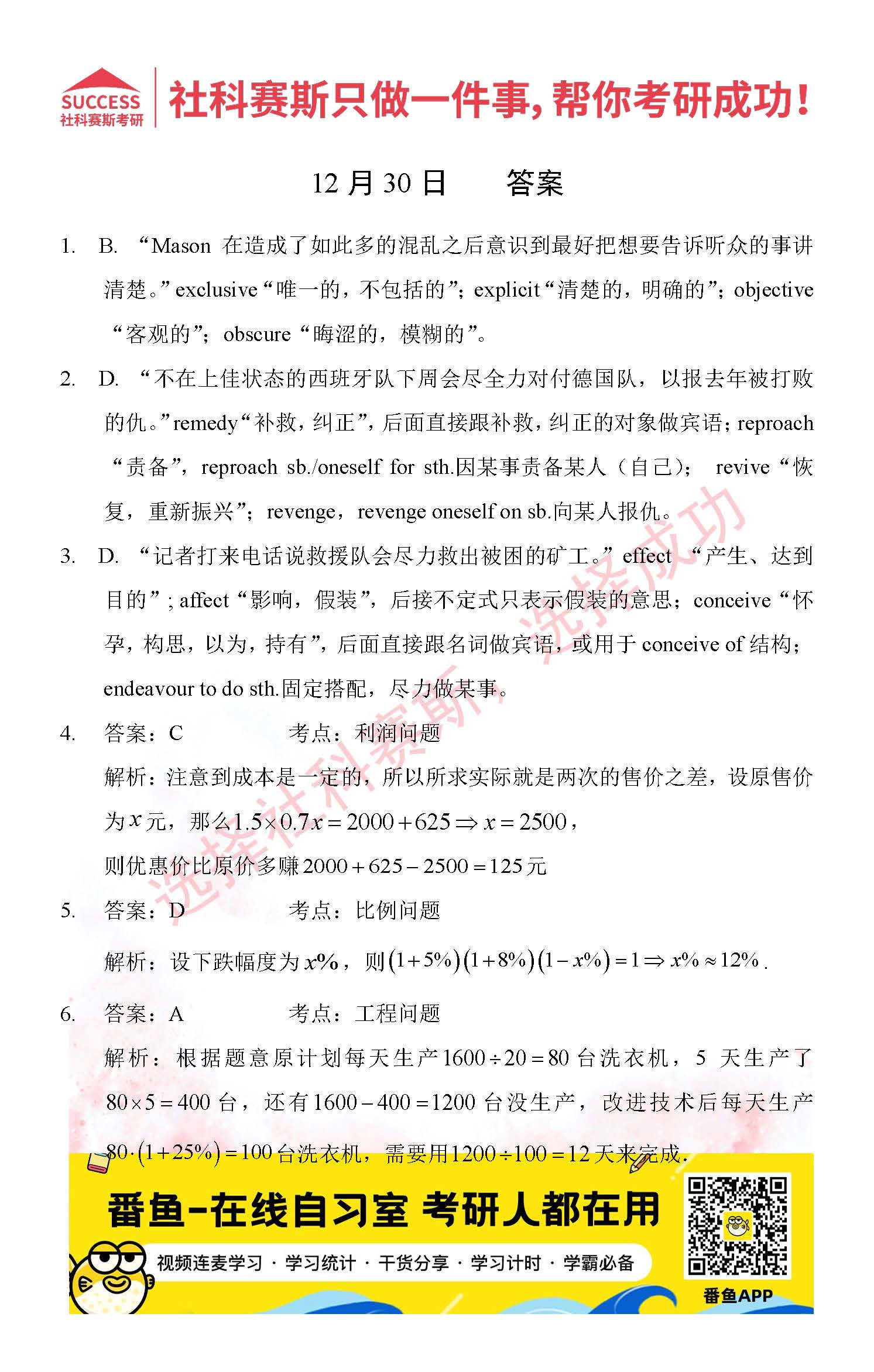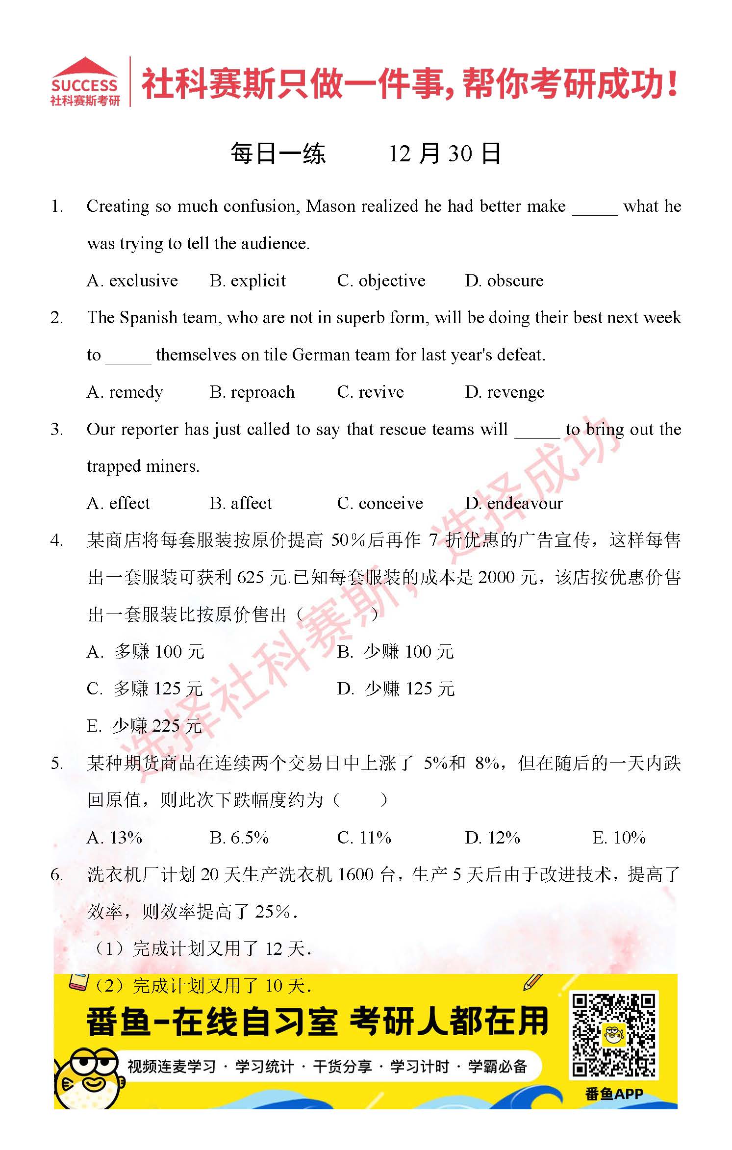 導讀:考研是一場持久戰(zhàn),保持良好的學習習慣,是能確保復習高效的關鍵。今天社科賽斯MBA備考網(wǎng)小編整理了“2021管理類聯(lián)12月30日每日一練及答案”的內(nèi)容,希望能對廣大考生有所幫助。