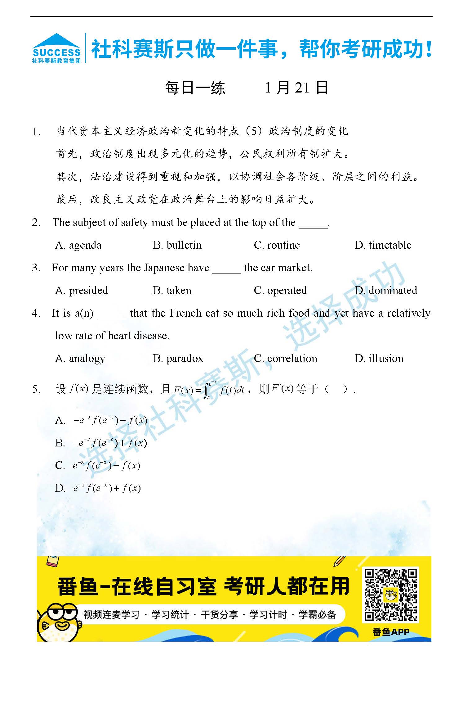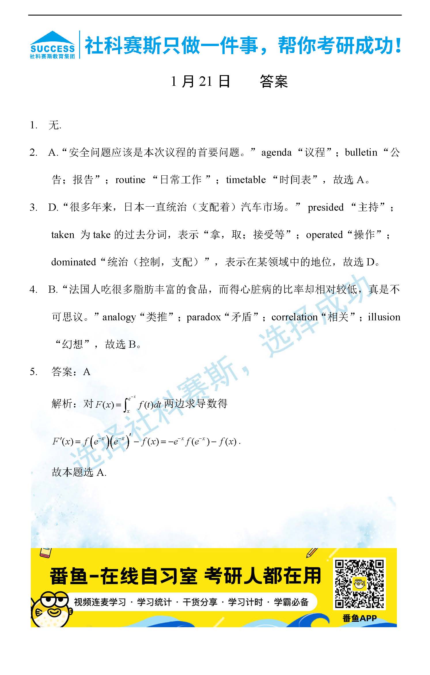 首頁> 管理類聯(lián)考每日一練 > 2022管理類聯(lián)考1月21日每日一練及答案