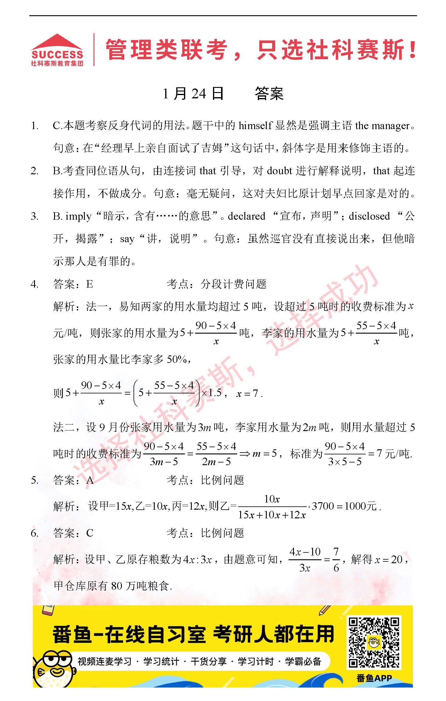 導(dǎo)讀:考研是一場(chǎng)持久戰(zhàn),保持良好的學(xué)習(xí)習(xí)慣,是能確保復(fù)習(xí)高效的關(guān)鍵。今天社科賽斯MBA備考網(wǎng)小編整理了“2022管理類(lèi)聯(lián)1月24日每日一練及答案”的內(nèi)容,希望能對(duì)廣大考生有所幫助。