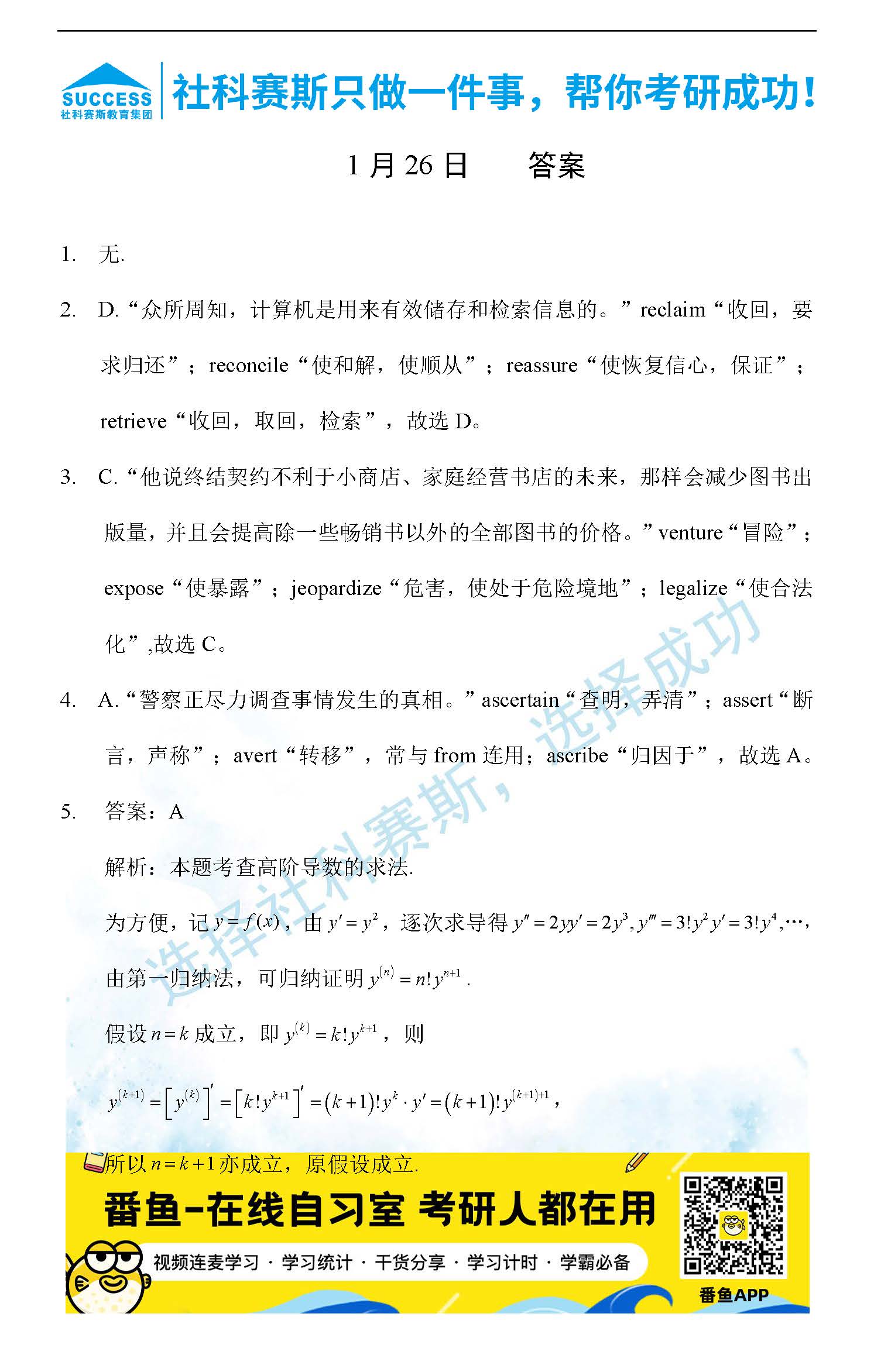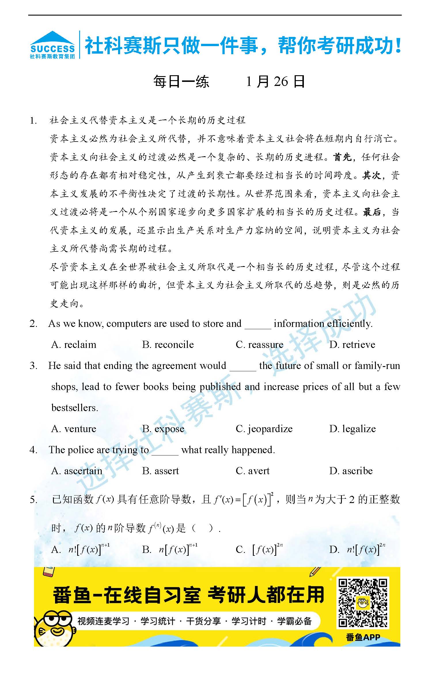 首頁> 管理類聯(lián)考每日一練 > 2022管理類聯(lián)考1月26日每日一練及答案