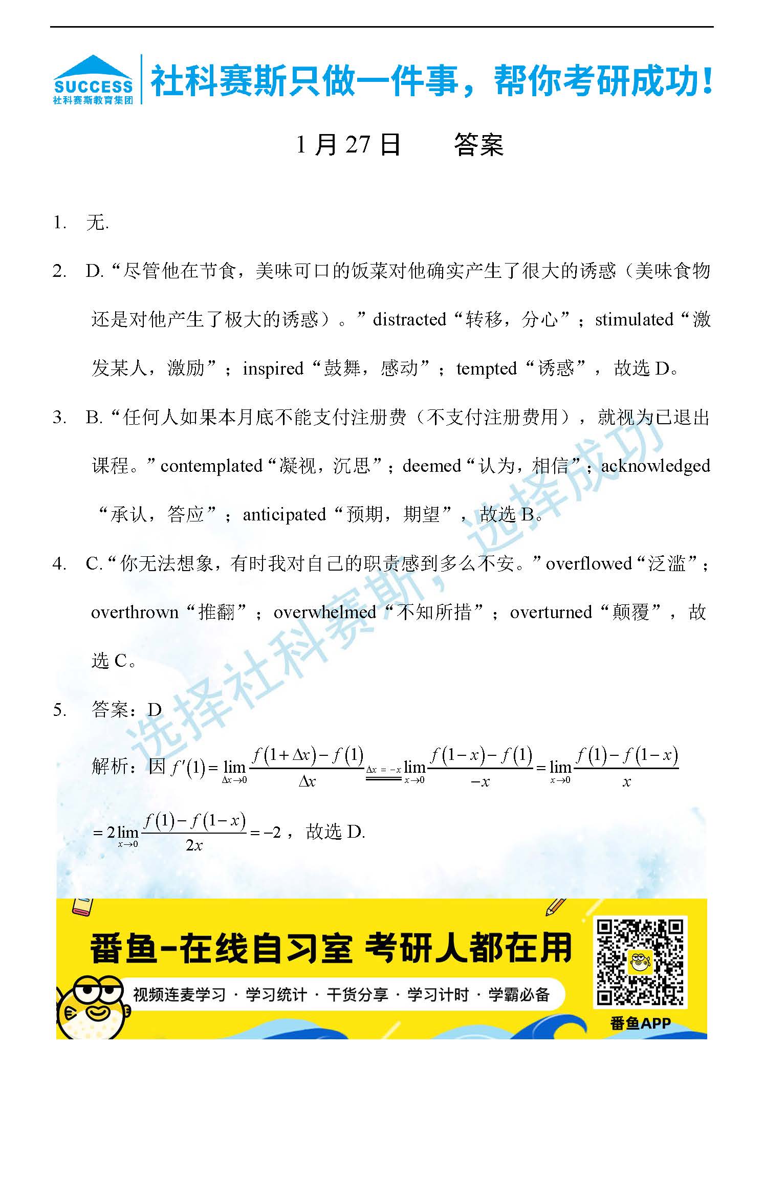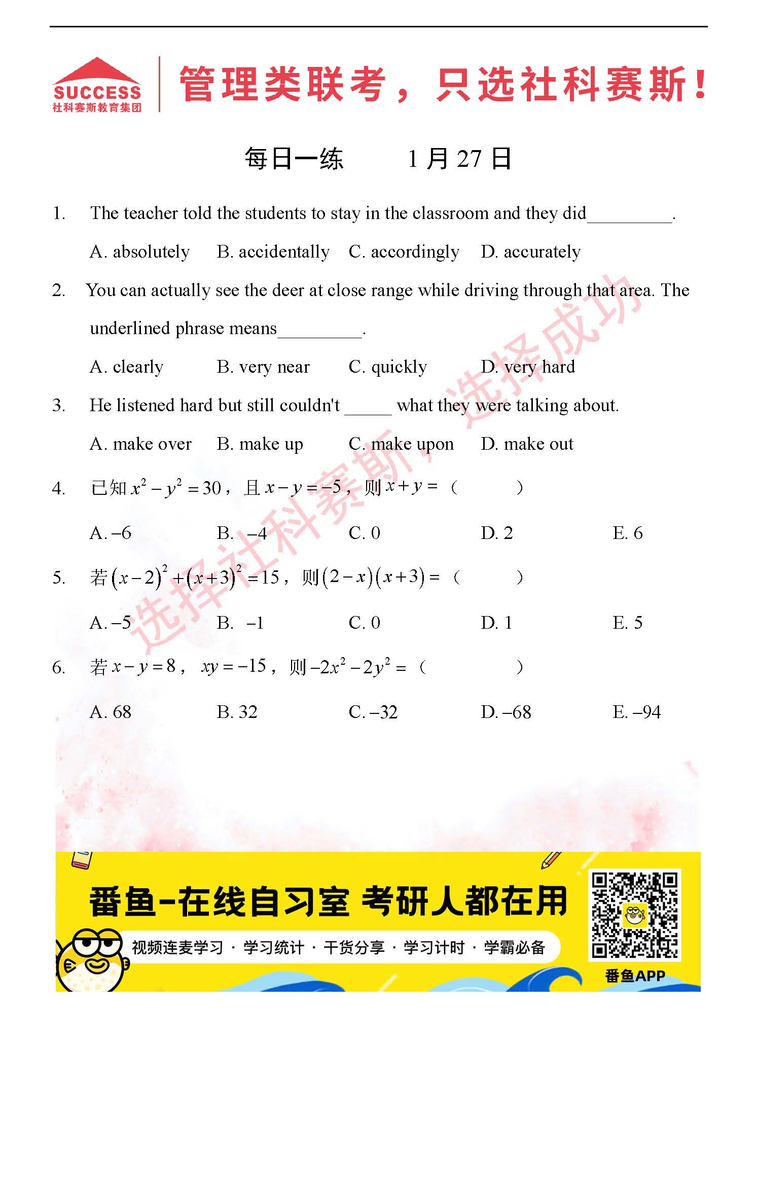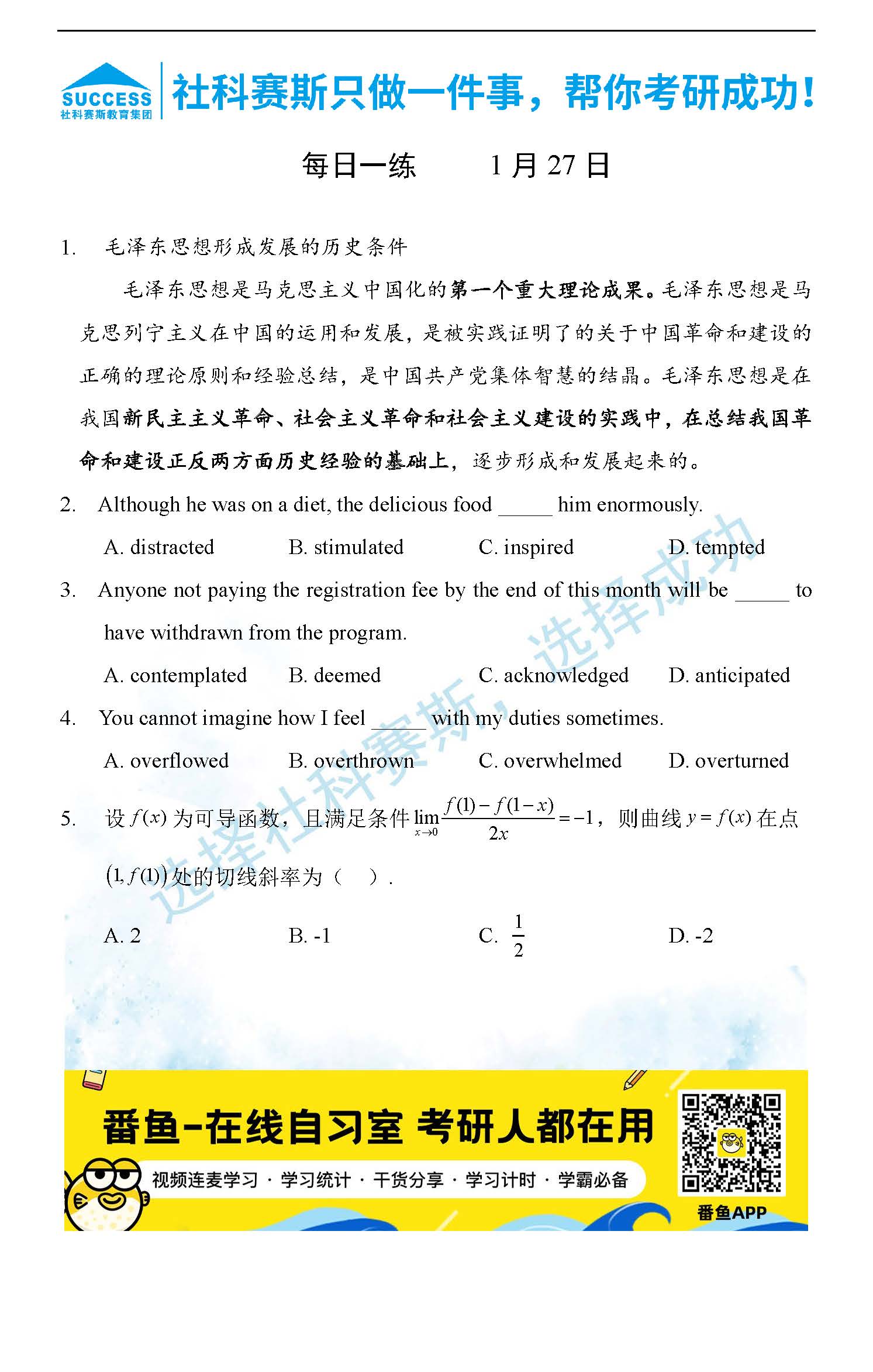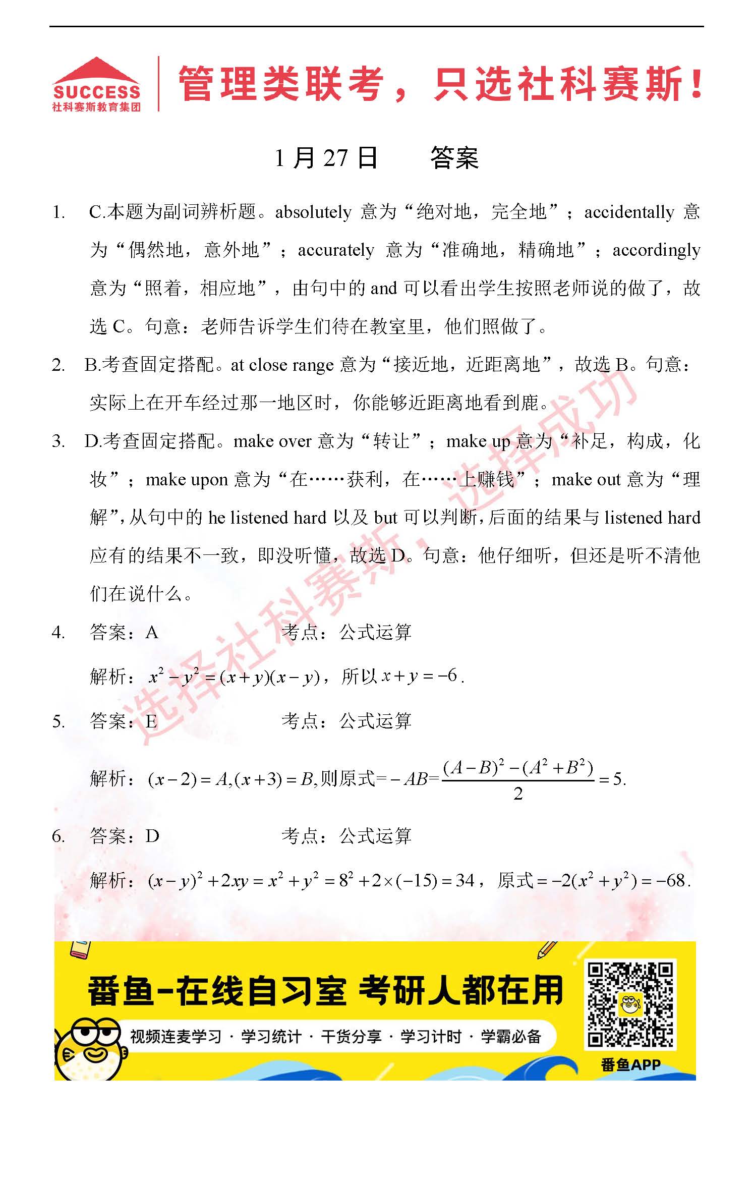 導(dǎo)讀:考研是一場(chǎng)持久戰(zhàn),保持良好的學(xué)習(xí)習(xí)慣,是能確保復(fù)習(xí)高效的關(guān)鍵。今天社科賽斯MBA備考網(wǎng)小編整理了“2022管理類聯(lián)1月27日每日一練及答案”的內(nèi)容,希望能對(duì)廣大考生有所幫助。