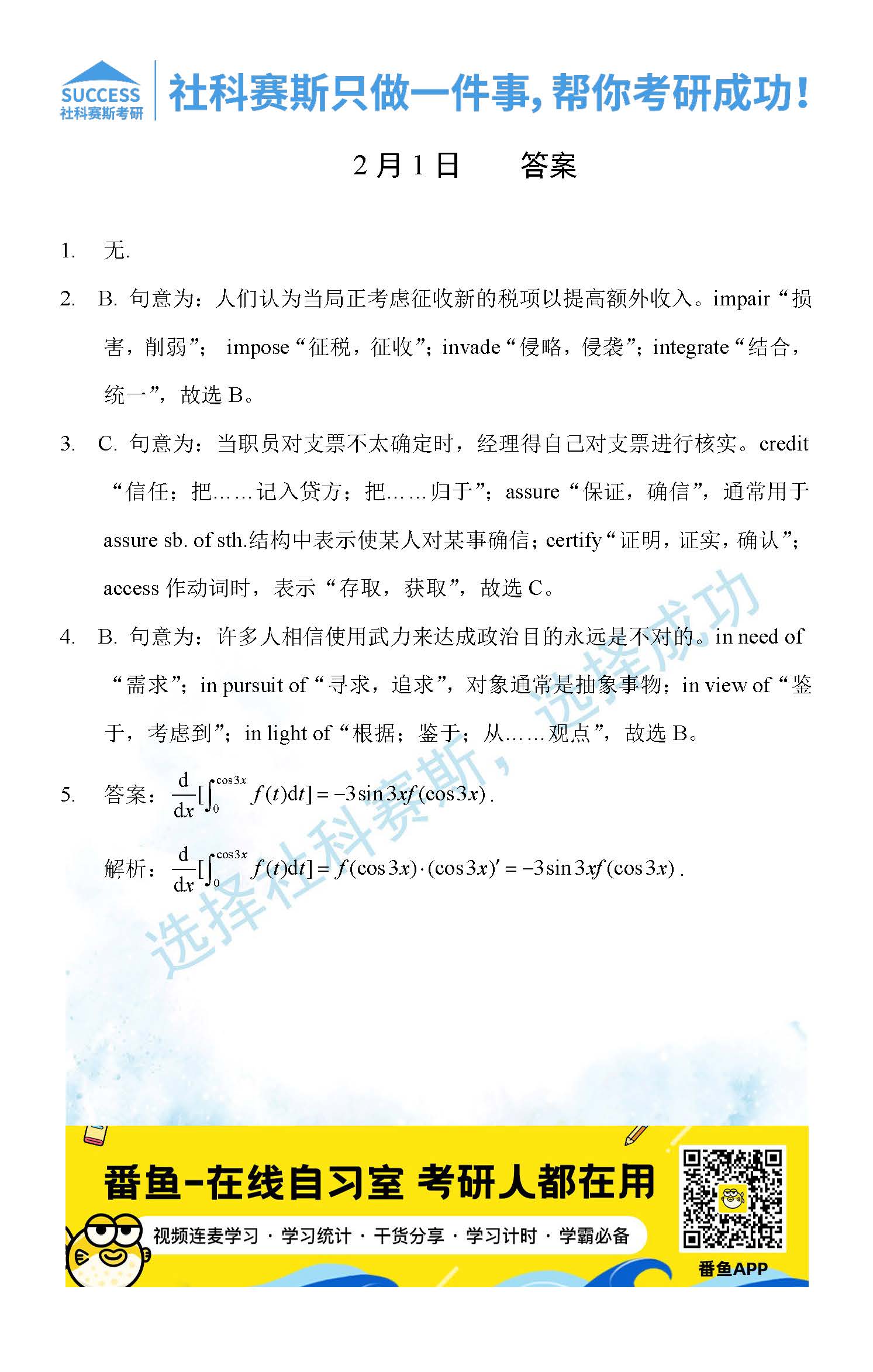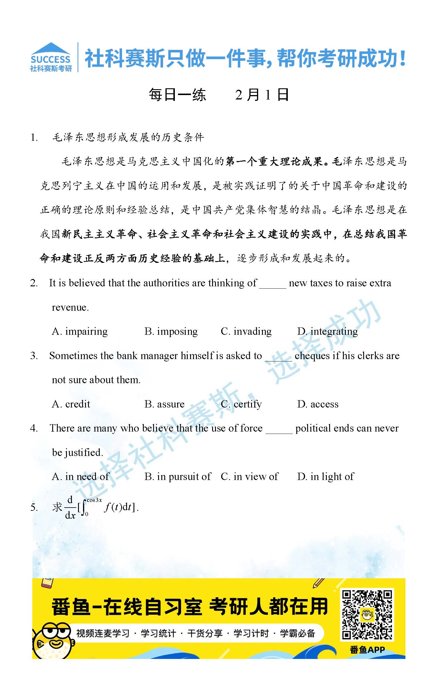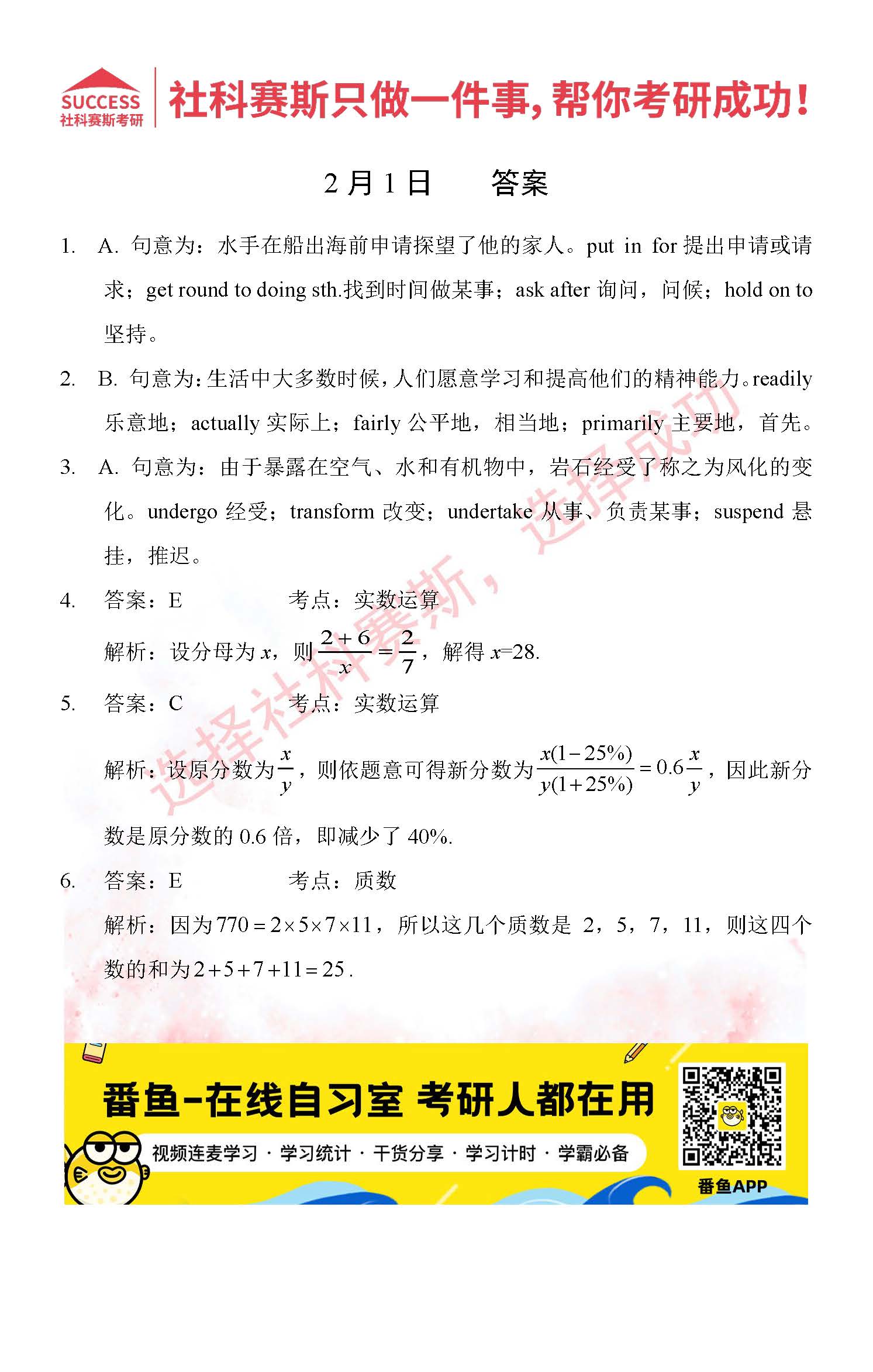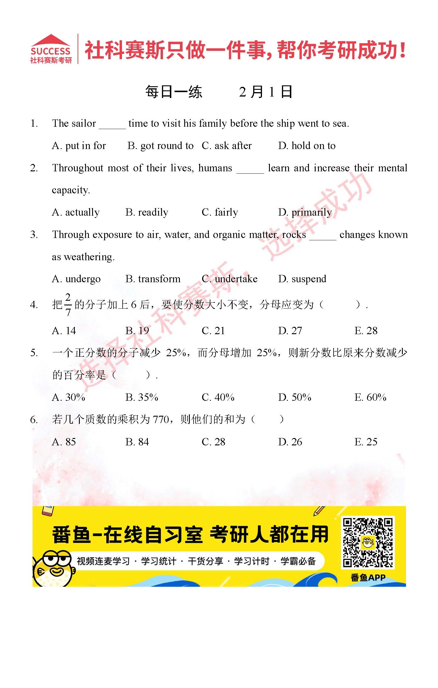 導(dǎo)讀:考研是一場持久戰(zhàn),保持良好的學(xué)習(xí)習(xí)慣,是能確保復(fù)習(xí)高效的關(guān)鍵。今天社科賽斯MBA備考網(wǎng)小編整理了“2022管理類聯(lián)2月1日每日一練及答案”的內(nèi)容,希望能對廣大考生有所幫助。