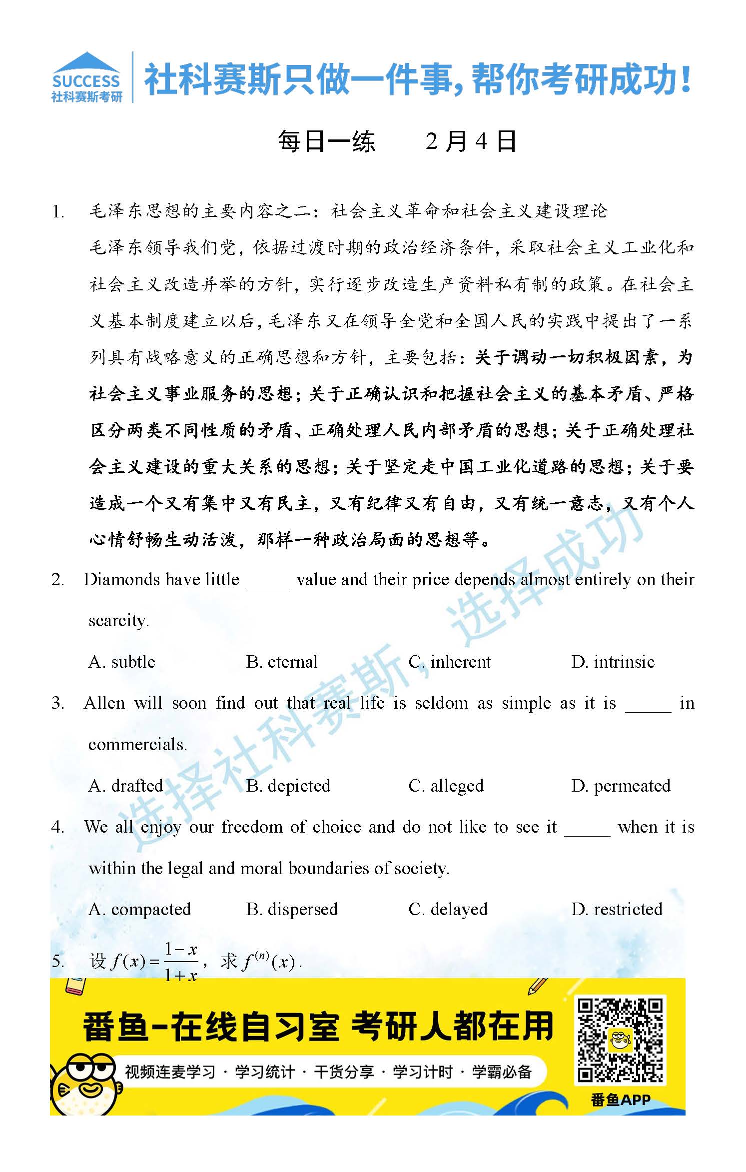導(dǎo)讀:考研是一場持久戰(zhàn),保持良好的學(xué)習(xí)習(xí)慣,是能確保復(fù)習(xí)高效的關(guān)鍵。今天社科賽斯MBA備考網(wǎng)小編整理了“2022管理類聯(lián)2月4日每日一練及答案”的內(nèi)容,希望能對廣大考生有所幫助。