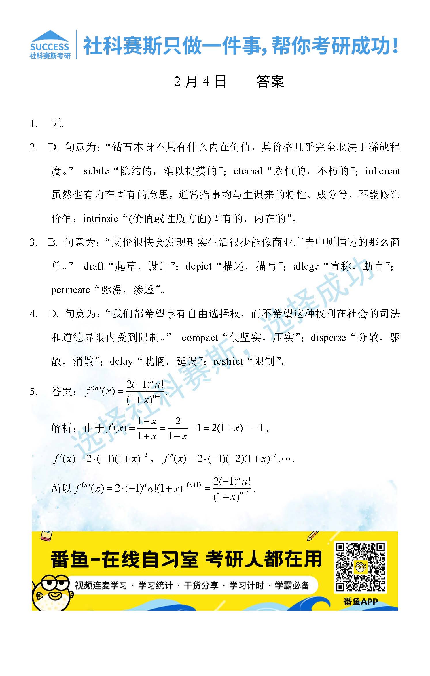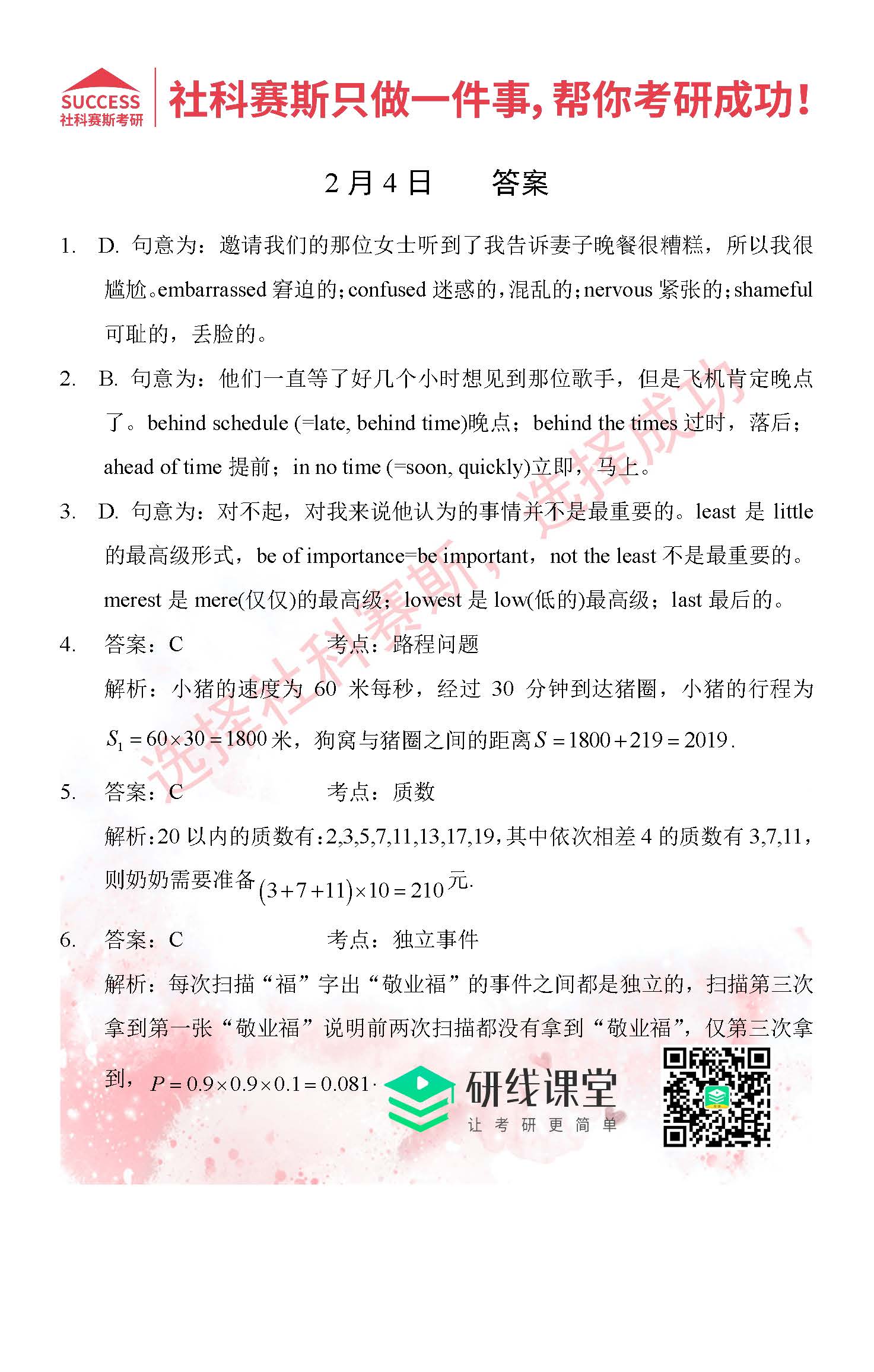 2022管理類聯(lián)考2月4日每日一練及答案”