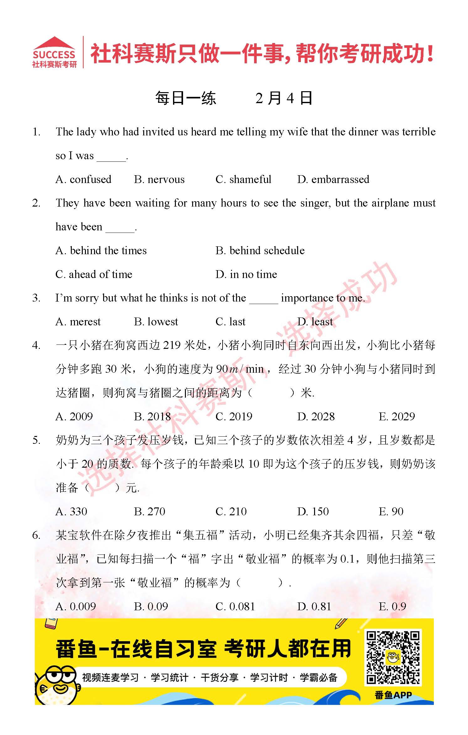 的全部內(nèi)容,希望各位考生堅(jiān)持利用起來,更多每日一練內(nèi)容請持續(xù)關(guān)注MBA備考網(wǎng)管理類聯(lián)考每日一練。