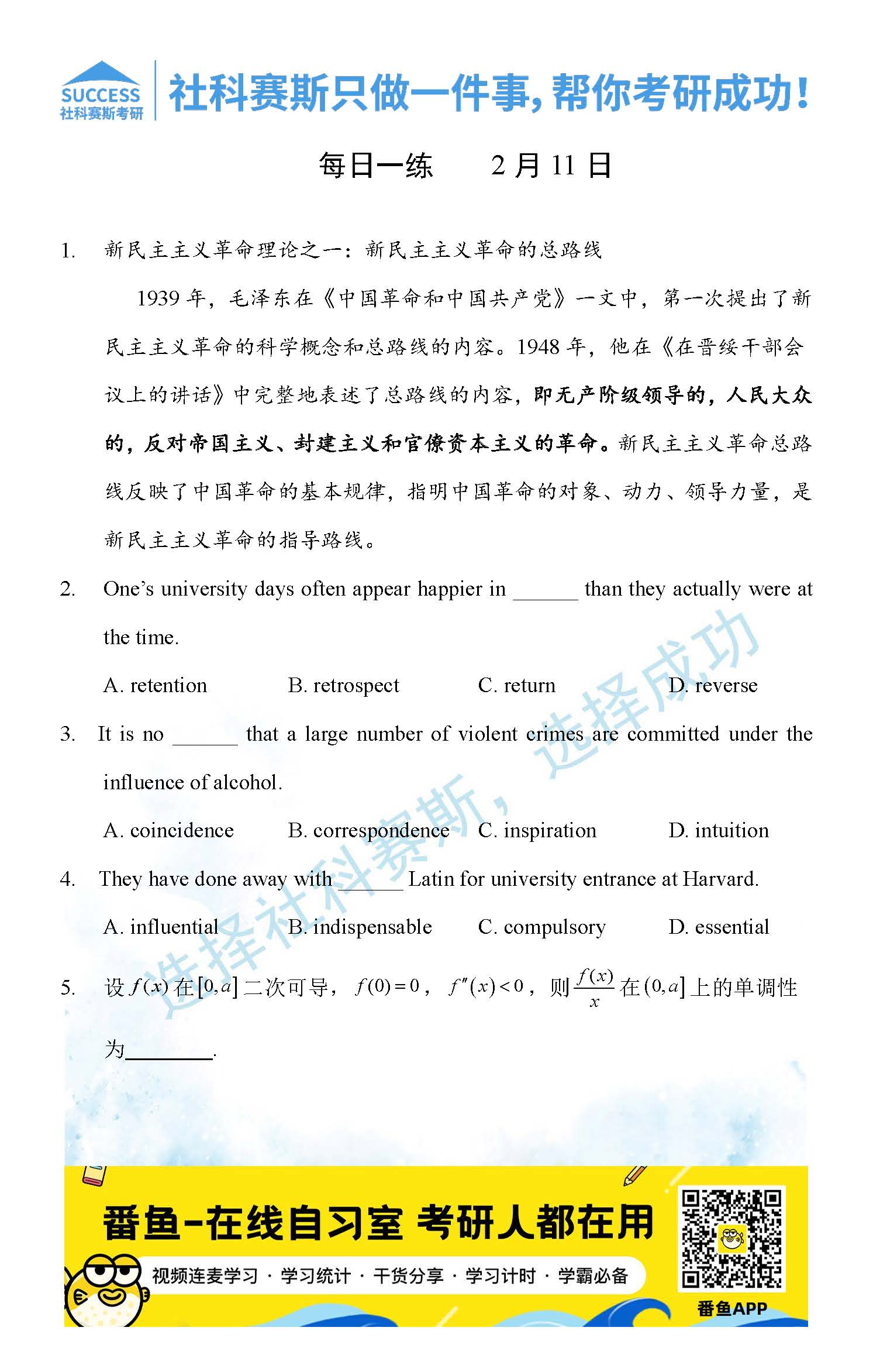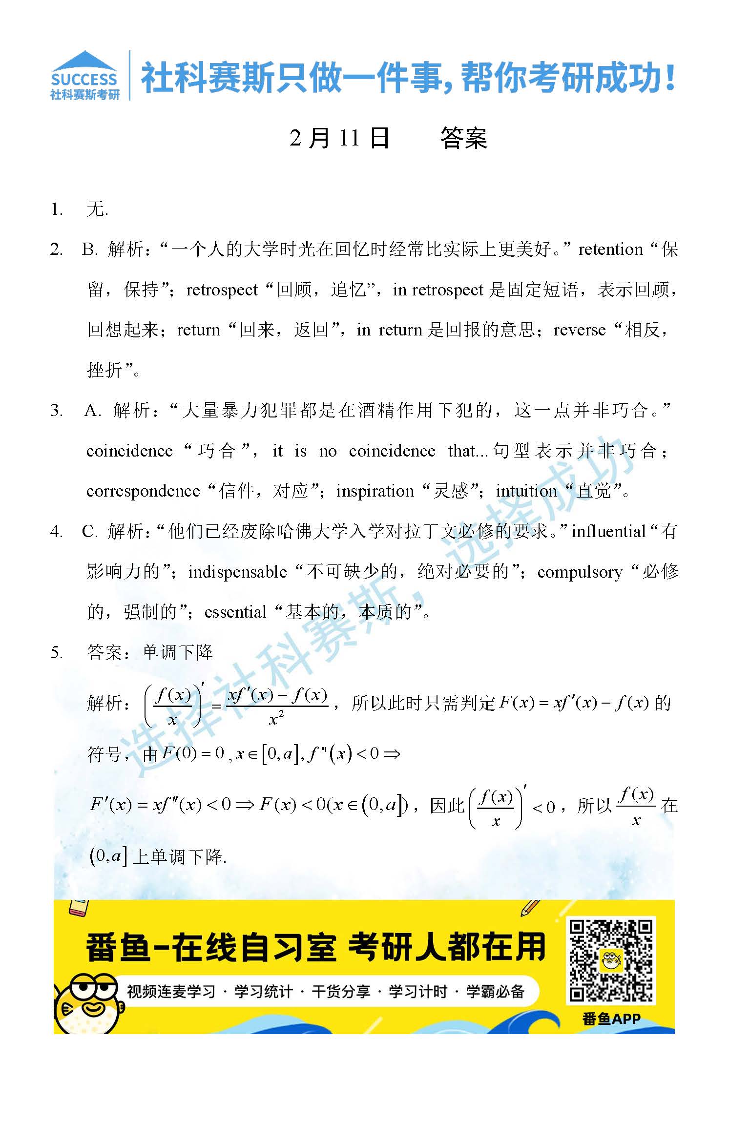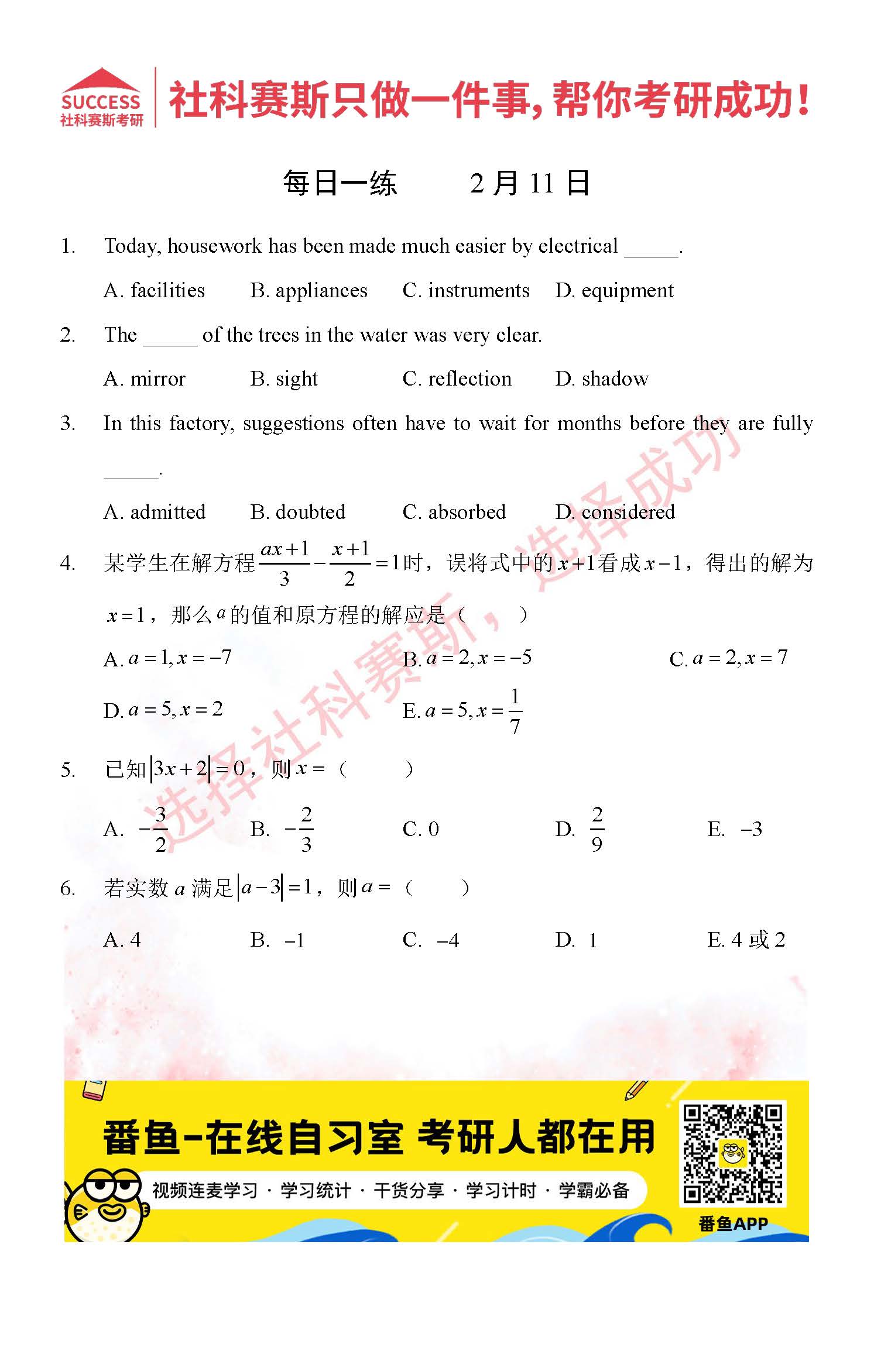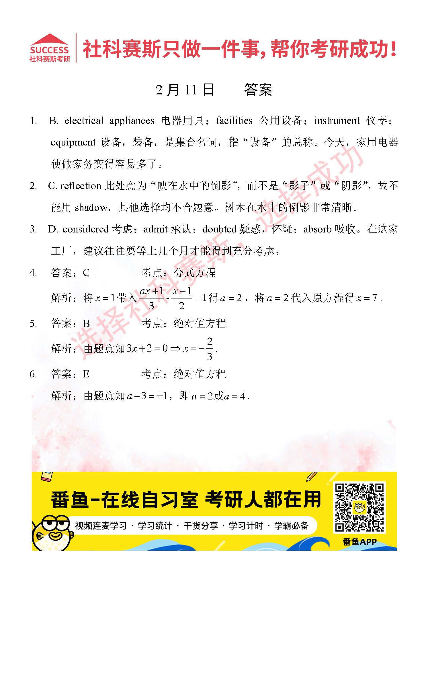 導(dǎo)讀:考研是一場(chǎng)持久戰(zhàn),保持良好的學(xué)習(xí)習(xí)慣,是能確保復(fù)習(xí)高效的關(guān)鍵。今天社科賽斯MBA備考網(wǎng)小編整理了“2022管理類聯(lián)2月11日每日一練及答案”的內(nèi)容,希望能對(duì)廣大考生有所幫助。