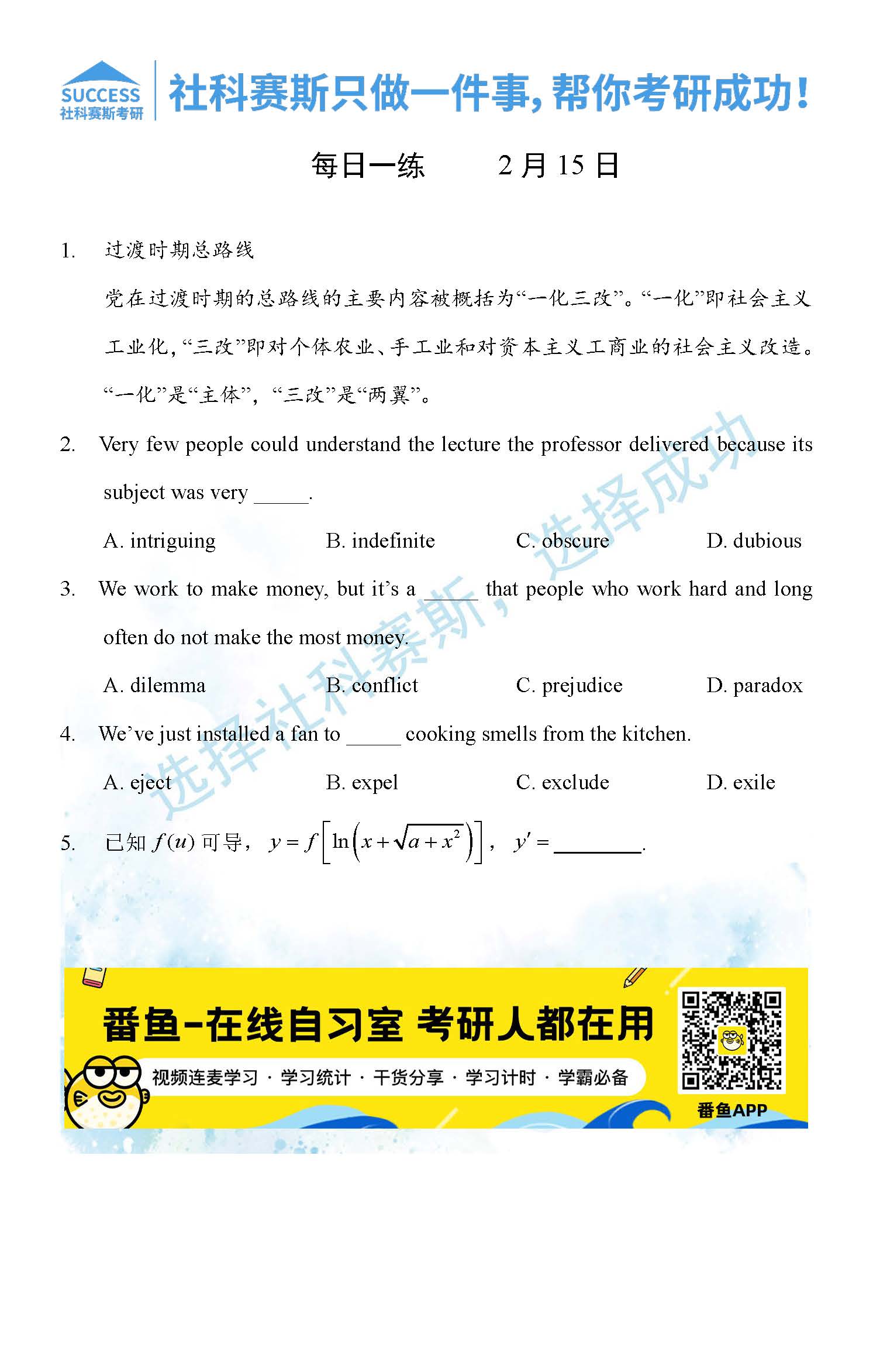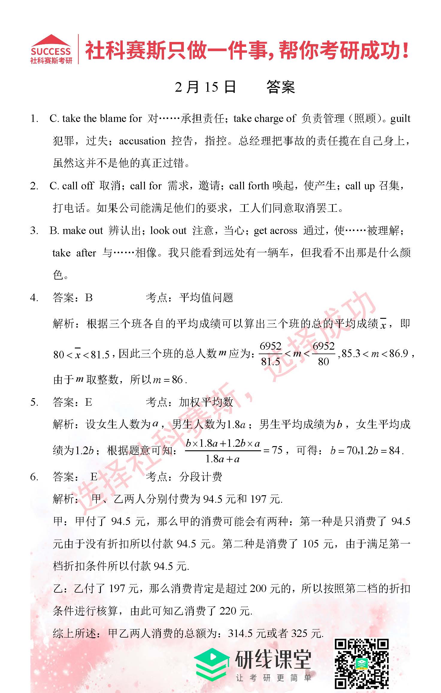 首頁> 管理類聯(lián)考每日一練 > 2022管理類聯(lián)考2月15日每日一練及答案