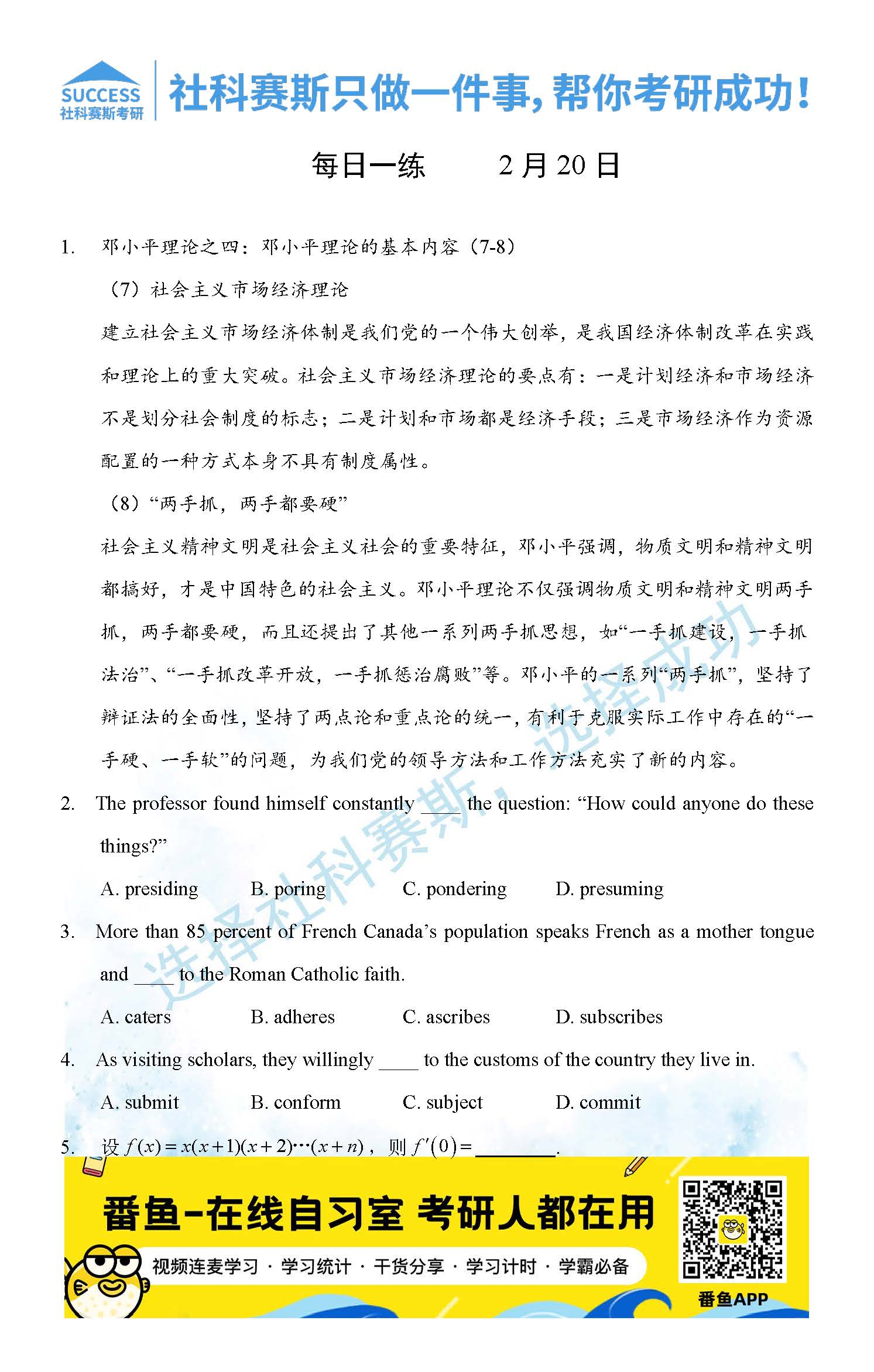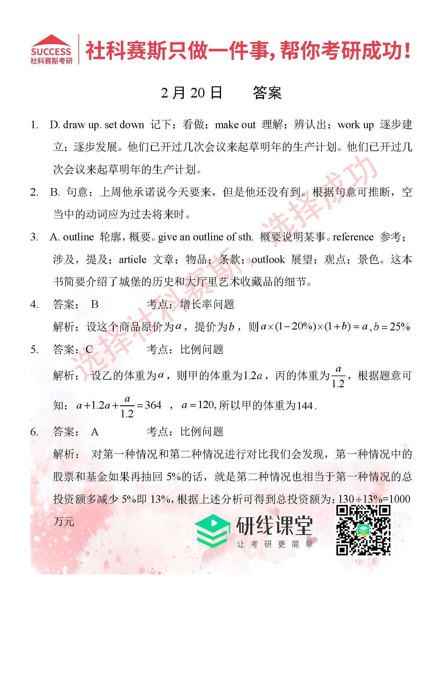 導(dǎo)讀:考研是一場持久戰(zhàn),保持良好的學(xué)習(xí)習(xí)慣,是能確保復(fù)習(xí)高效的關(guān)鍵。今天社科賽斯MBA備考網(wǎng)小編整理了“2022管理類聯(lián)2月20日每日一練及答案”的內(nèi)容,希望能對廣大考生有所幫助。