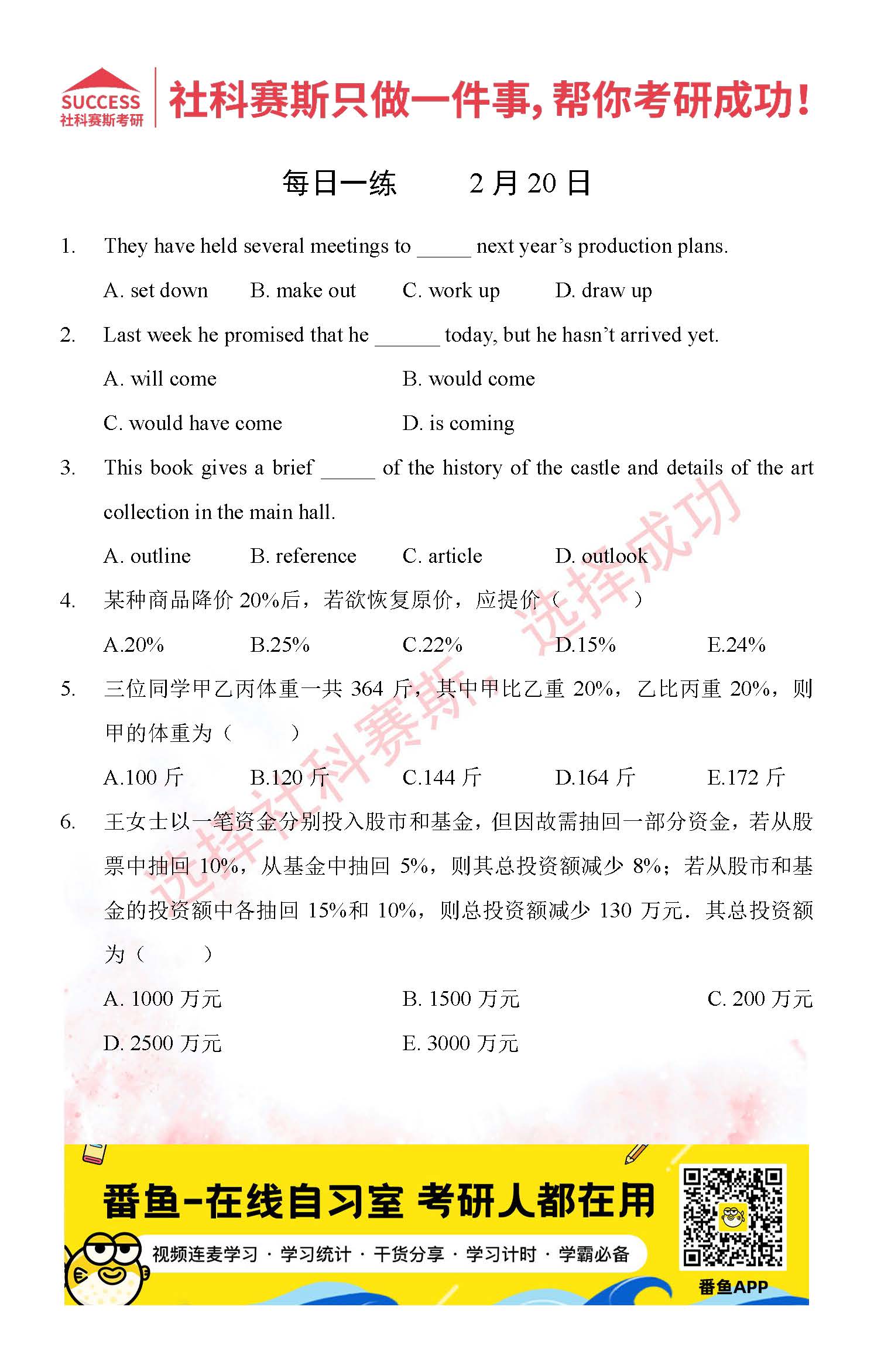 首頁> 管理類聯(lián)考每日一練 > 2022管理類聯(lián)考2月20日每日一練及答案