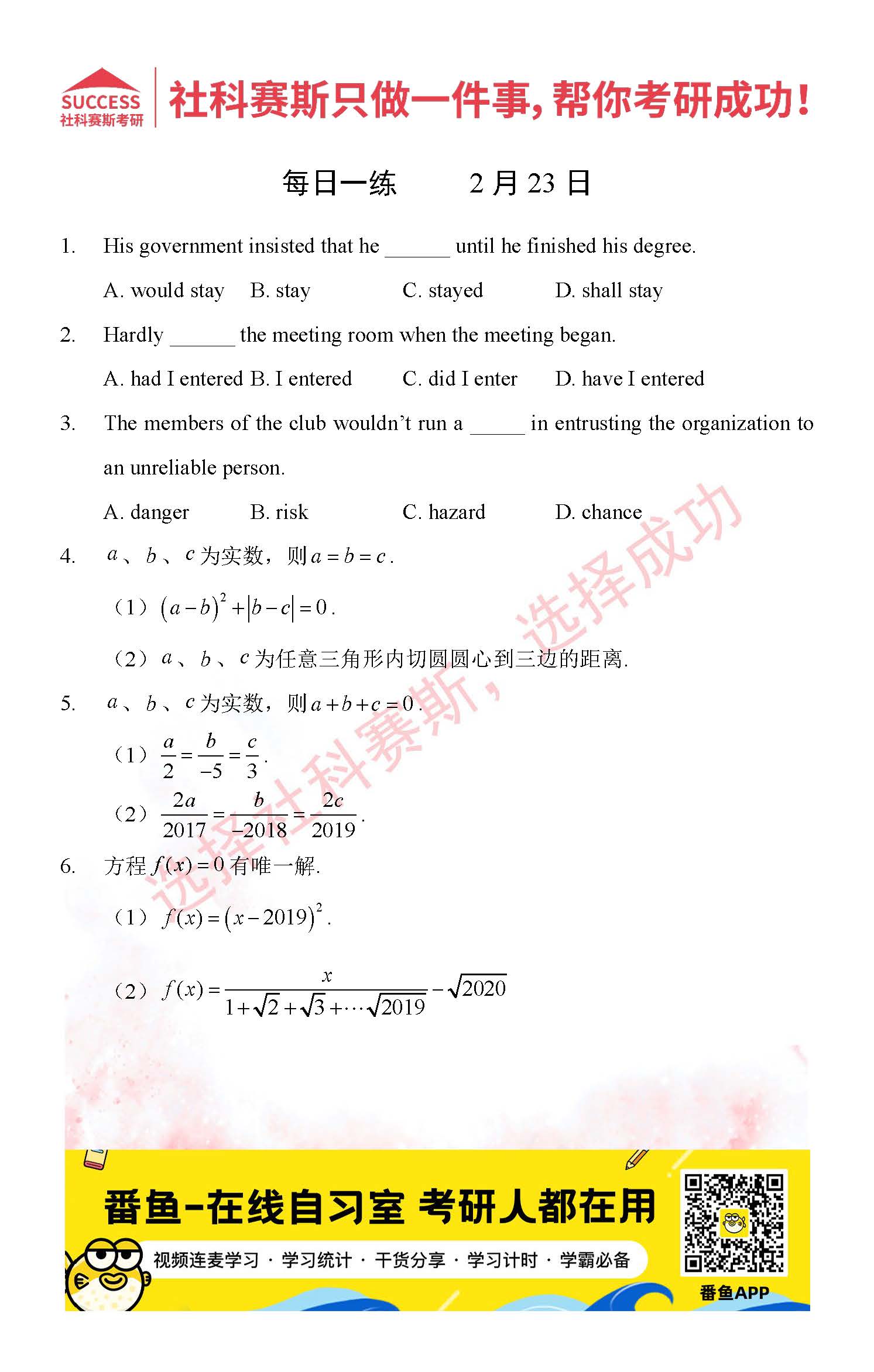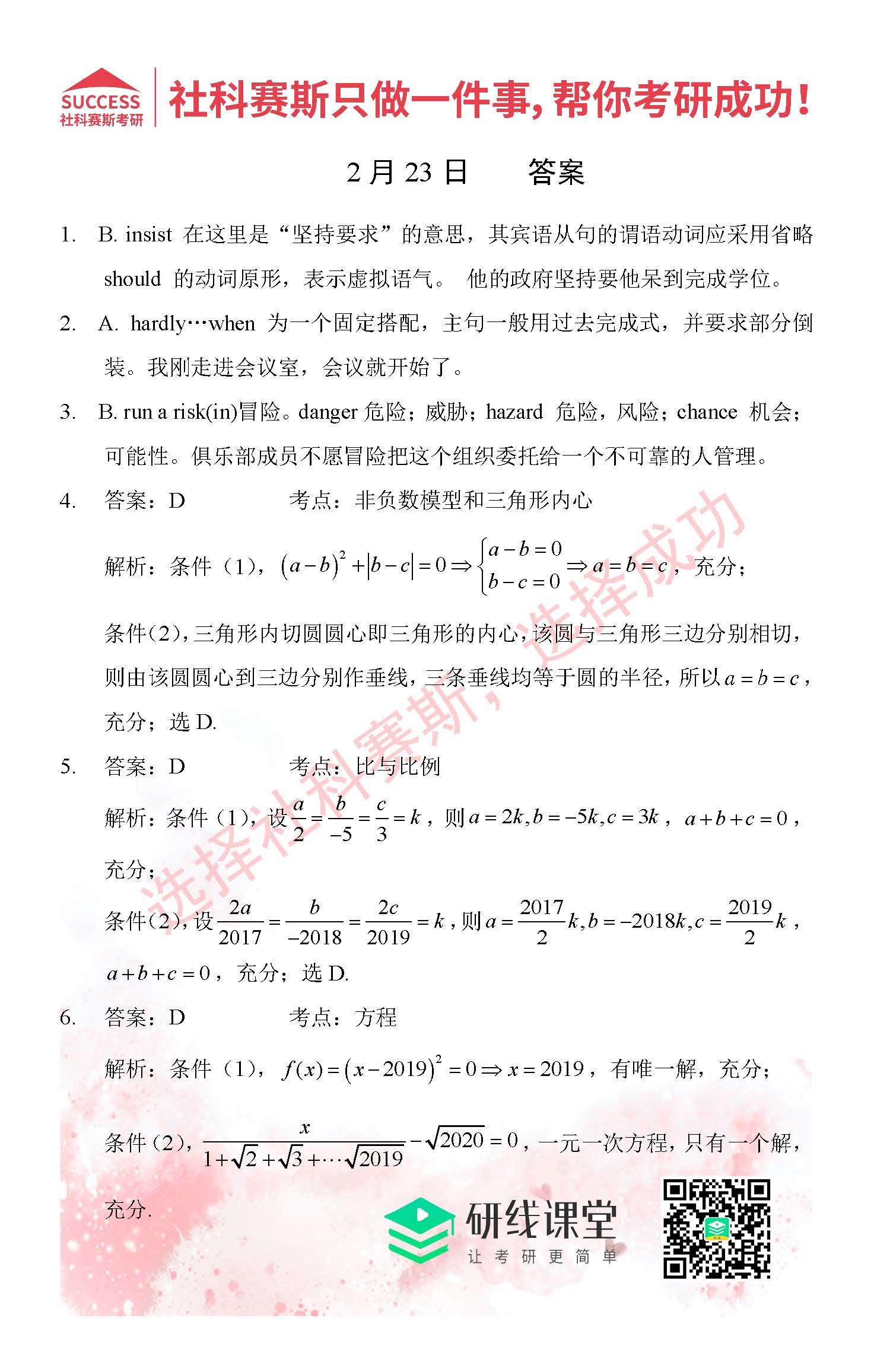 導讀:考研是一場持久戰(zhàn),保持良好的學習習慣,是能確保復習高效的關鍵。今天社科賽斯MBA備考網小編整理了“2022管理類聯2月23日每日一練及答案”的內容,希望能對廣大考生有所幫助。