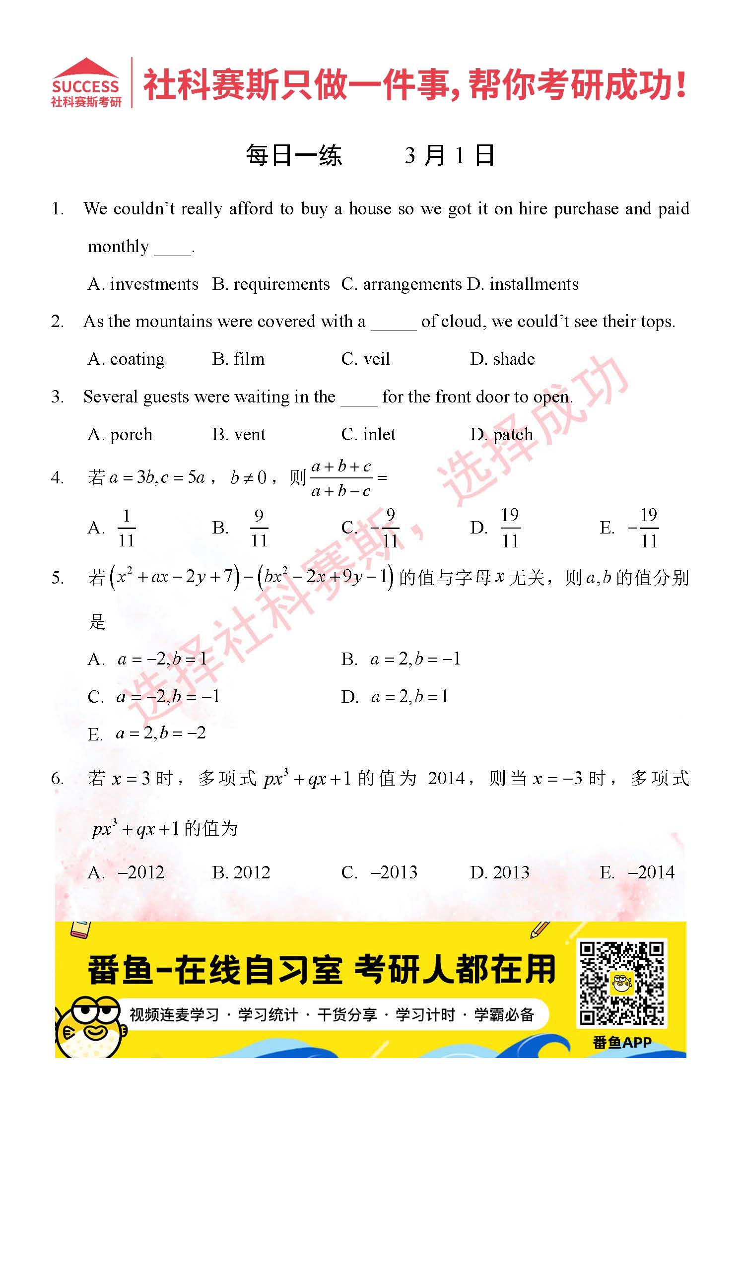導(dǎo)讀:考研是一場持久戰(zhàn),保持良好的學(xué)習(xí)習(xí)慣,是能確保復(fù)習(xí)高效的關(guān)鍵。今天社科賽斯MBA備考網(wǎng)小編整理了“2022管理類聯(lián)3月1日每日一練及答案”的內(nèi)容,希望能對廣大考生有所幫助。