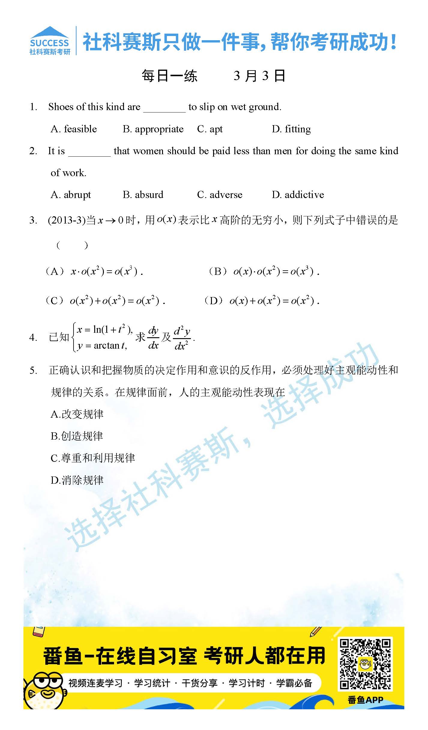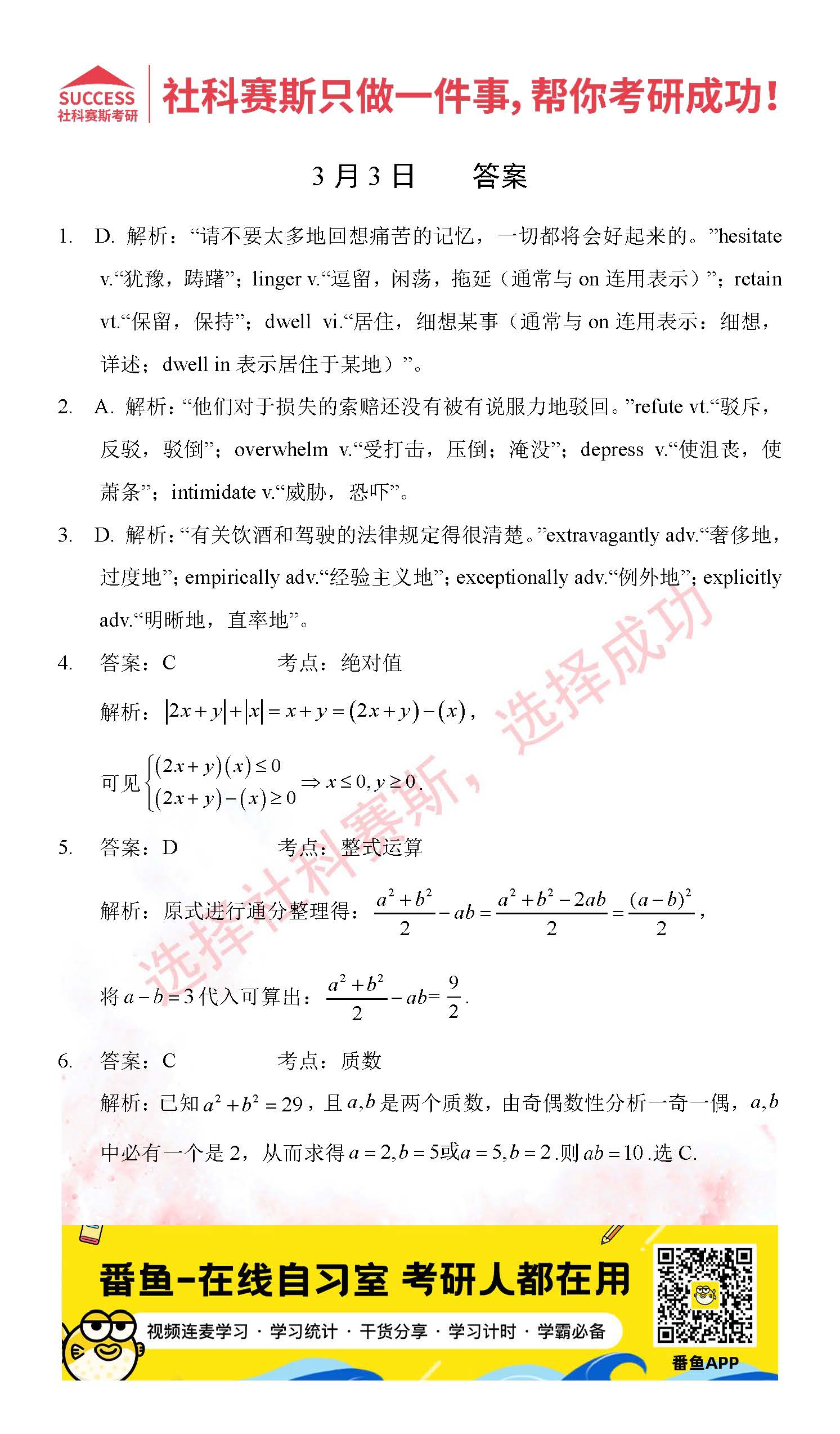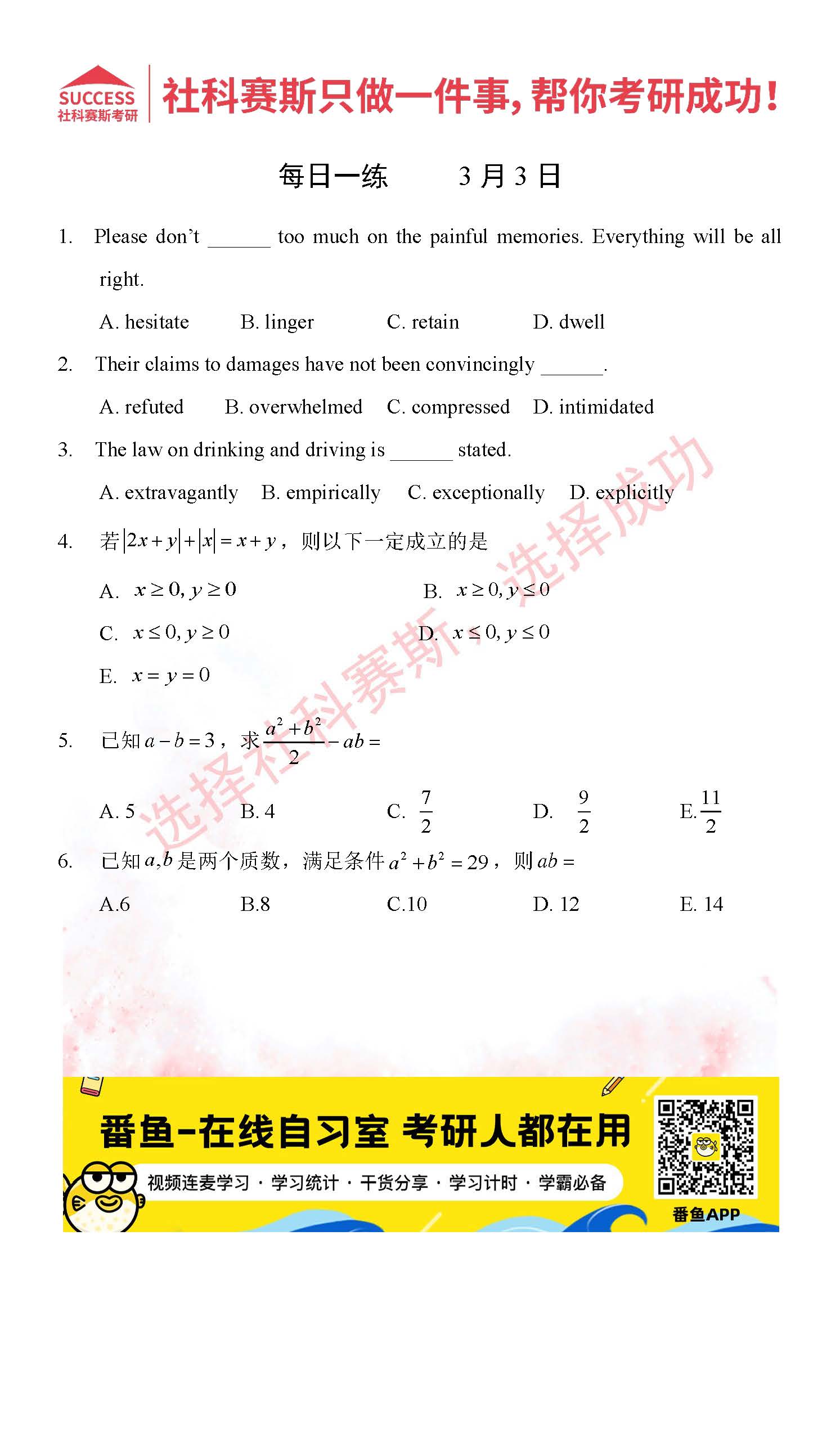導(dǎo)讀:考研是一場持久戰(zhàn),保持良好的學(xué)習(xí)習(xí)慣,是能確保復(fù)習(xí)高效的關(guān)鍵。今天社科賽斯MBA備考網(wǎng)小編整理了“2022管理類聯(lián)3月3日每日一練及答案”的內(nèi)容,希望能對廣大考生有所幫助。