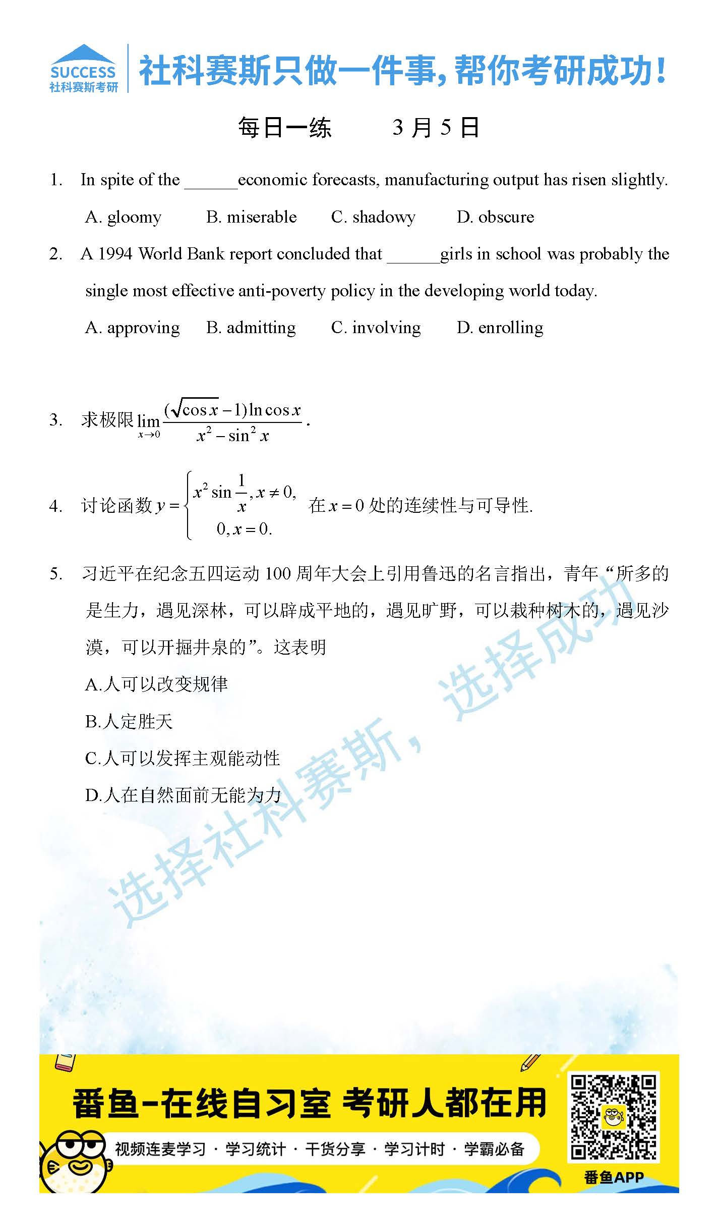 【版權(quán)與免責聲明】 如發(fā)現(xiàn)內(nèi)容存在版權(quán)問題,煩請?zhí)峁┫嚓P(guān)信息發(fā)郵件至service@mbaschool.com.cn,我們將及時溝通與處理。本站內(nèi)容除非來源注明社科賽斯,否則均為網(wǎng)絡(luò)轉(zhuǎn)載,涉及言論、版權(quán)與本站無關(guān)。