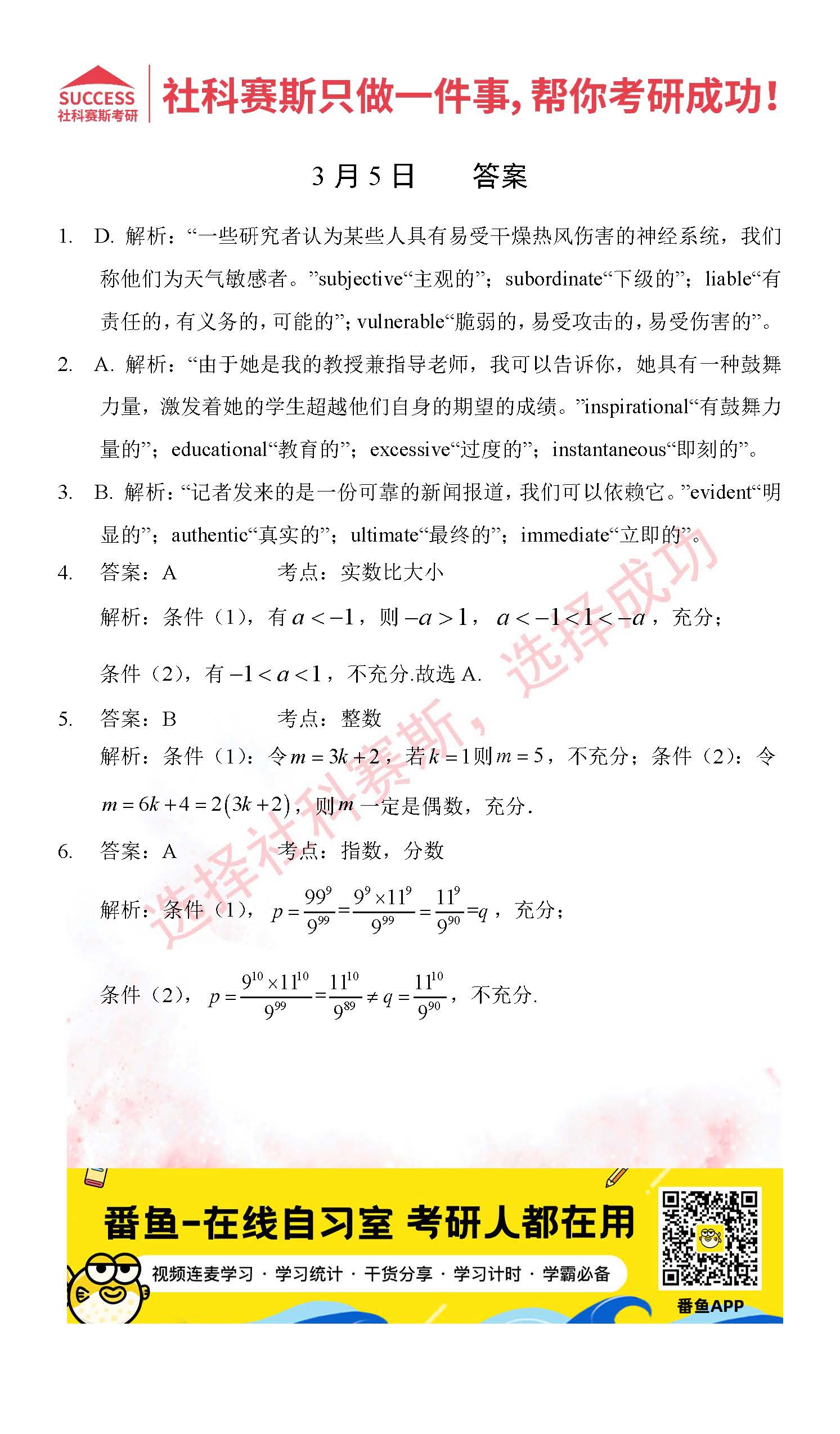 首頁> 管理類聯(lián)考每日一練 > 2022管理類聯(lián)考3月5日每日一練及答案